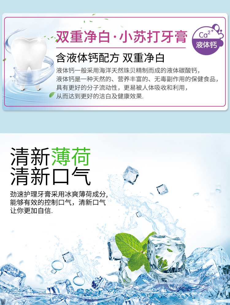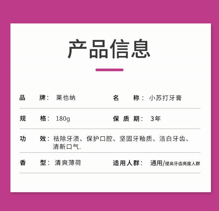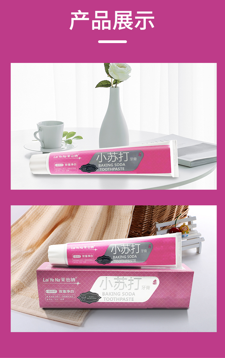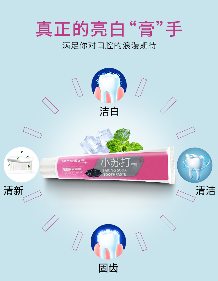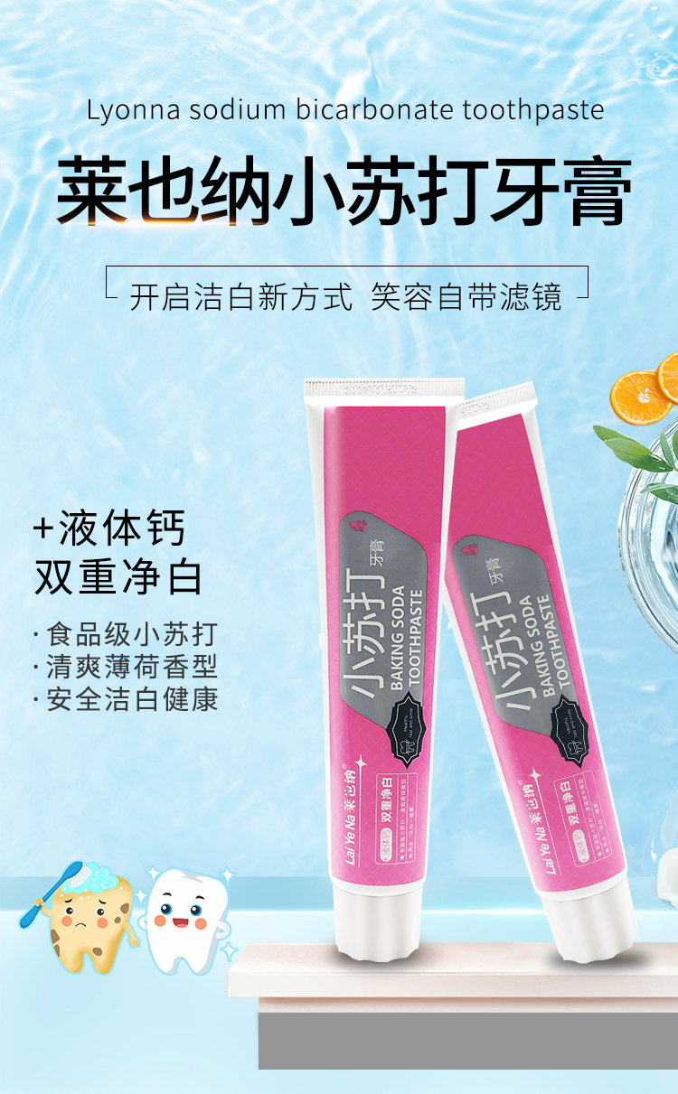 莱也纳小苏打牙膏冰爽薄荷清香口气清新健龈固齿洁白去渍防蛀护龈
