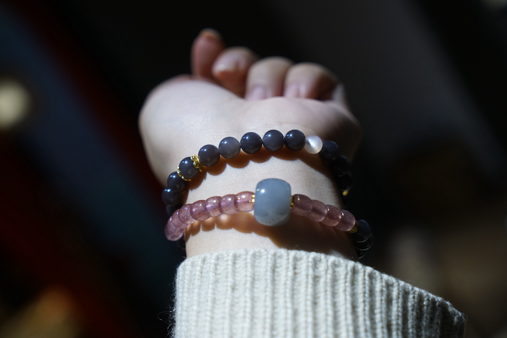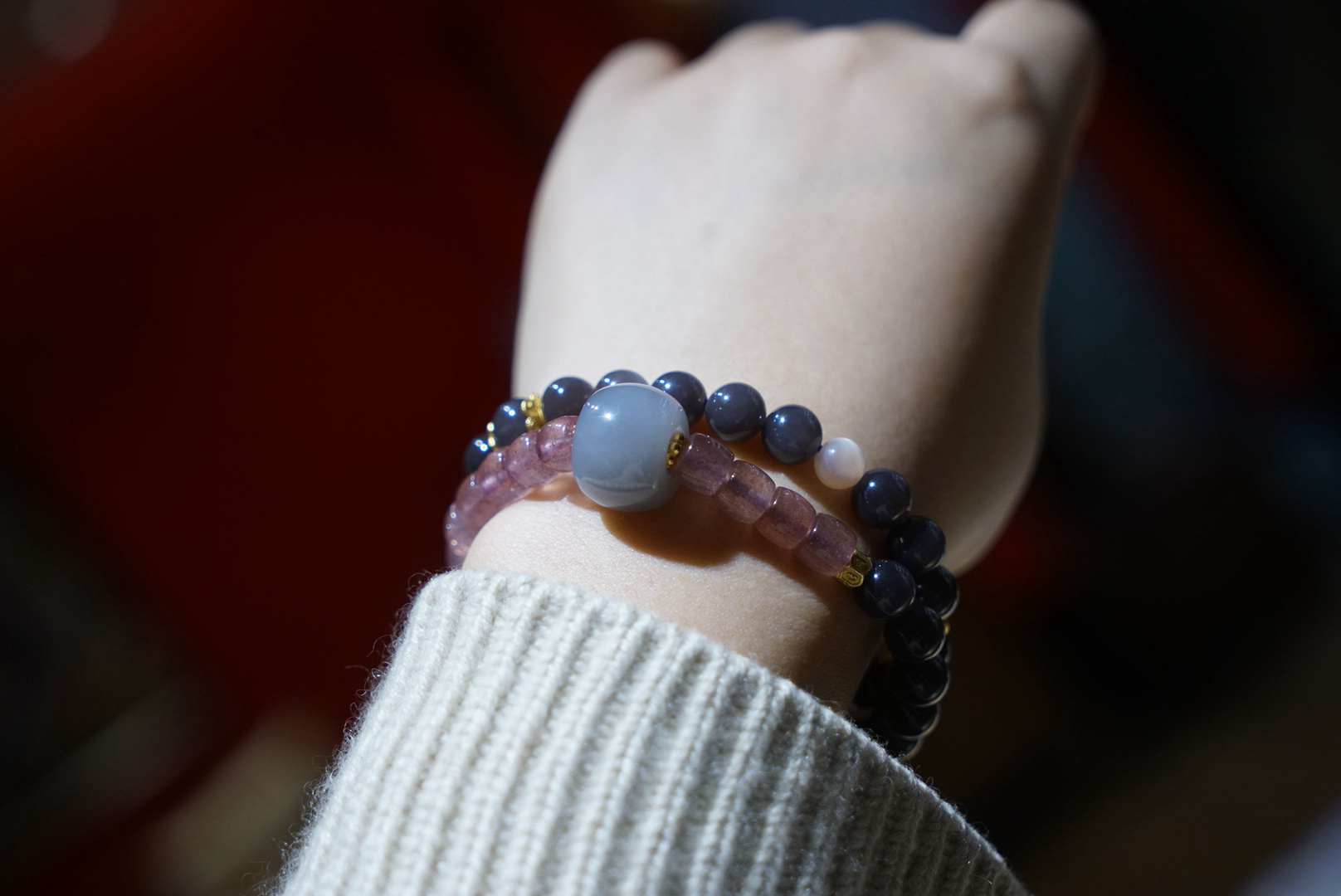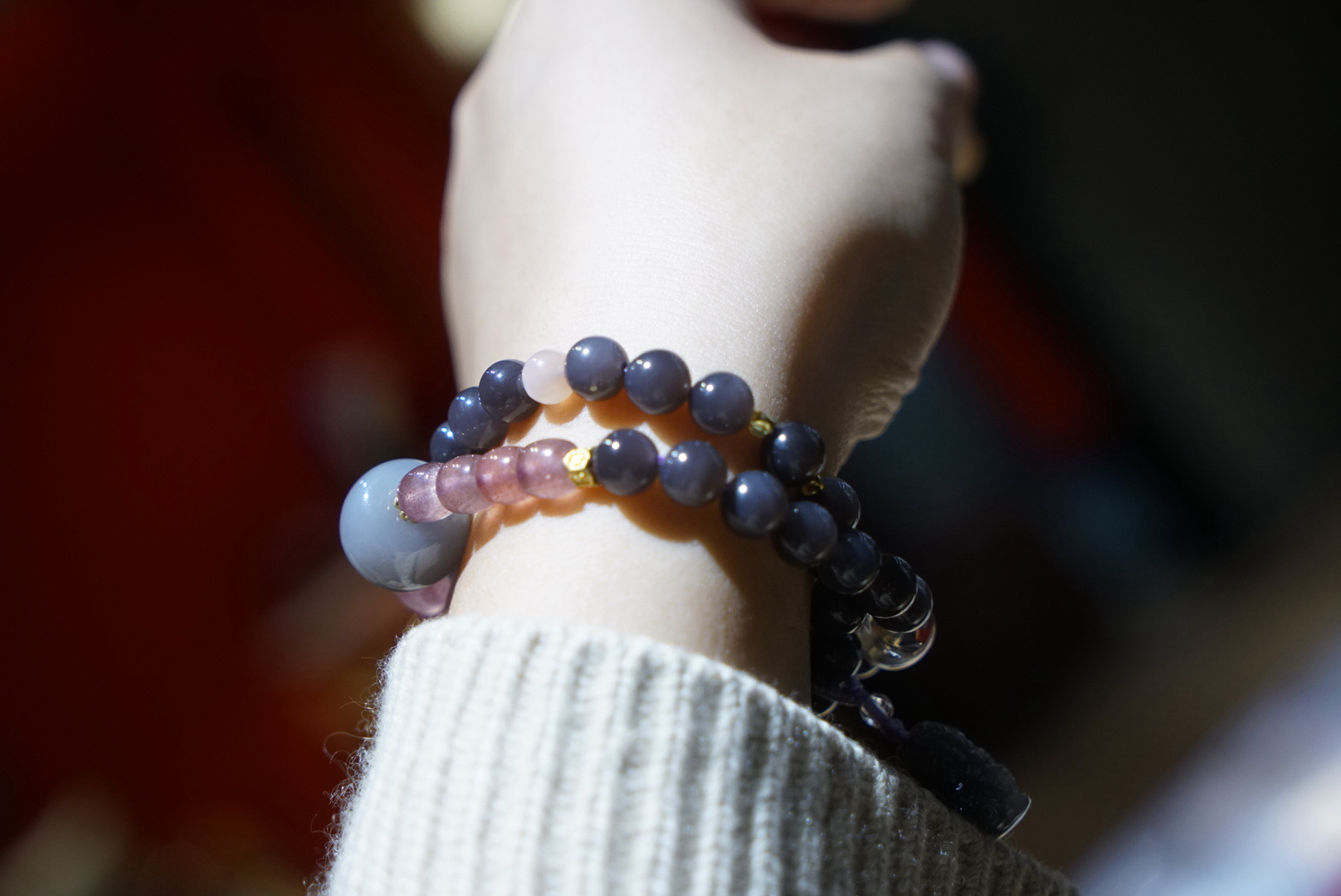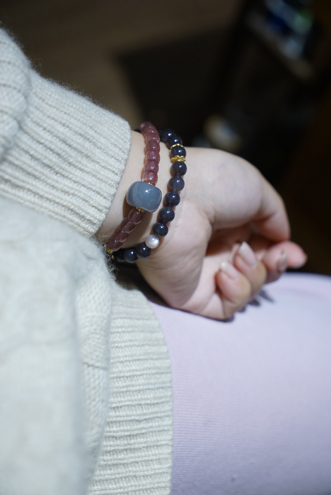 超级无敌美的一条8mm浓郁烟紫和田玉,吊坠是小象,颜色料子都很棒,顶珠大珠珠和吊坠小象都是烟紫和田玉哦,超萌的象!即使取下来也是可以单独当吊坠的品质!点缀草莓晶~显得更加少女俏皮~嘿嘿!十年实体一线市场品控,只卖精品品质。