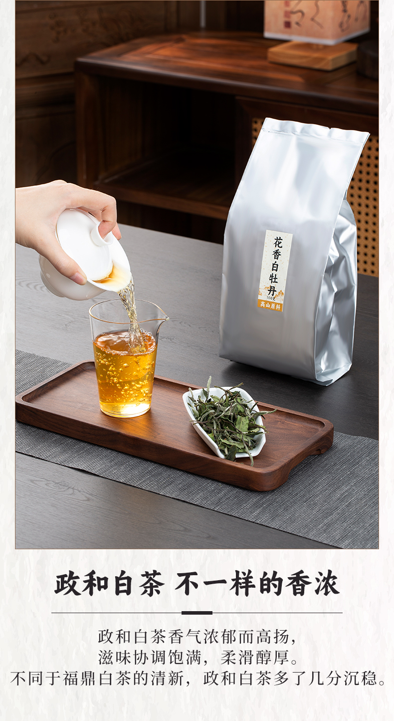 品政韵(原添寿白茶)丨花香白牡丹 政和白茶 一级 2025年 100g 袋装 花香鲜甜 自饮首选