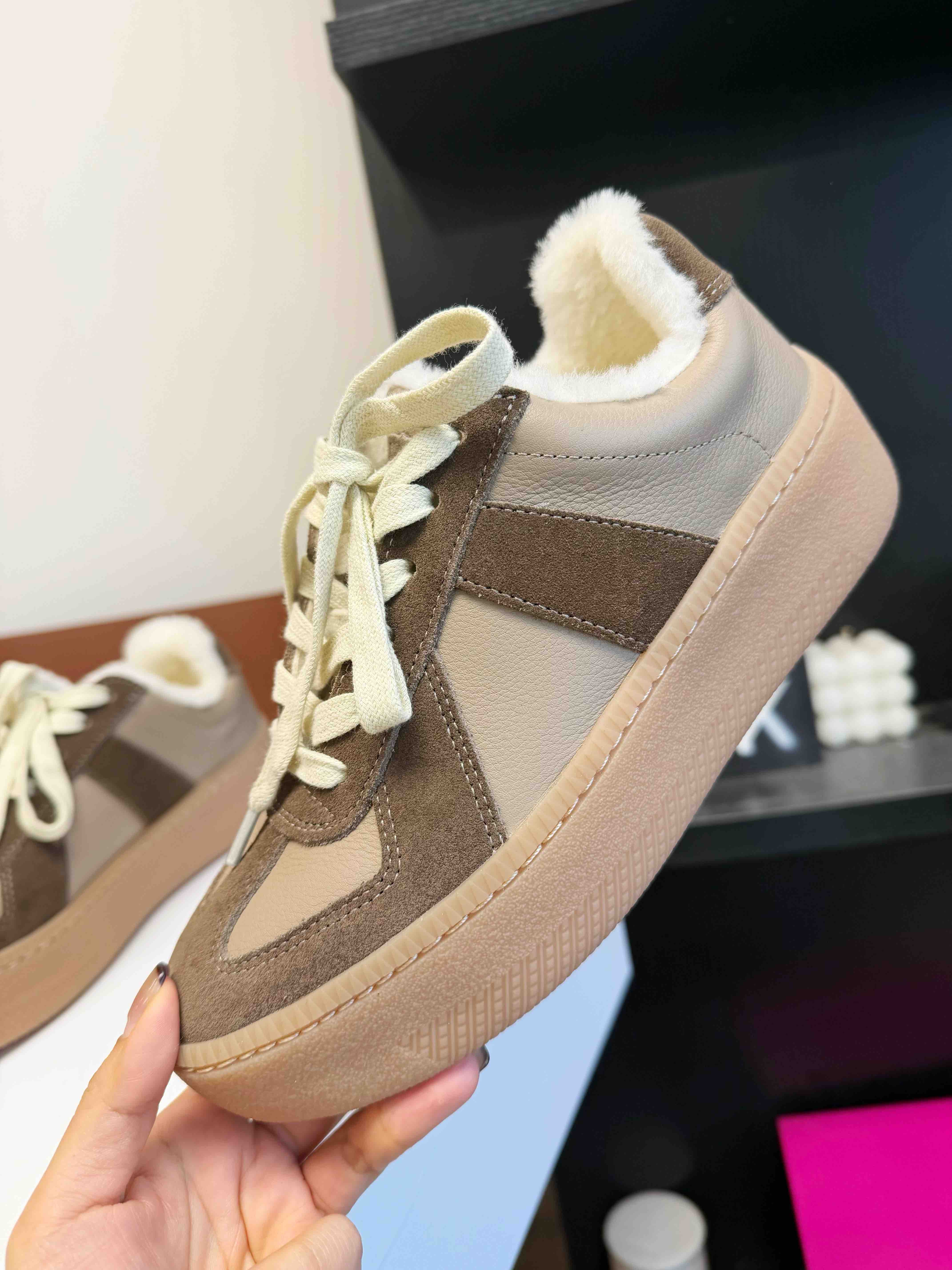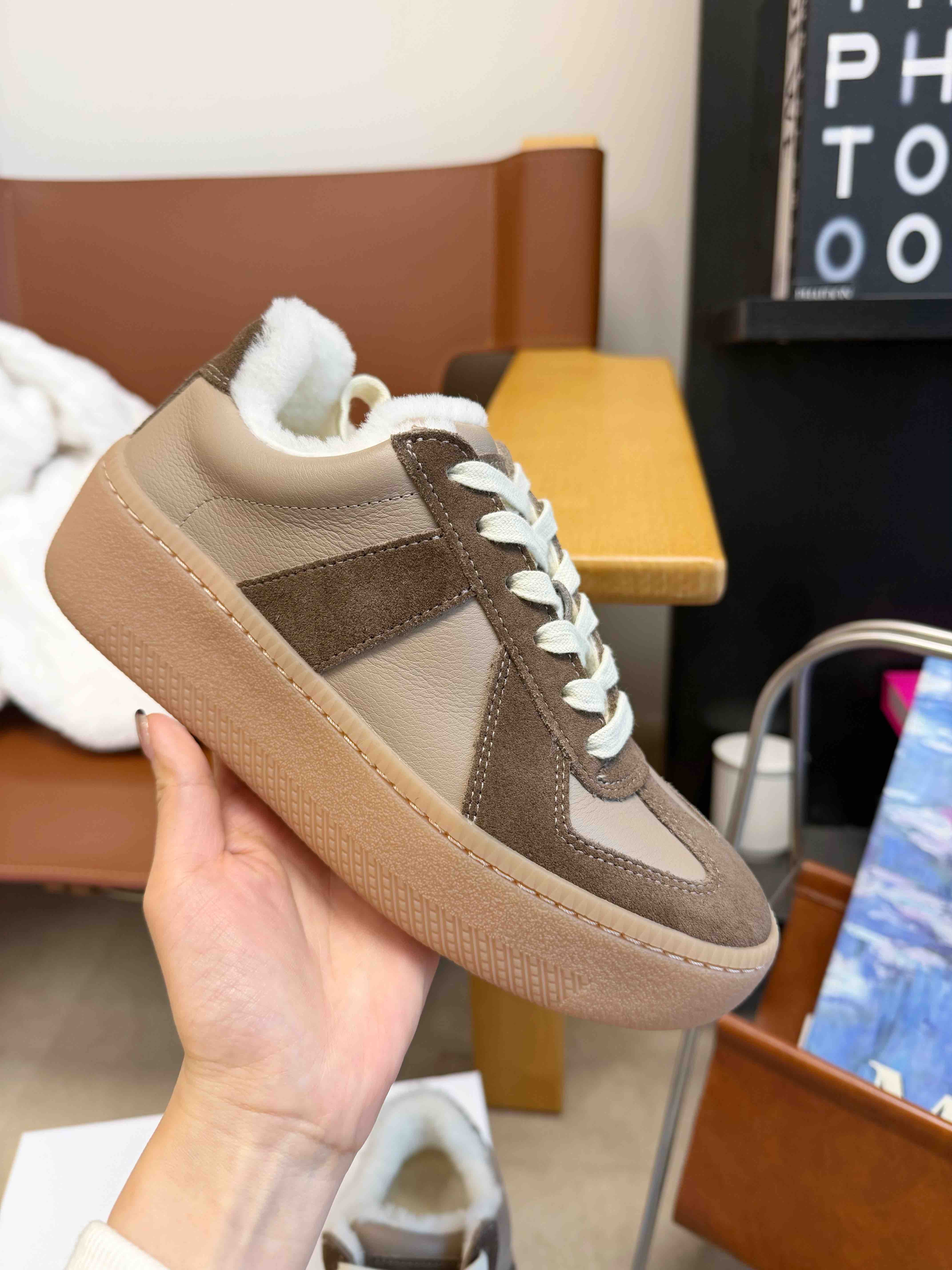加绒厚底休闲德训鞋