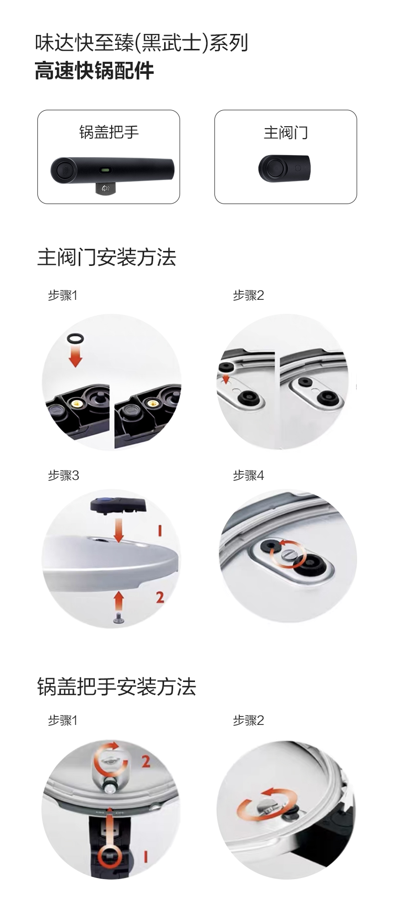黑武士高速快锅配件-锅盖把手、主阀门(购买前请咨询客服,谨防买错)
