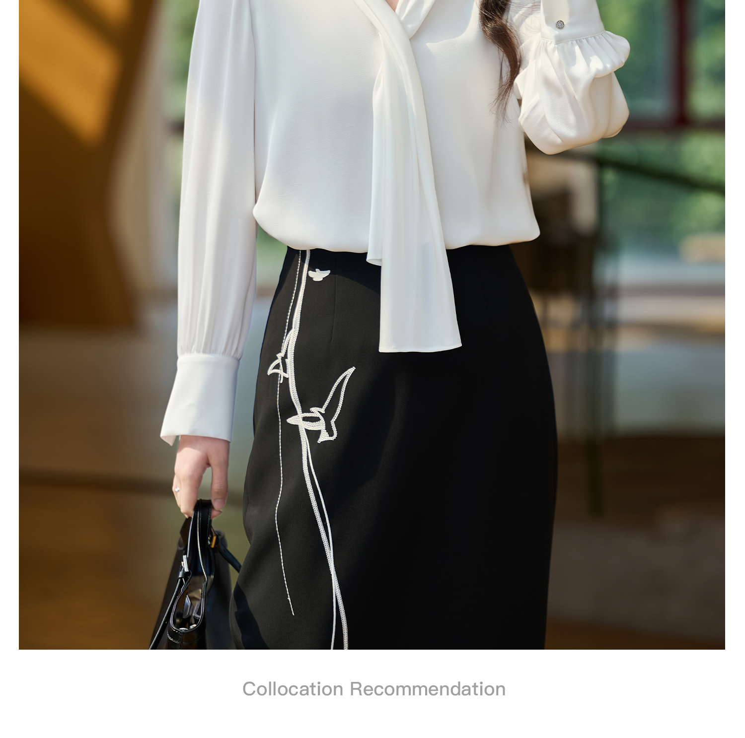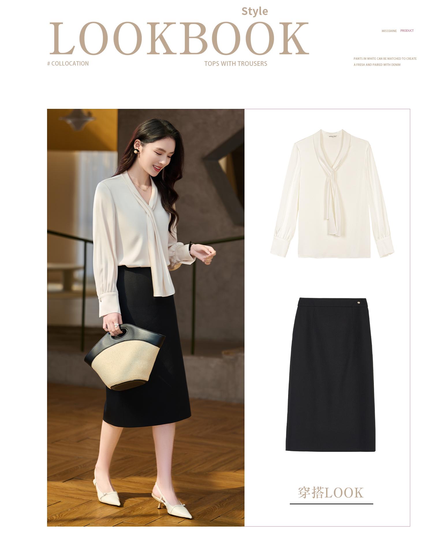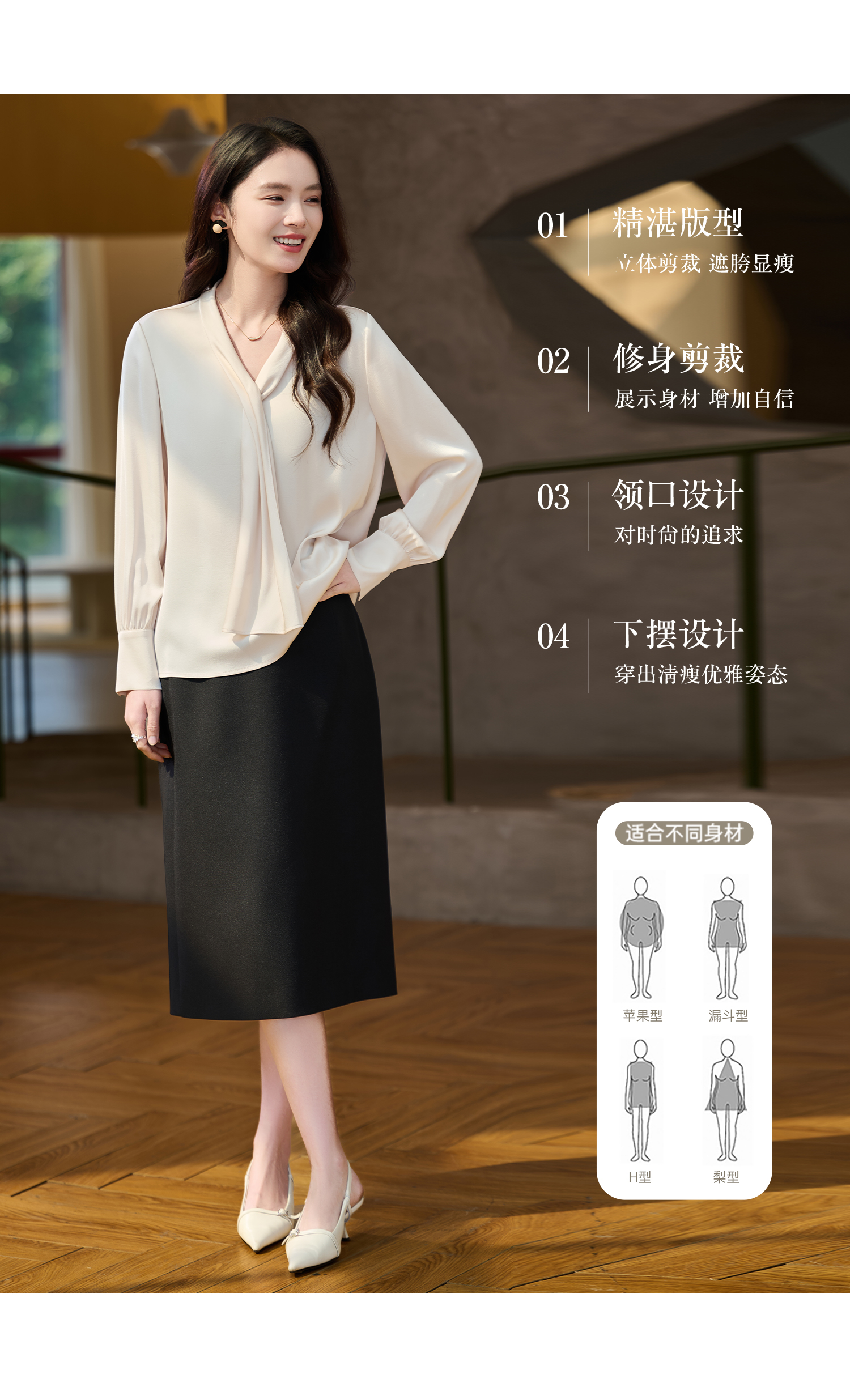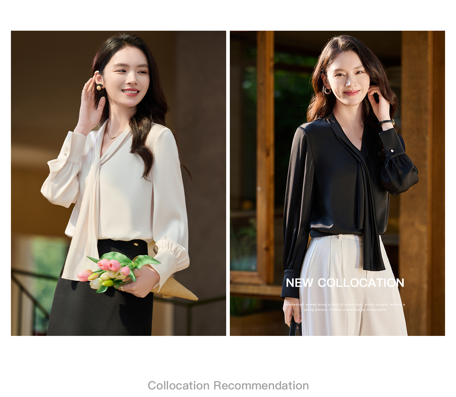 细腻柔光缎面飘带衬衫 经典黑白杏三色 通勤配西装、约会配半裙、开会配西裤皆可!米思阳2026春新款设计感通勤V领飘带领衬衫女5305