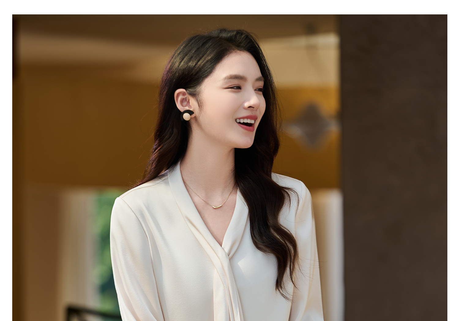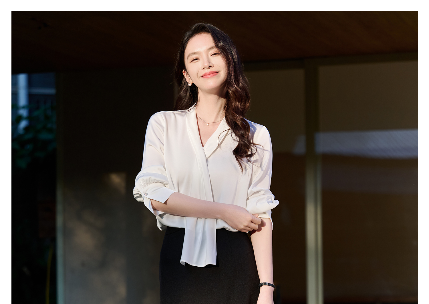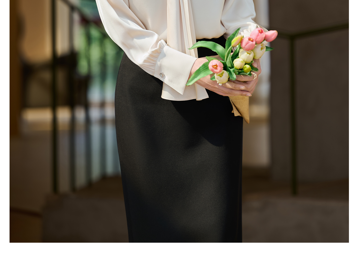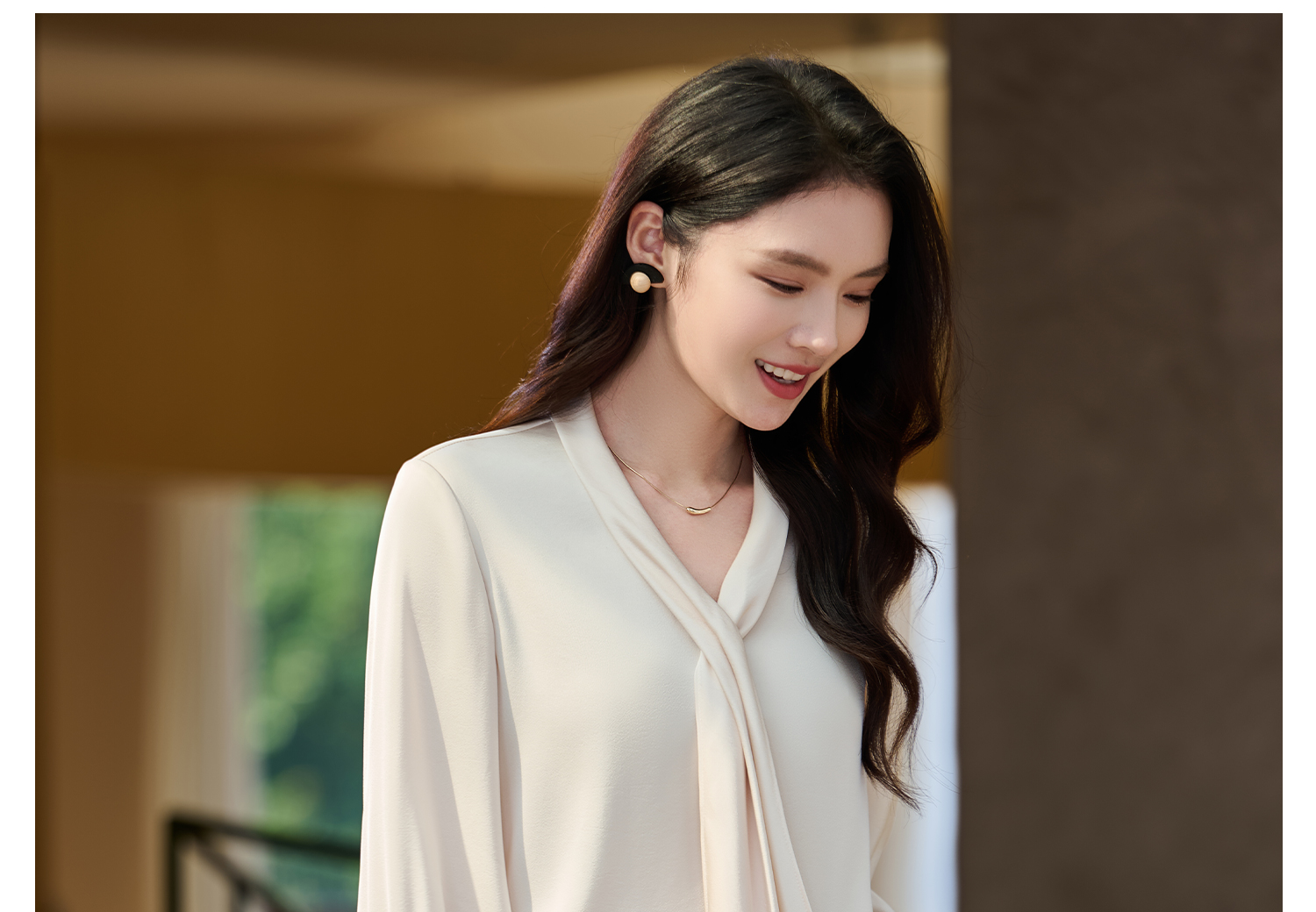 细腻柔光缎面飘带衬衫 经典黑白杏三色 通勤配西装、约会配半裙、开会配西裤皆可!米思阳2026春新款设计感通勤V领飘带领衬衫女5305