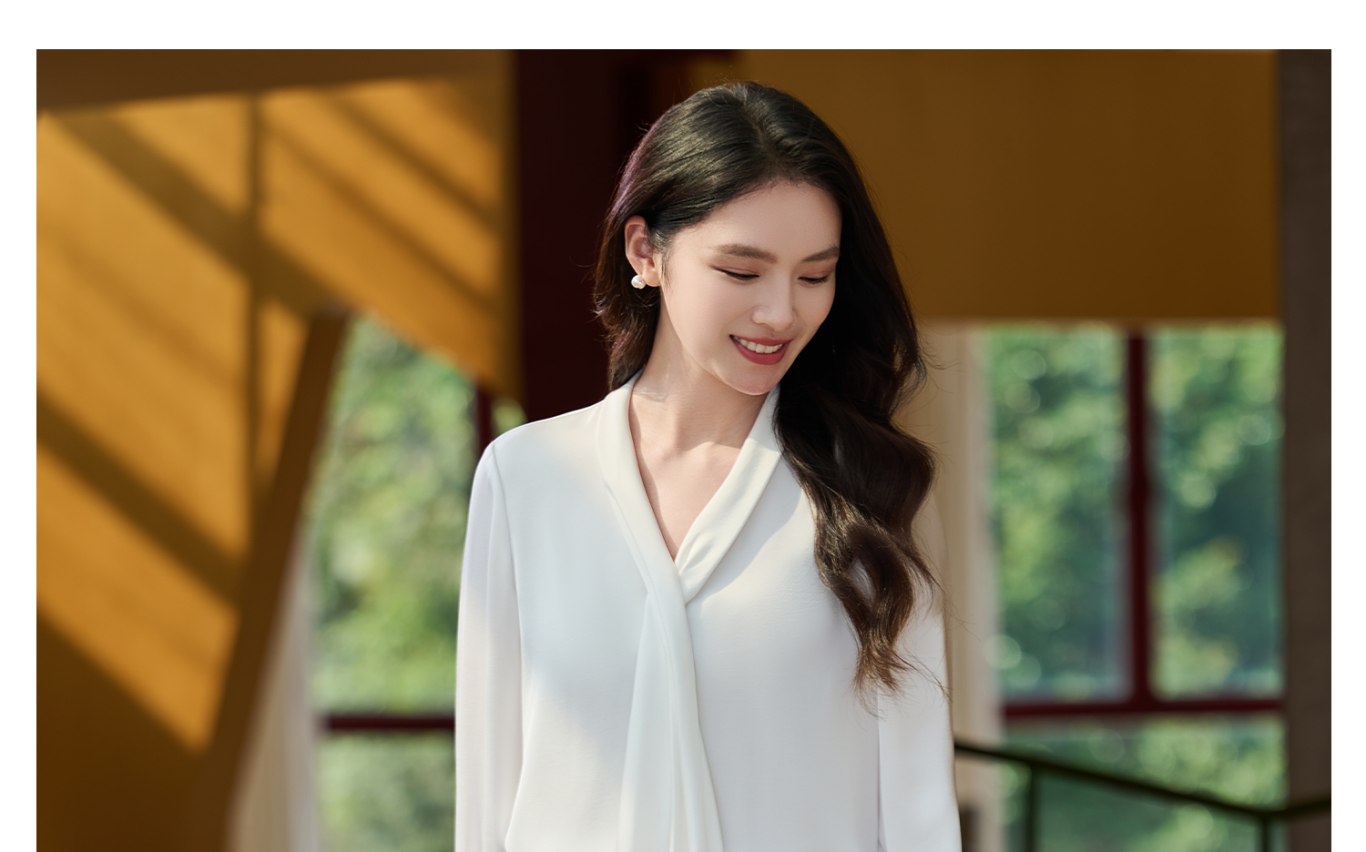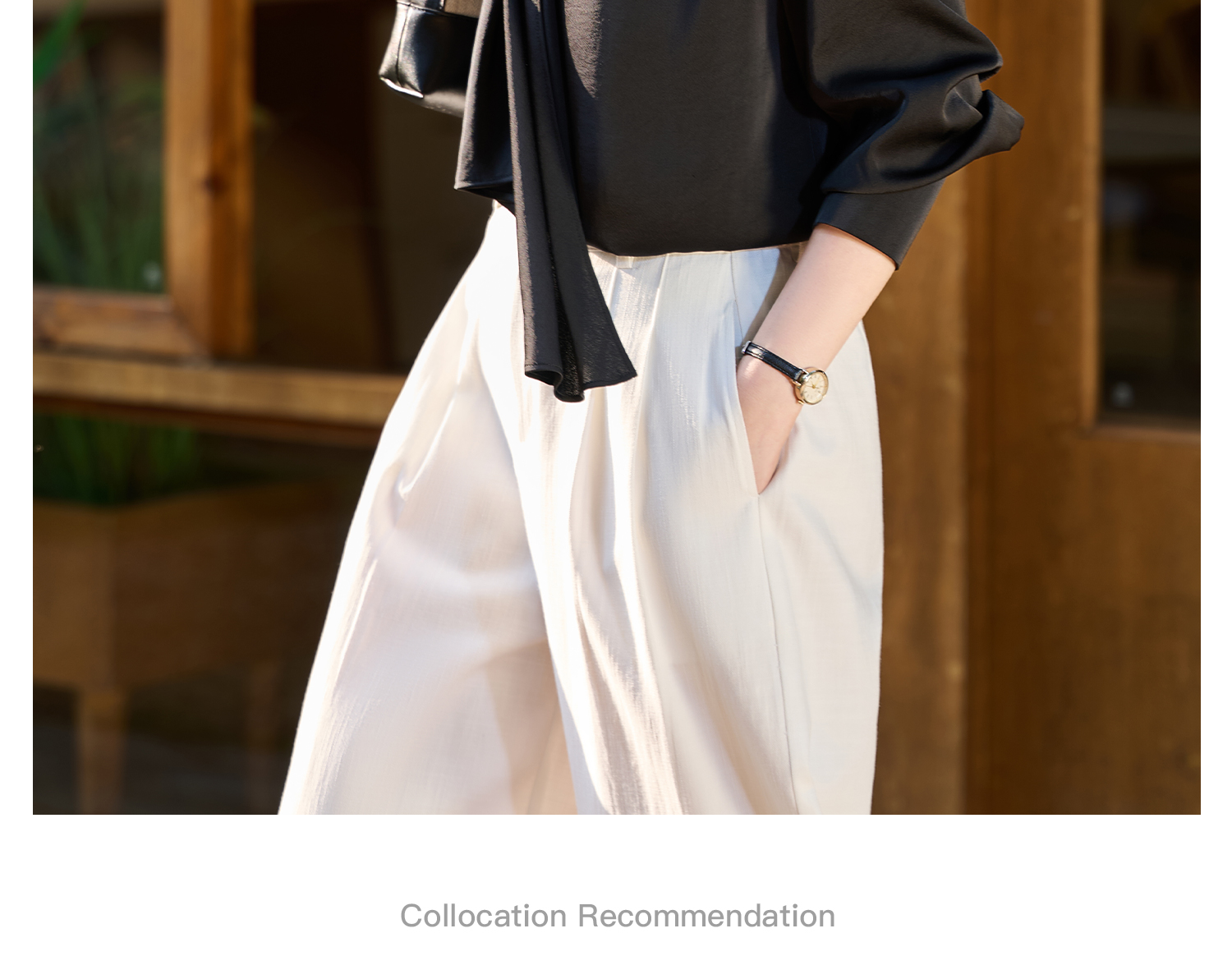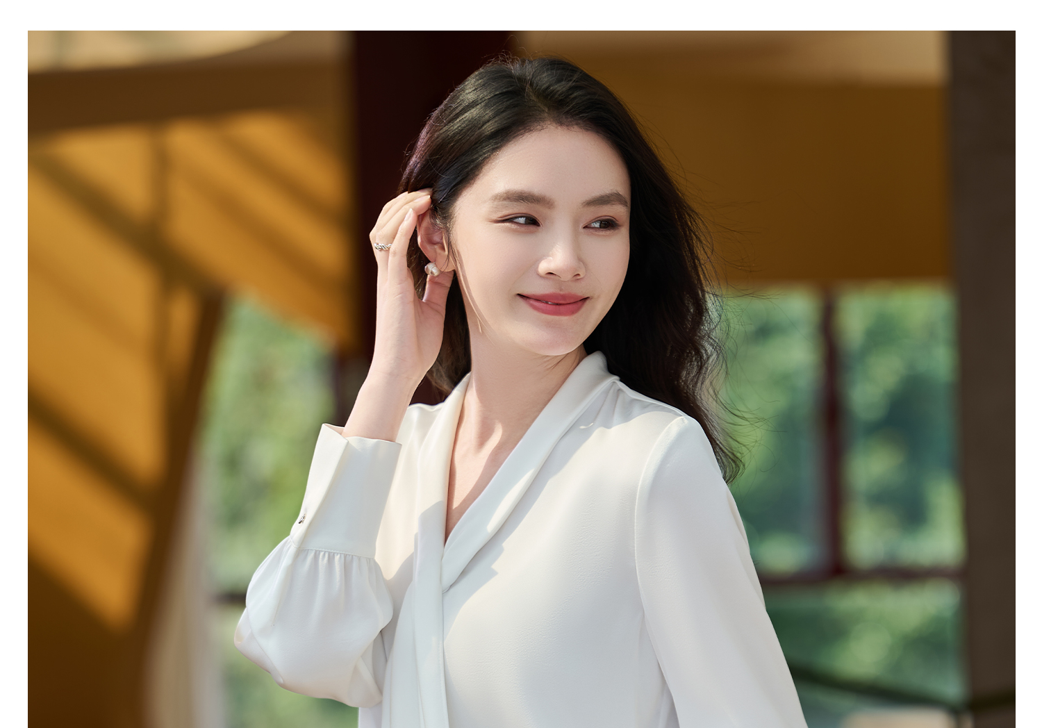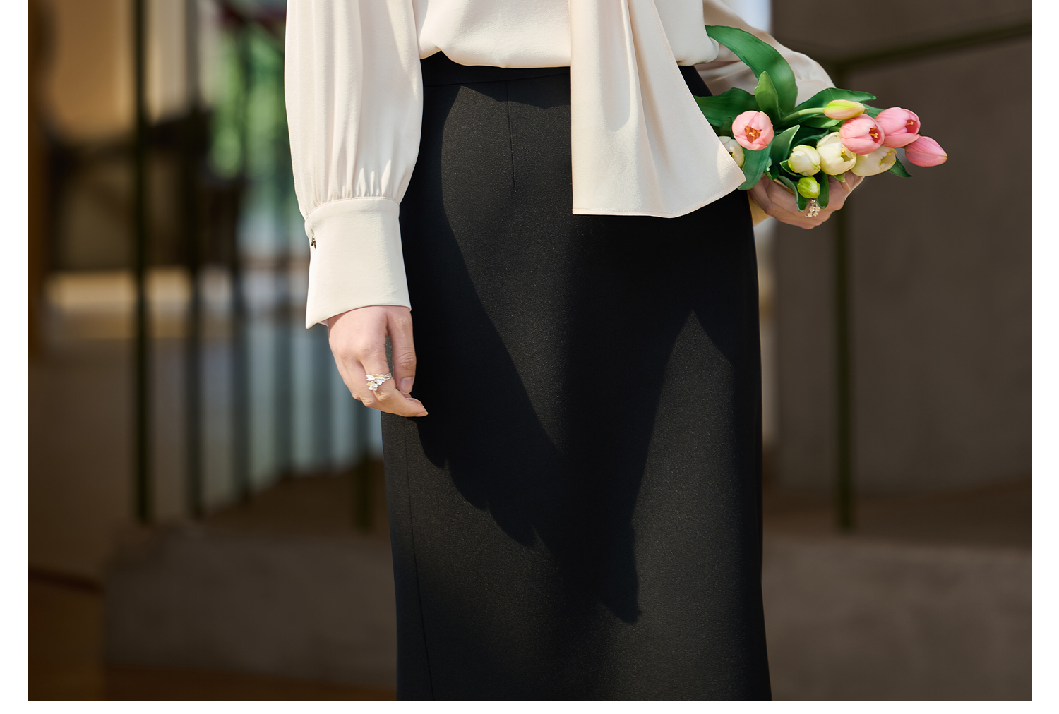细腻柔光缎面飘带衬衫 经典黑白杏三色 通勤配西装、约会配半裙、开会配西裤皆可!米思阳2026春新款设计感通勤V领飘带领衬衫女5305