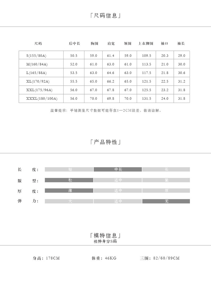 3、规格、尺码等;