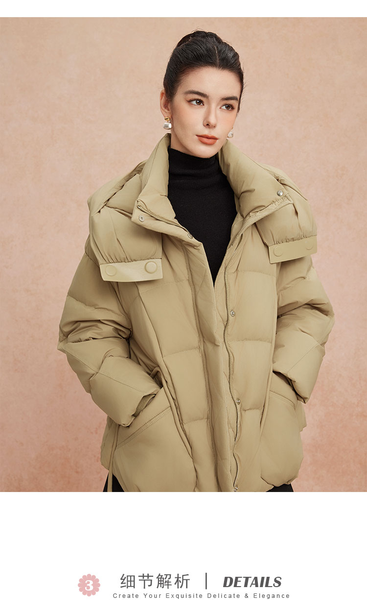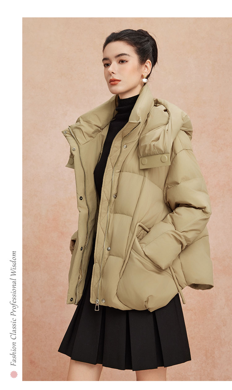 QR007斯尔丽25新款冬季连帽一手长款休闲面包服宽松加厚90绒减龄羽绒服
