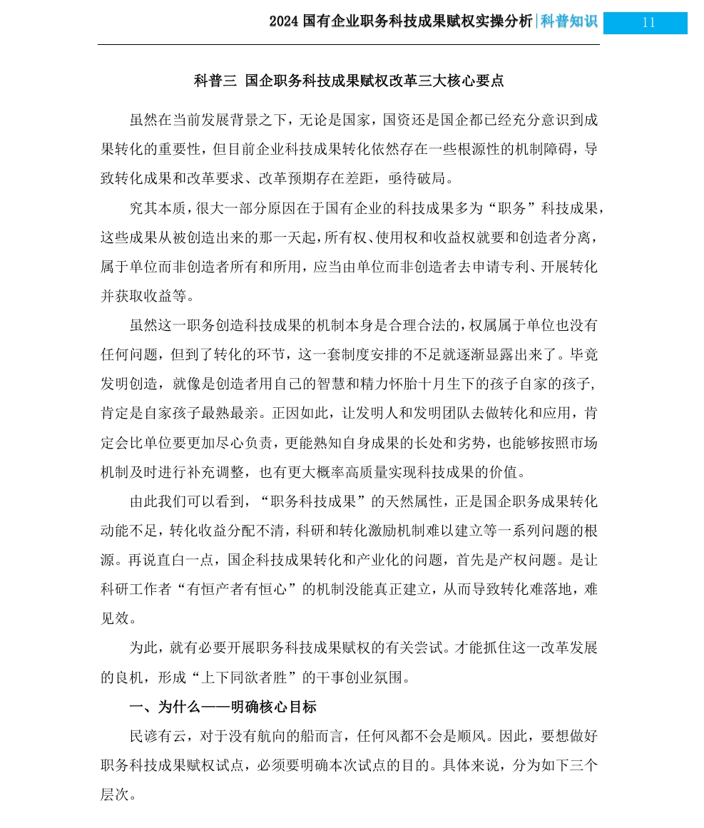 然后,深入探讨国有企业职务科技成果赋权改革的四大核心要点,解答为什么、是什么、做什么、看什么四大问题。
