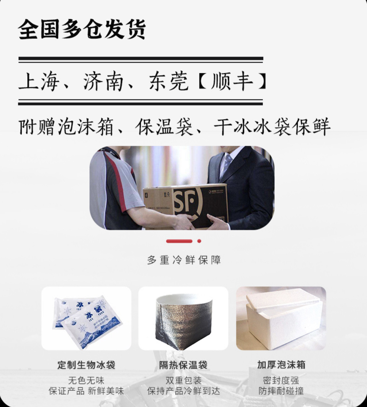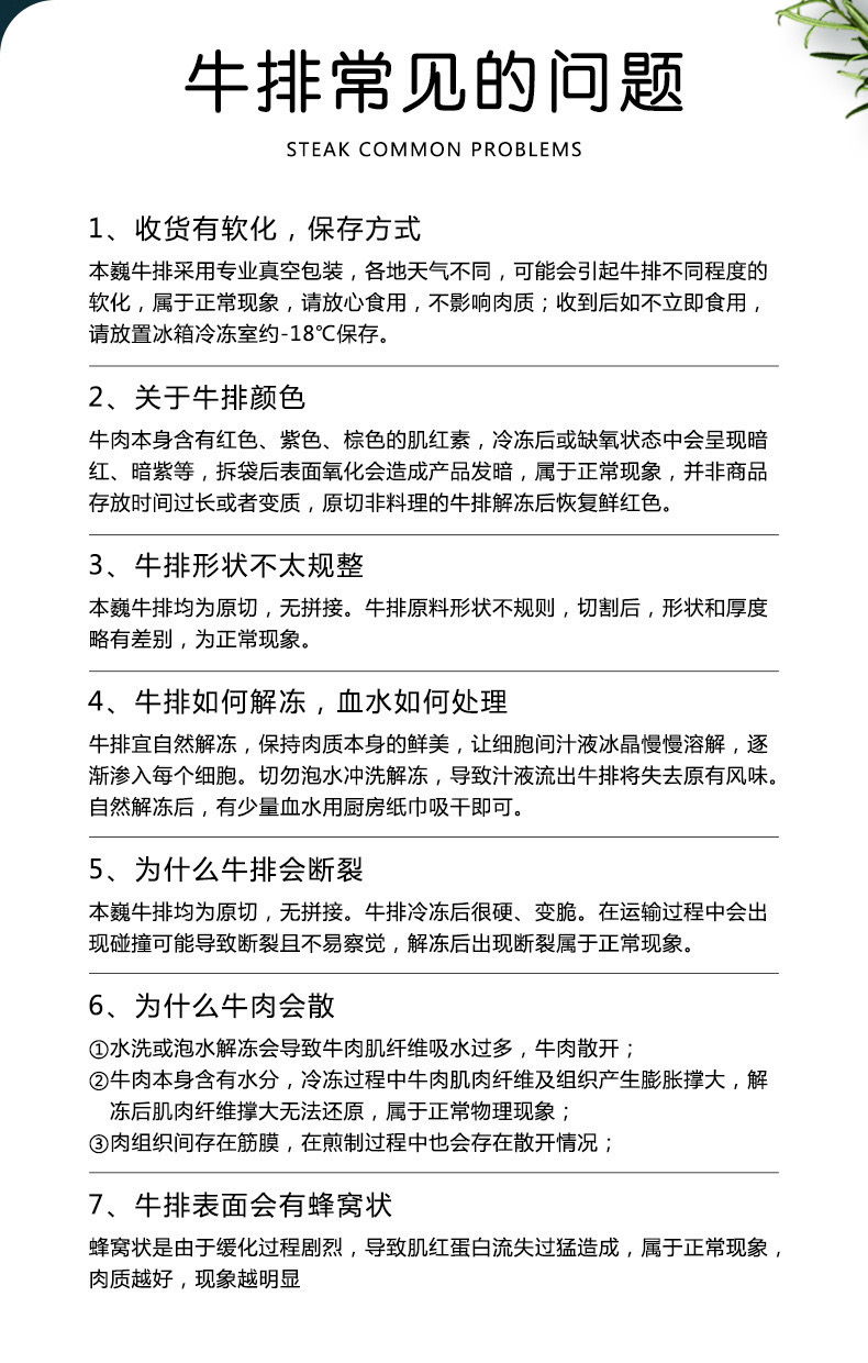 【产品名称】澳洲M3➕眼肉牛排 【品牌】禾木质道 【发货快递】顺丰/京东,优先选择顺丰 【发货时效】48小时内发货 【发货地点】山东济南/广东东莞 【不发货地区】新疆、西藏、青海、受疫情影响地区 【加运费地区】黑龙江、内蒙古+10元运费,甘肃+15元运费 【保存方式】-18℃冷冻储存 【产地】上海市 【生产日期】见每个产品详情 【保质日期】12个月 【产品包装】 泡沫箱+保温纸+干冰+冰袋 售后标准: 发货泡沫箱子外包装轻微破损不影响食用不售后,收到有软化属于正常情况,低温状态下不影响食用,介意请谨慎下单! 请客户随时跟踪快递信息,收到快递请速度取回放置冷冻,并且短时间内尽快食用,才不辜负美食的鲜美。 申请依据: 签收后6小时内,产品及面单正面拍照回传,超时不予受理。 |