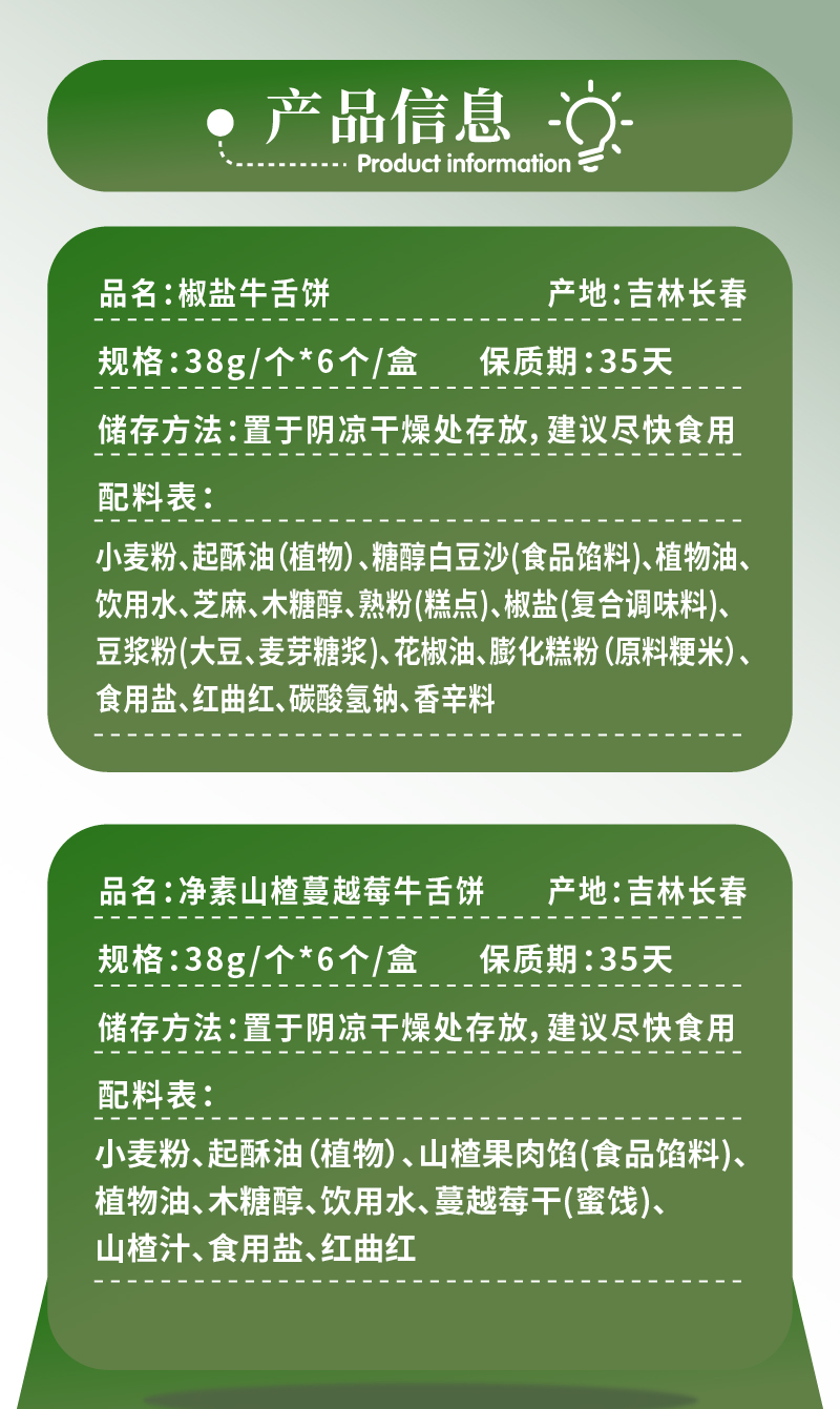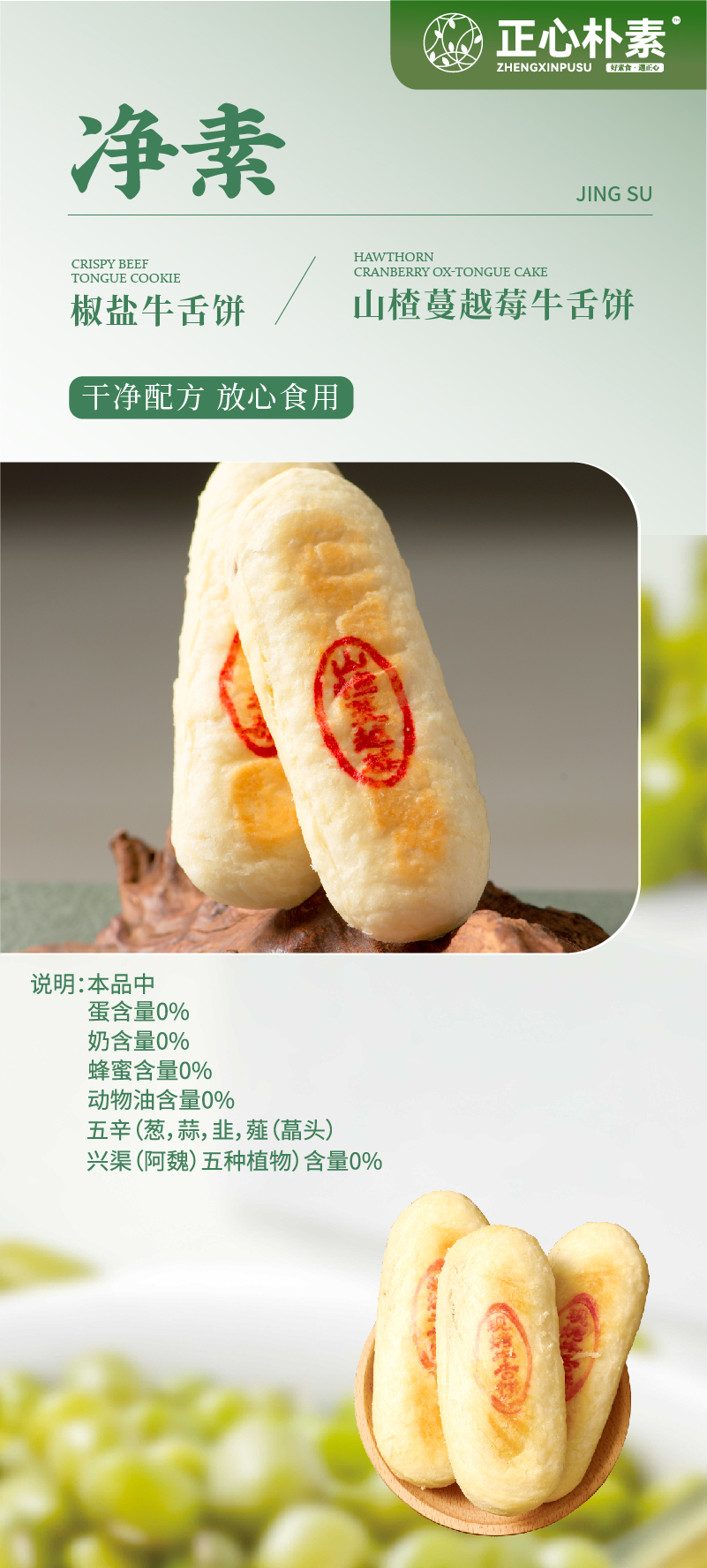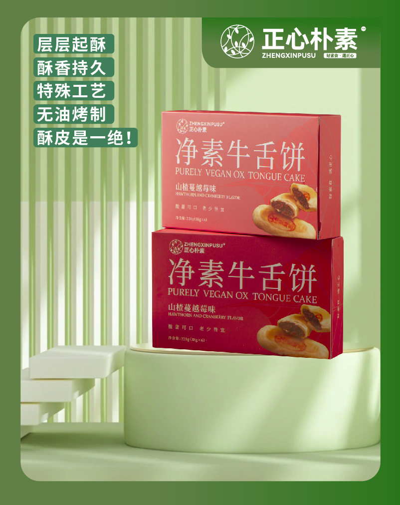 【买2赠1、买4减30】正心朴素 经典椒盐味 山楂蔓越莓味 净素牛舌饼 228g/盒【6块/盒】