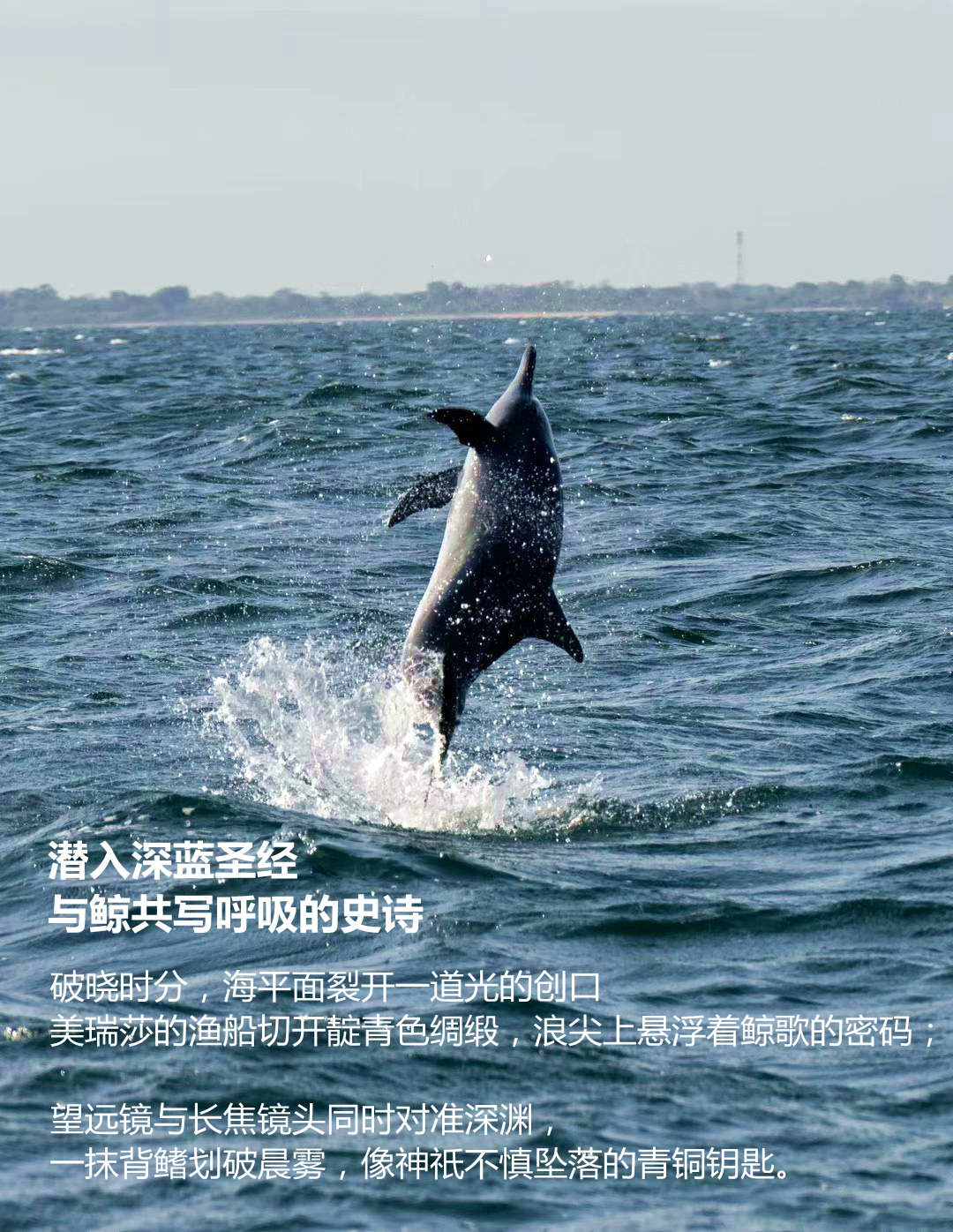 抹香鲸垂直沉潜的漩涡,将阳光绞成螺旋状的金色基因链;幼鲸跃出水面的弧度,恰好接住海鸥翅膀遗落的银鳞。