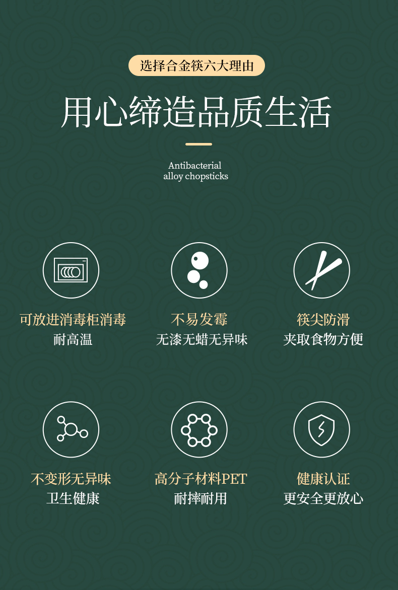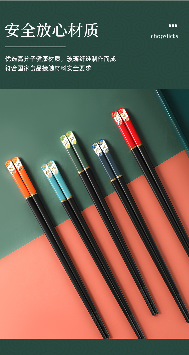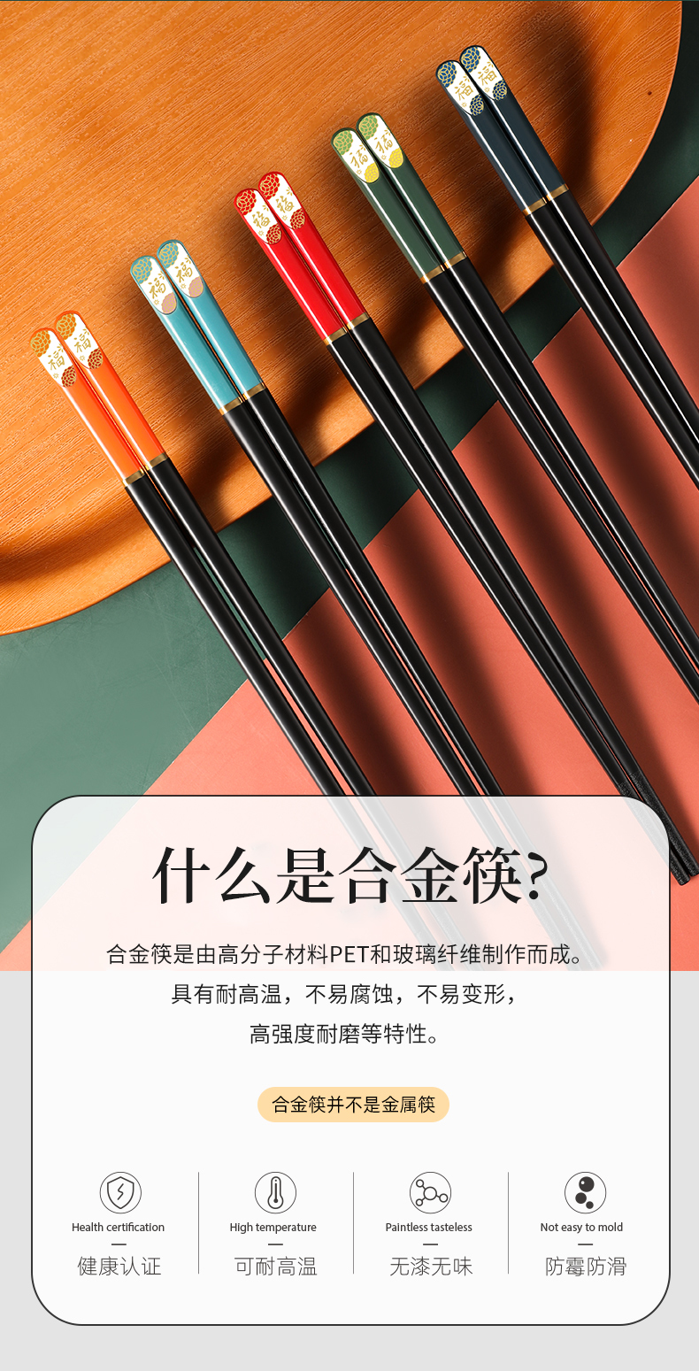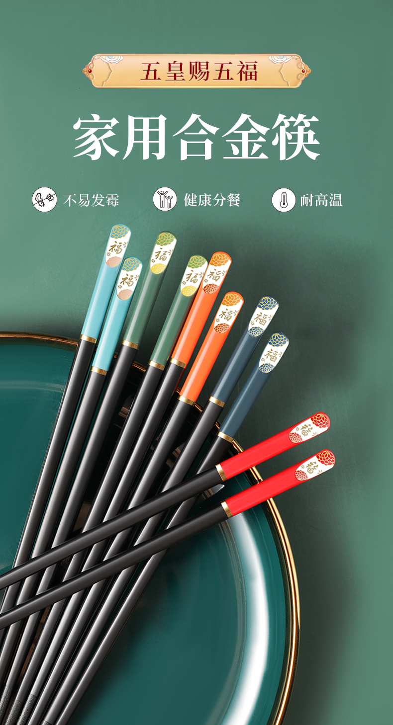 五皇赐五福【宏家新年五福筷10双礼盒装】合金材质 安全放心 不发霉耐高温 无漆无蜡无异味 筷尖磨砂 不会滑落