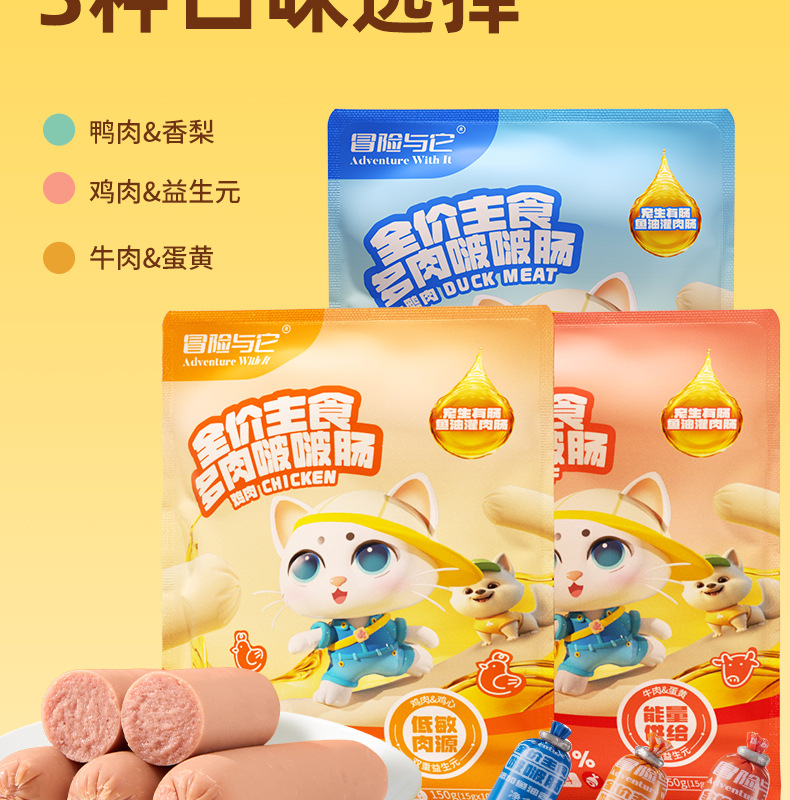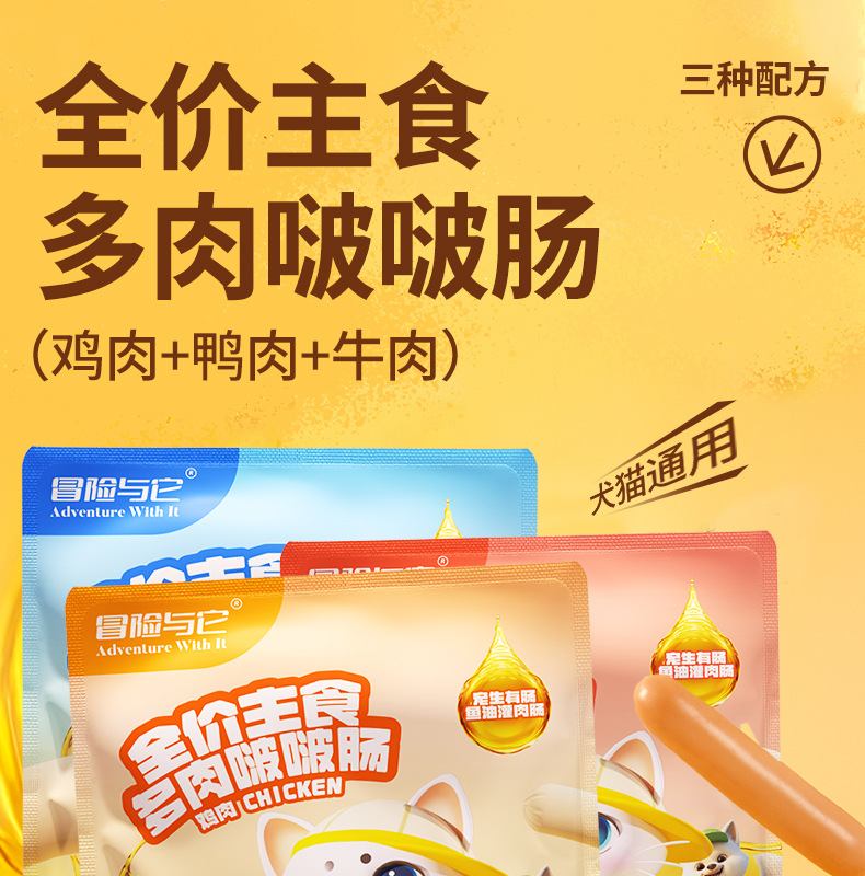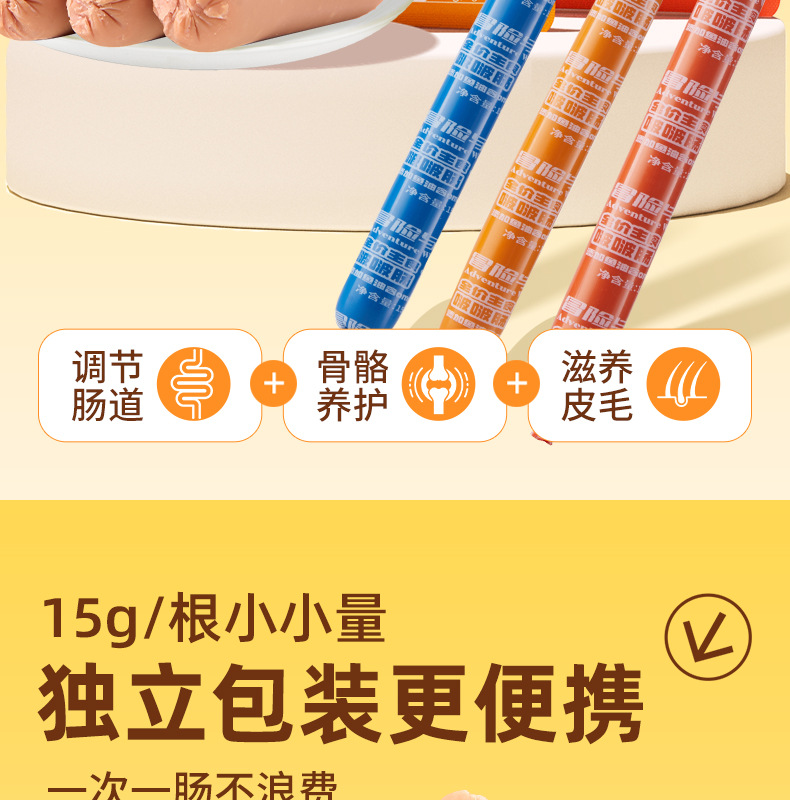 冒险与它宠物主食 火腿肠15g*10支 多口味 犬猫通用 宠物零食批发 全渠道可售