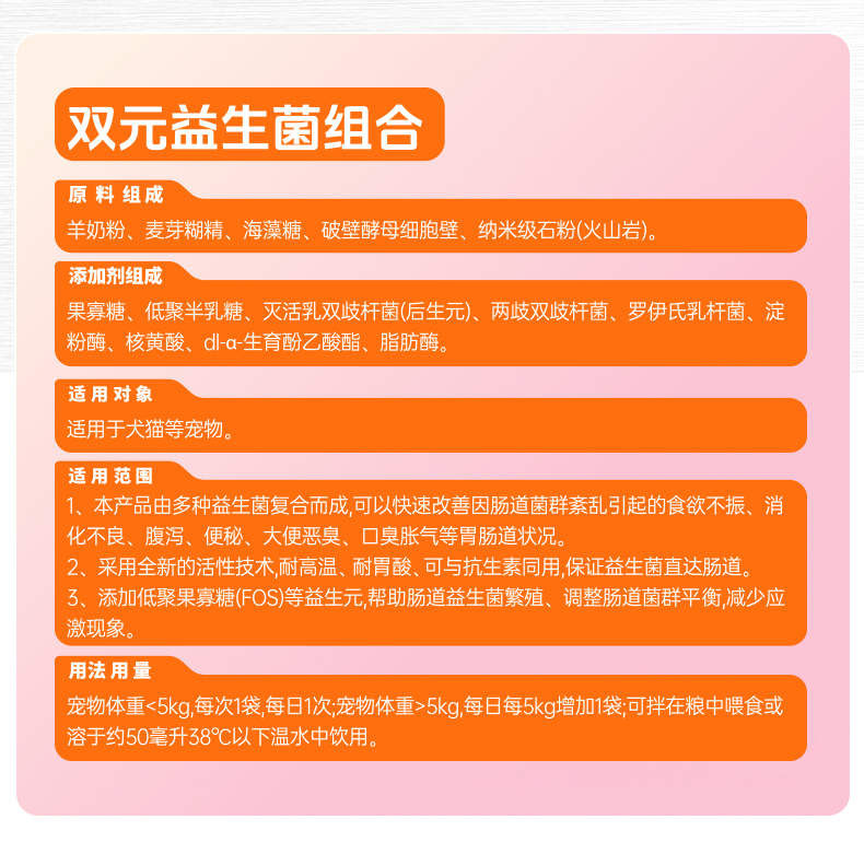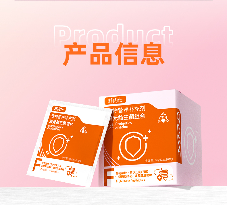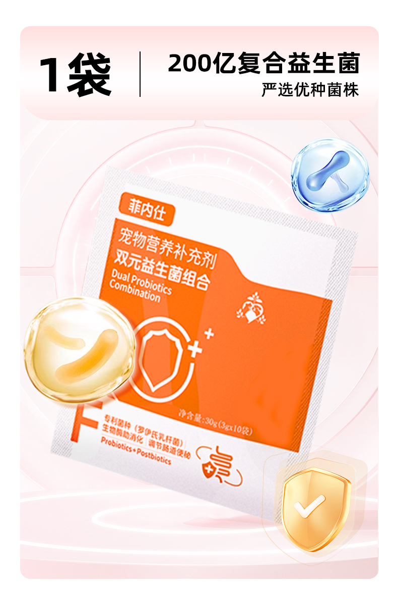 【10送2】菲内仕益生菌3g*10袋 专利菌种 调理肠胃犬猫通用 线下实体专供