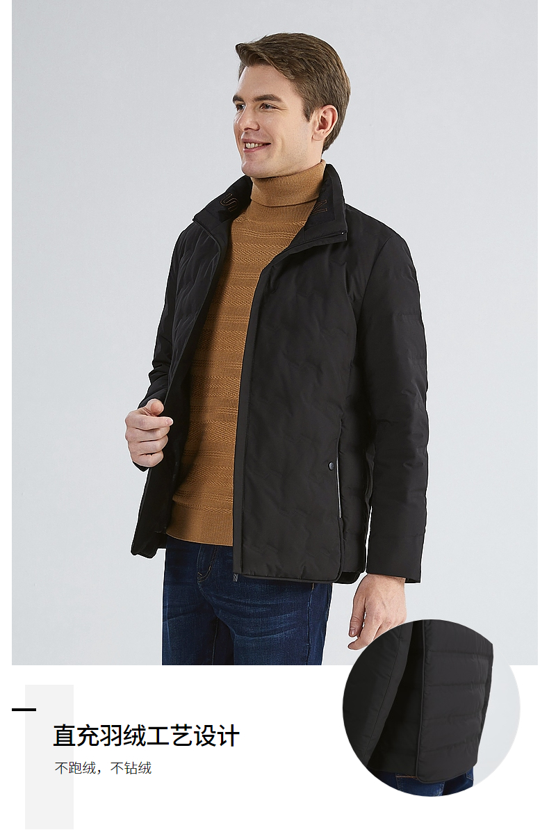 【白鸭绒】柒牌羽绒服男2022冬季新款商务休闲长袖立领保暖厚外套123E70160