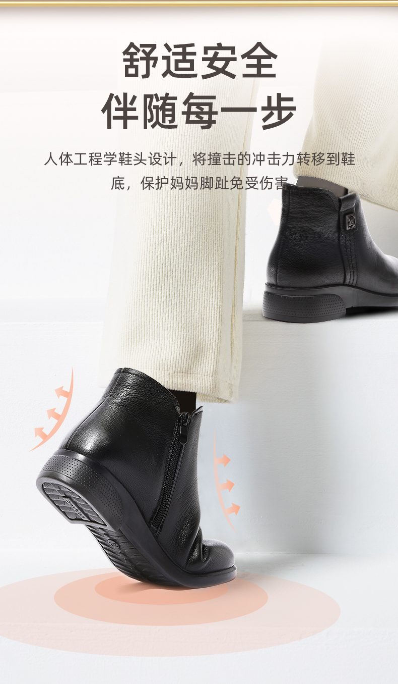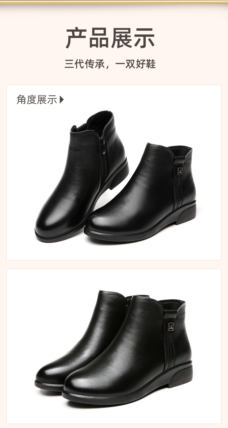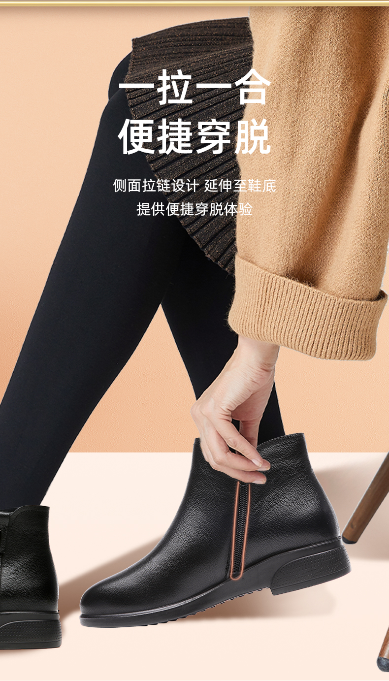 信诺加绒妈妈保暖棉鞋女2020新款冬季真皮女鞋中老年皮毛一体短靴20M833-23