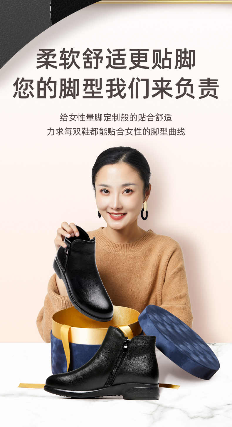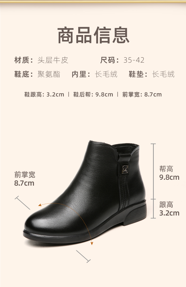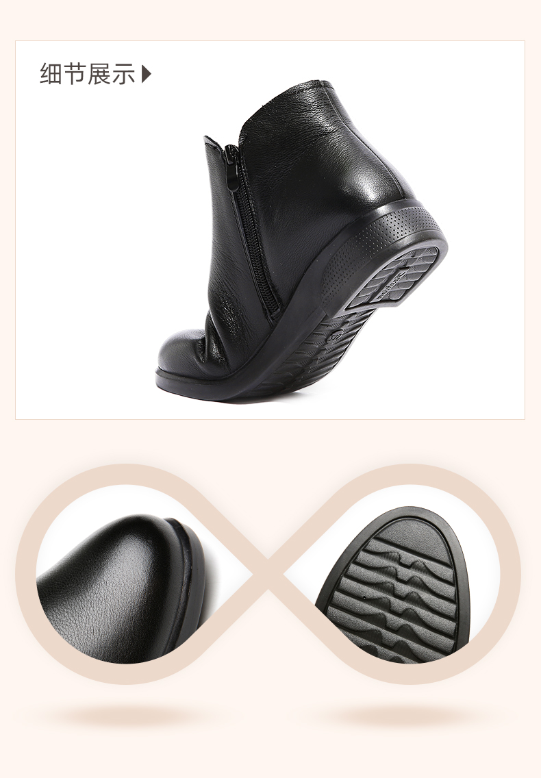 信诺加绒妈妈保暖棉鞋女2020新款冬季真皮女鞋中老年皮毛一体短靴20M833-23