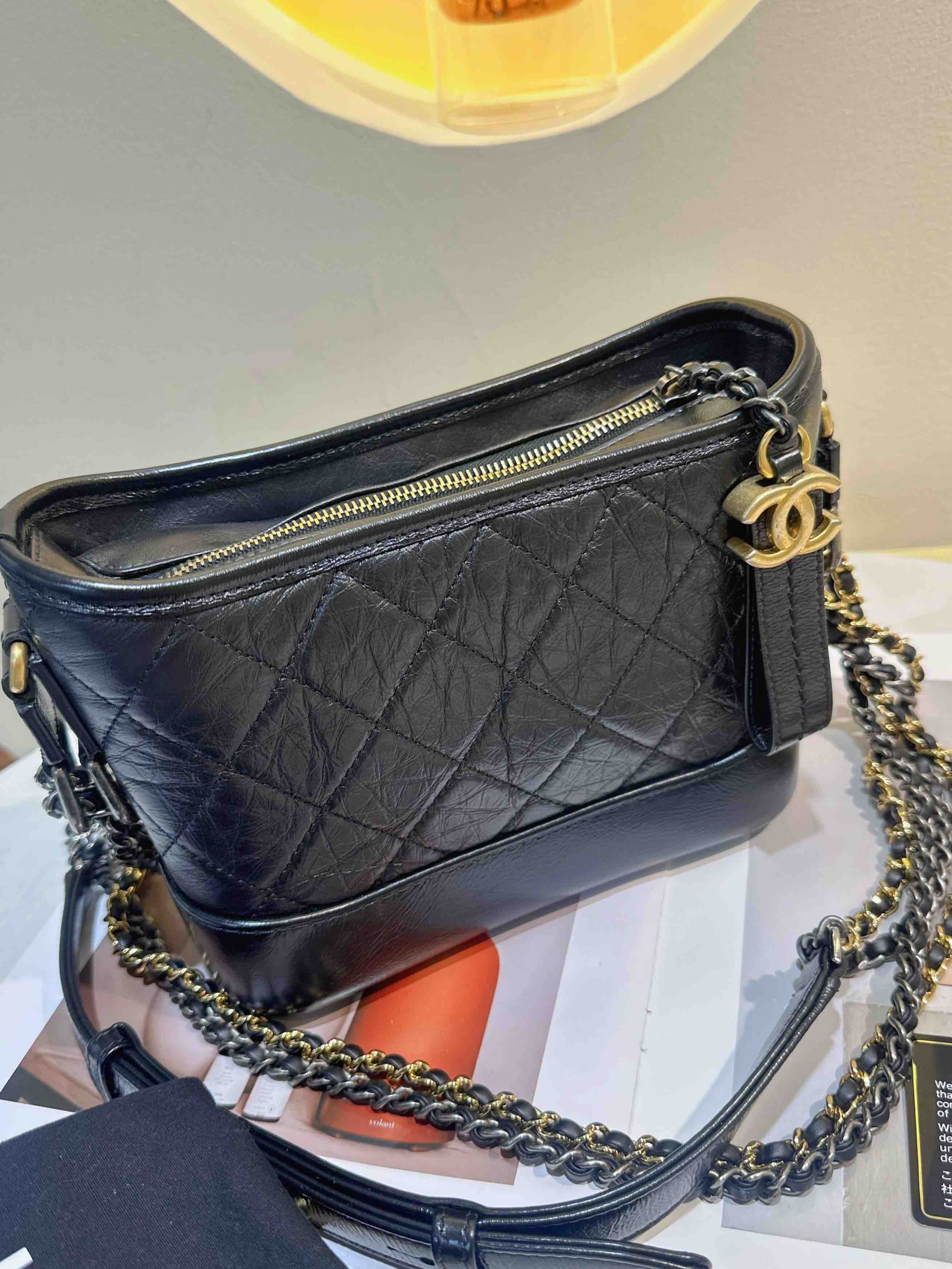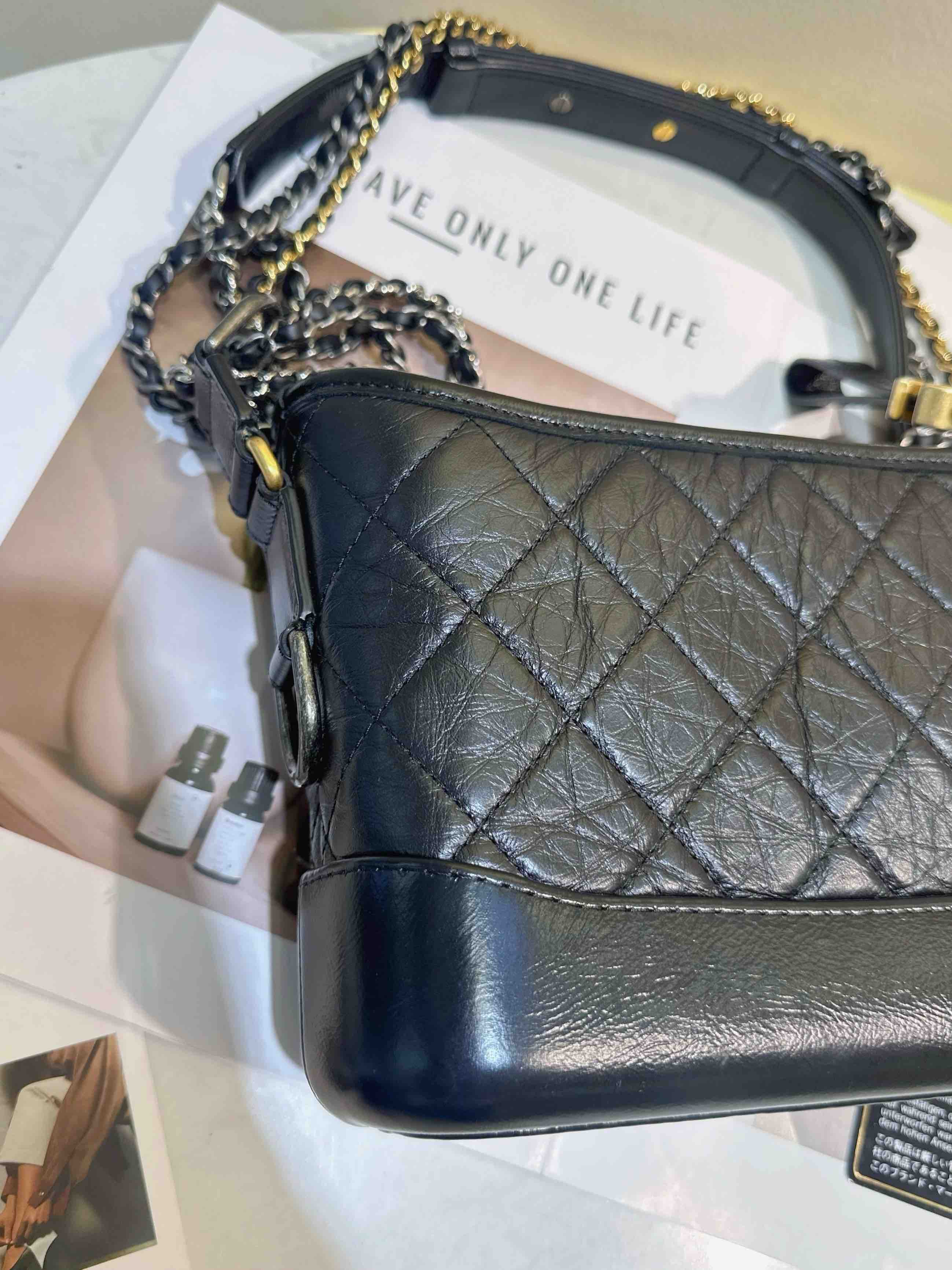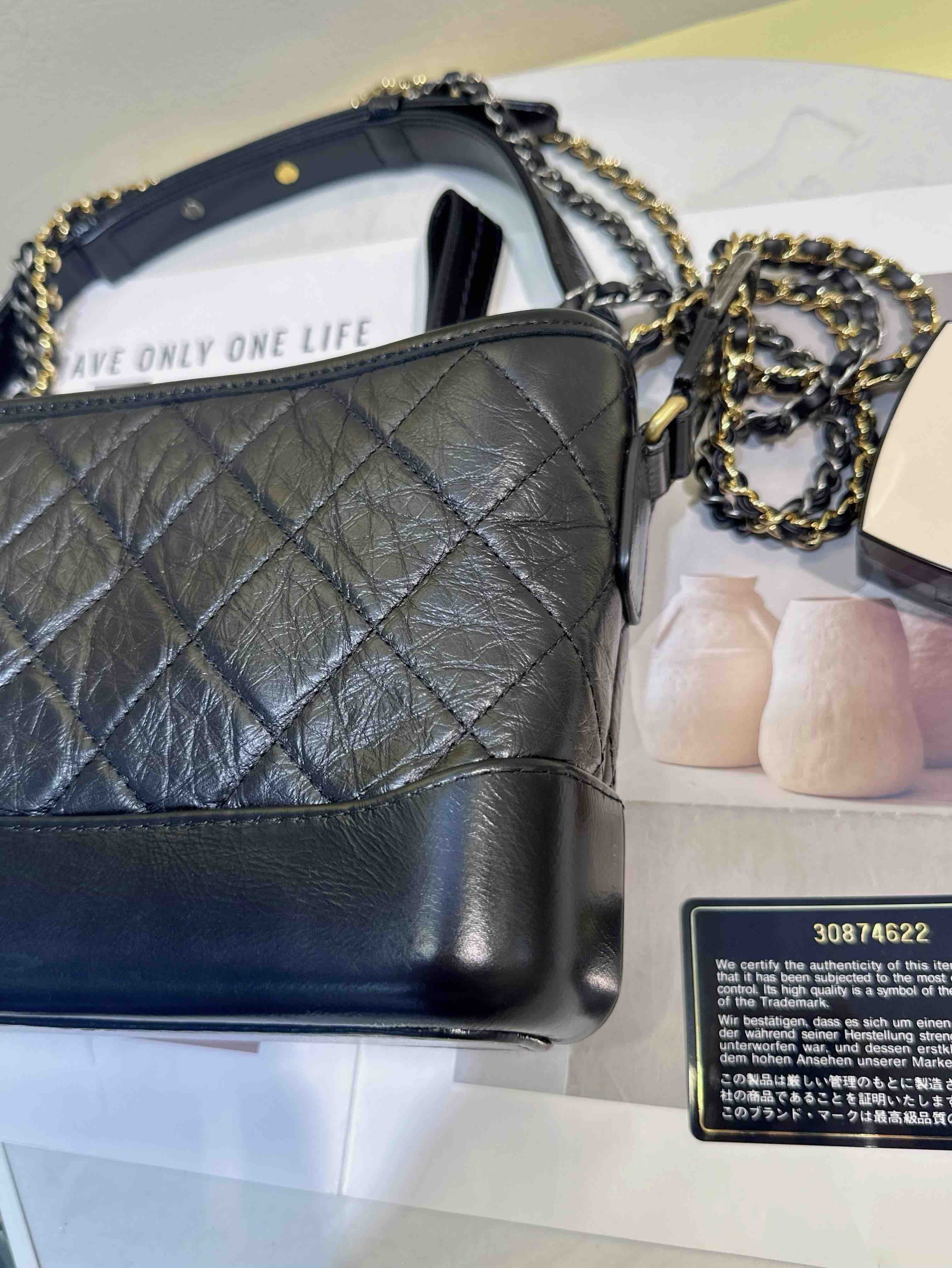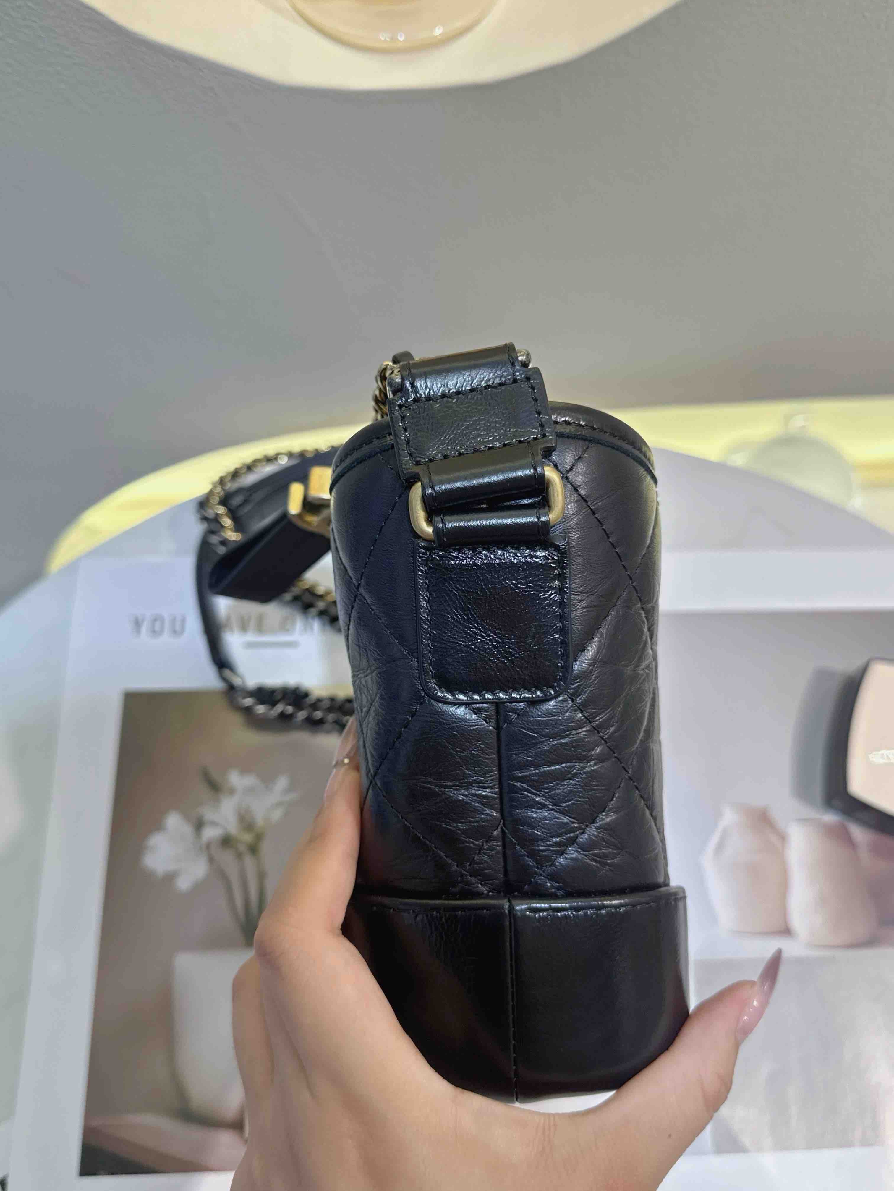 【商品詳情】 正品二手 Chanel 小号 黑色 做旧牛皮 菱格纹 流浪包⛄️ 98新 20*14 镭射30开 配件:卡 防尘袋。好看实用金刚款