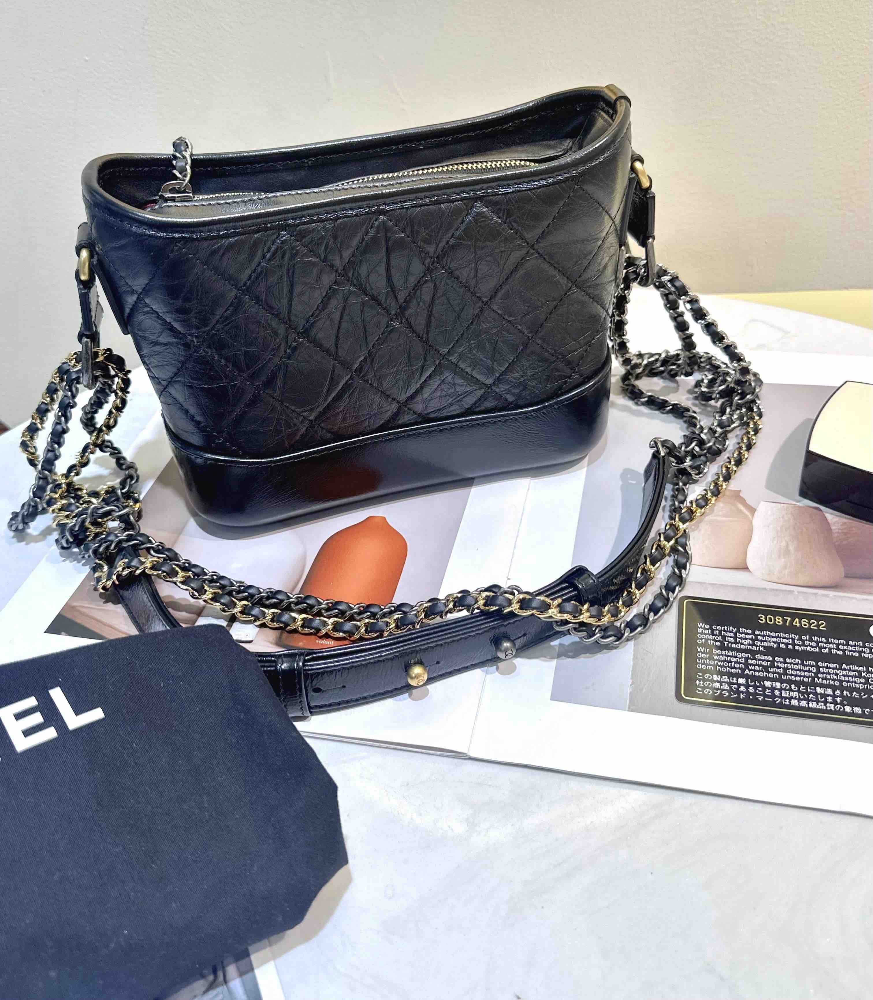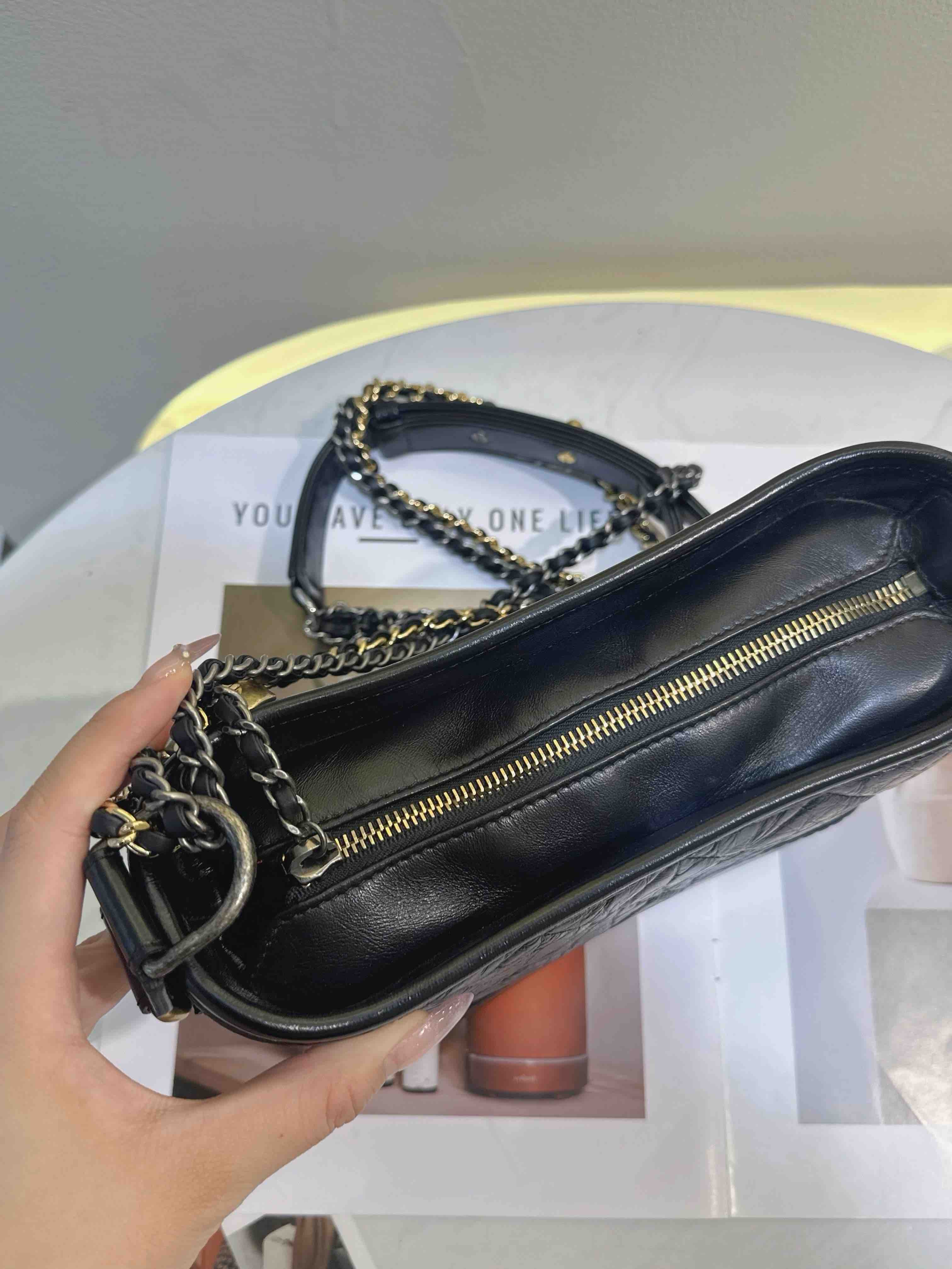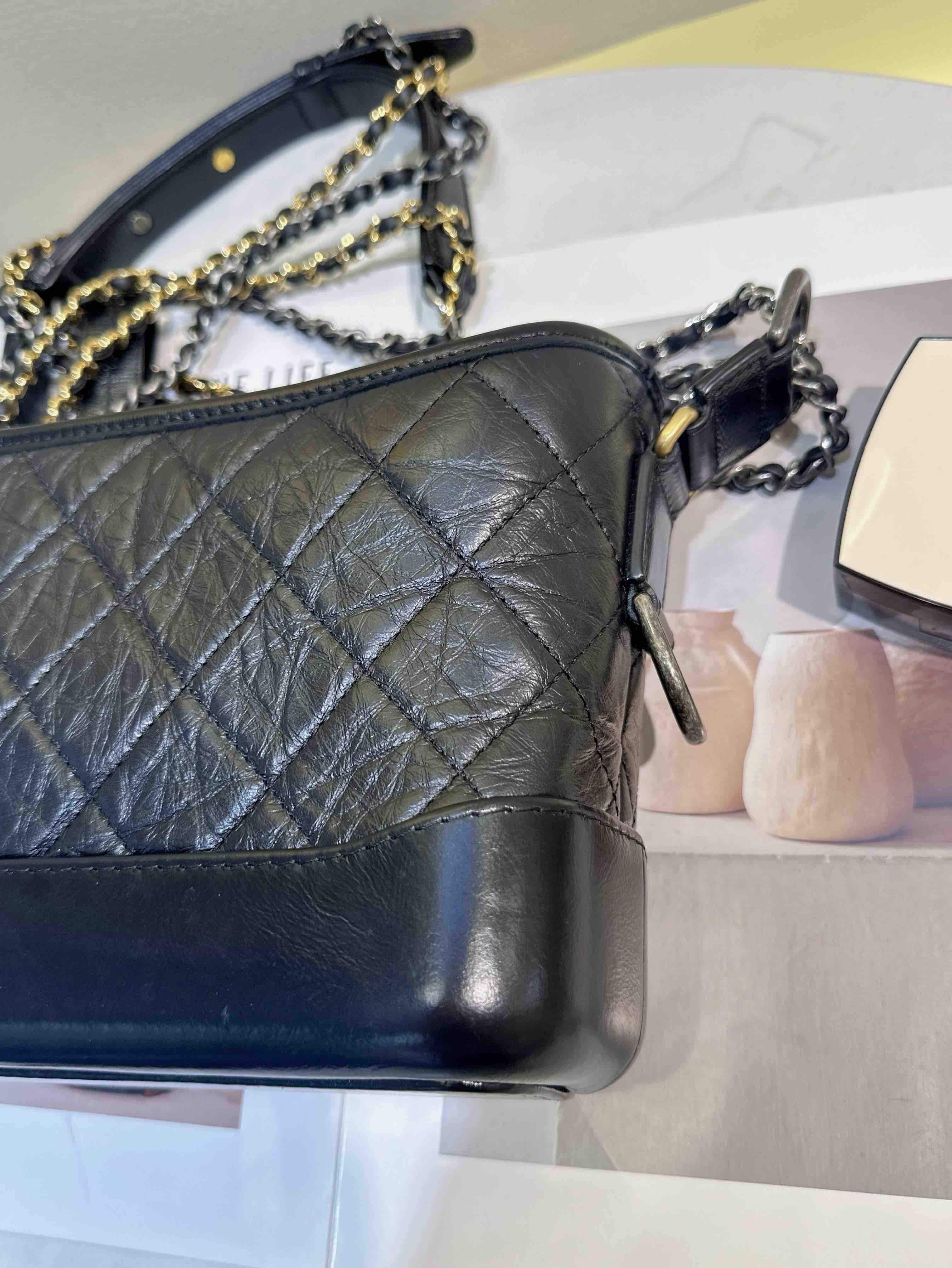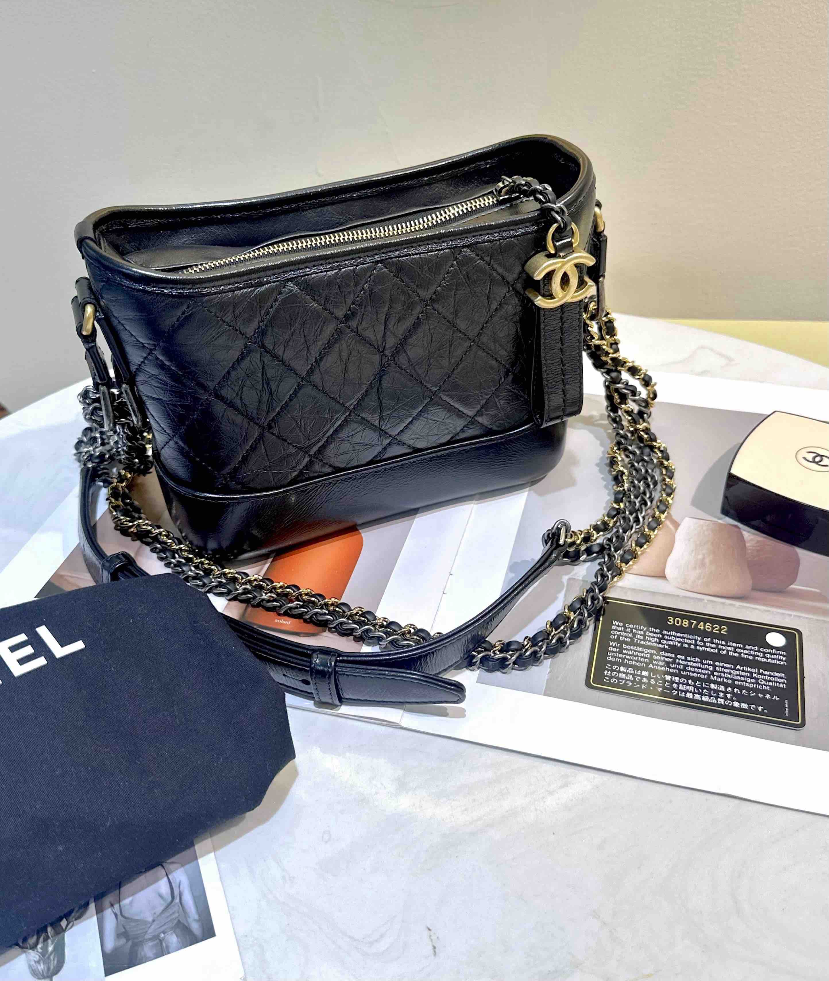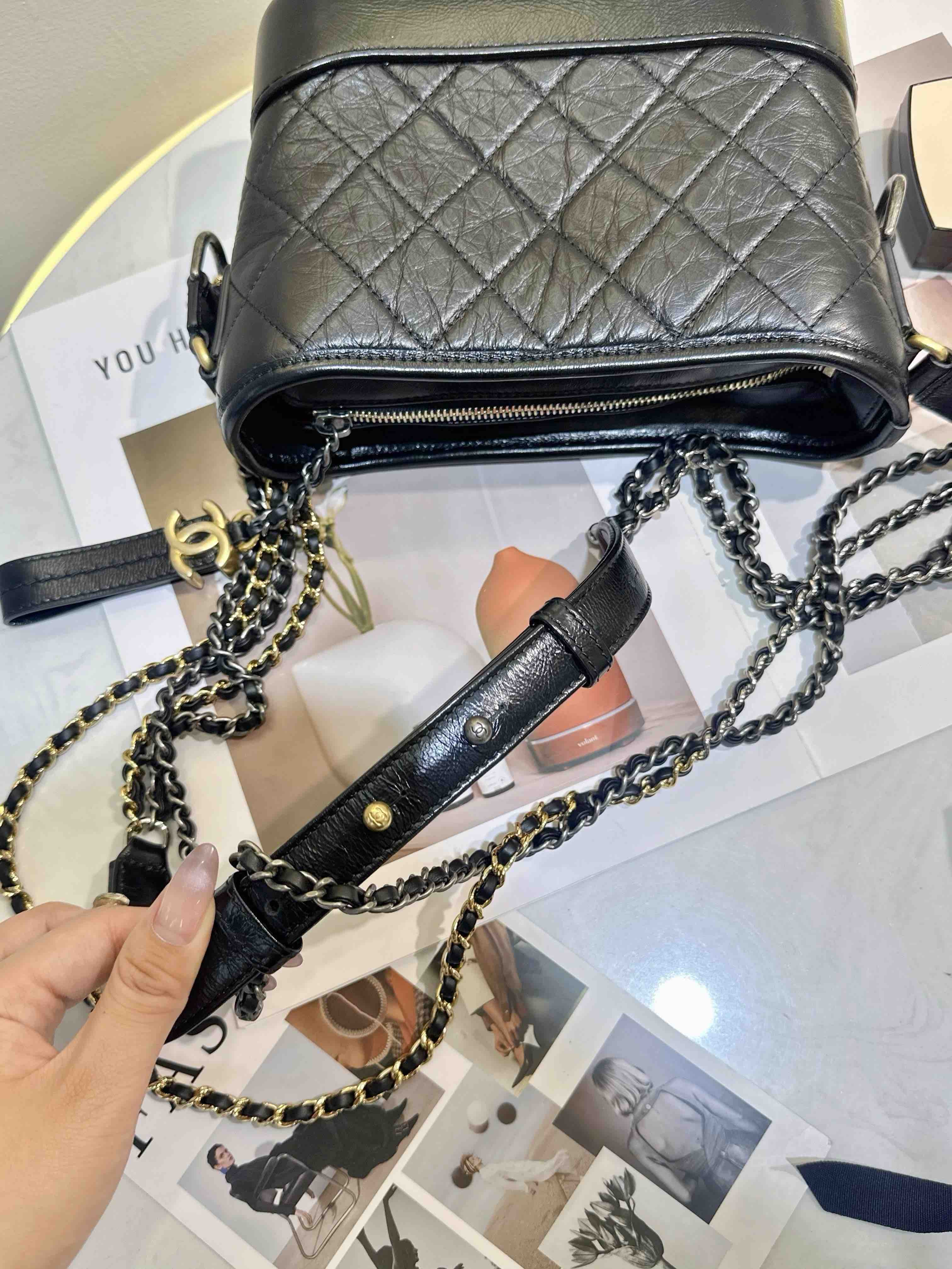 【商品詳情】 正品二手 Chanel 小号 黑色 做旧牛皮 菱格纹 流浪包⛄️ 98新 20*14 镭射30开 配件:卡 防尘袋。好看实用金刚款