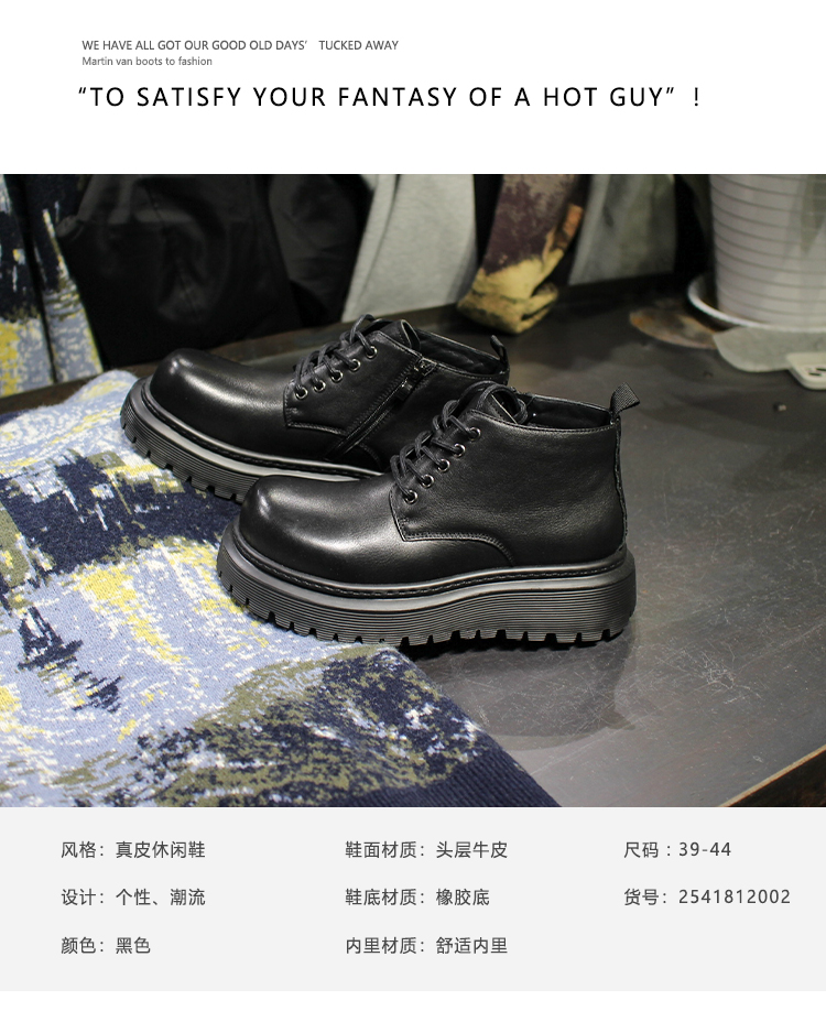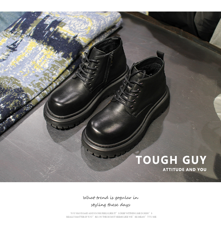DRONKOO 2025 系带内侧拉链德比大头中帮真皮休闲鞋