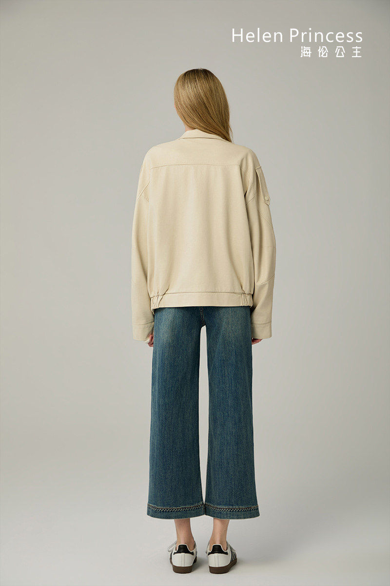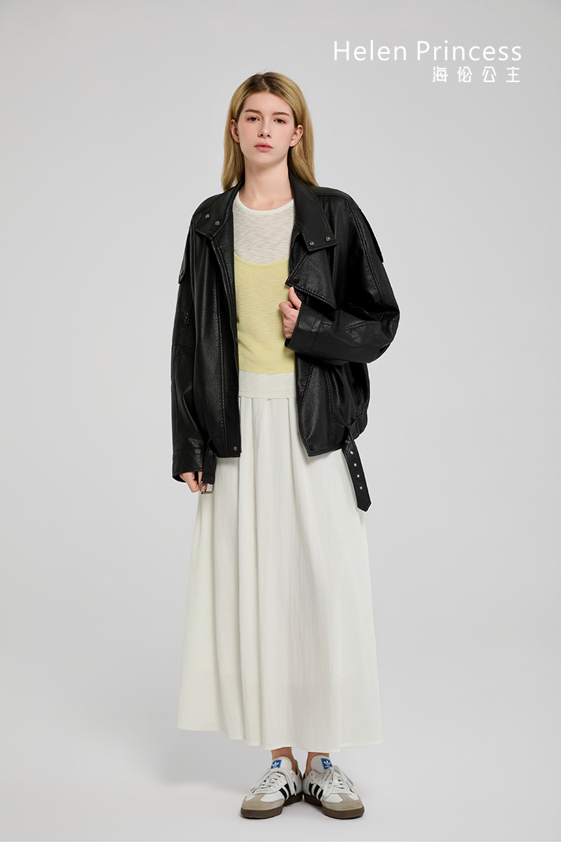 立领设计利落有型,能够修饰颈部线条也能防风保暖。衣摆可调节腰带,为穿着提供多种可能性。整体复古机车风格,展现新时代女性干练帅气的时尚风格。