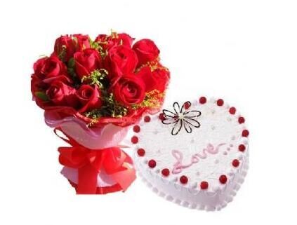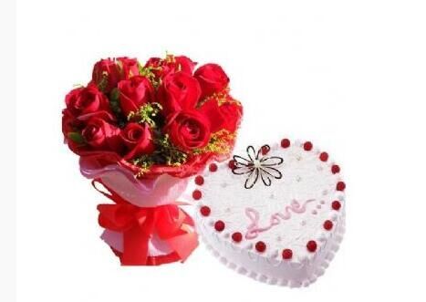 花材:19枝红玫瑰花束+8寸圆形鲜奶蛋糕.