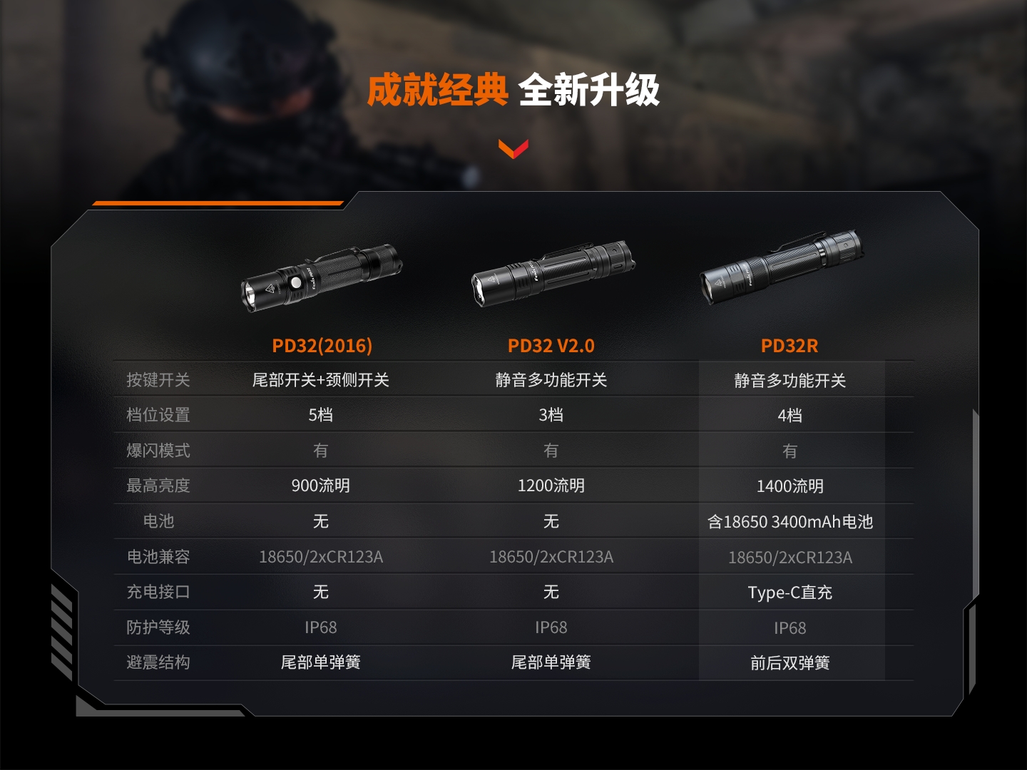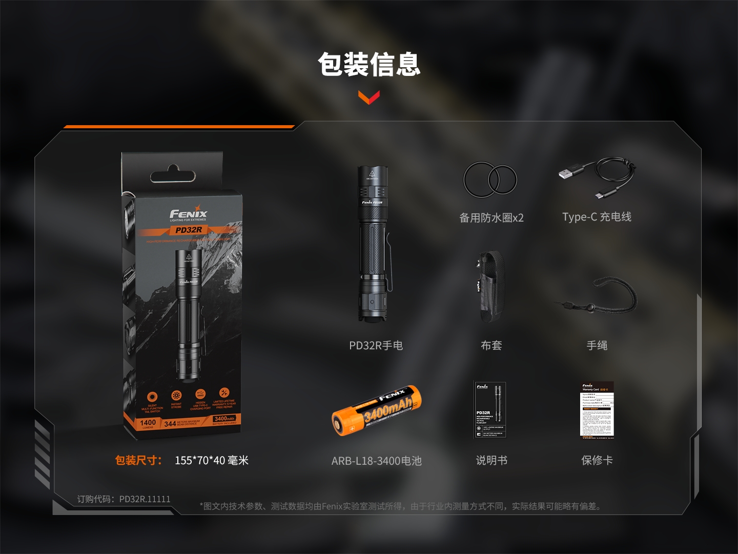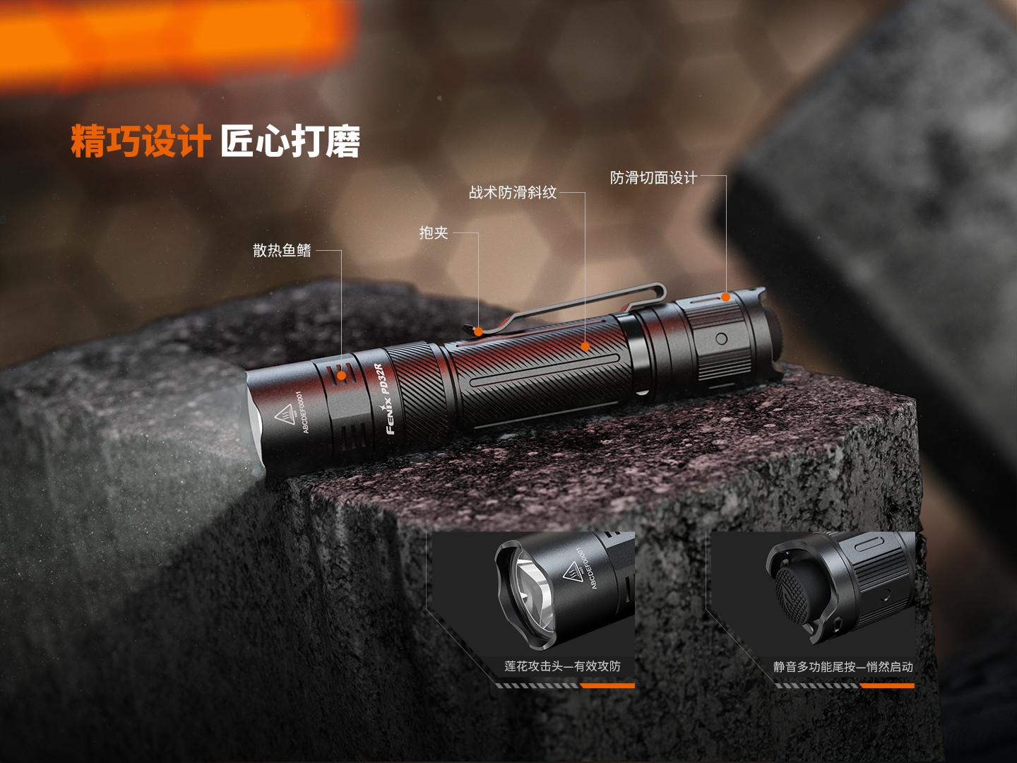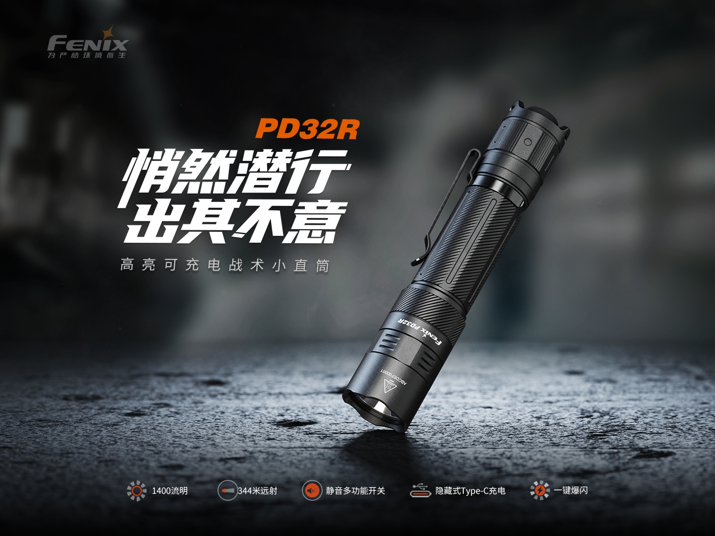 Fenix菲尼克斯PD32R手电筒静音高性能多功能尾按战术小直筒18650电池