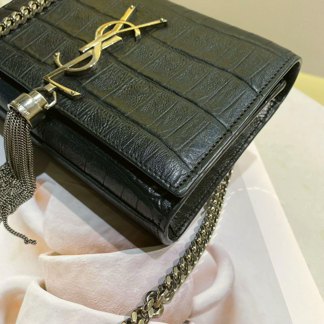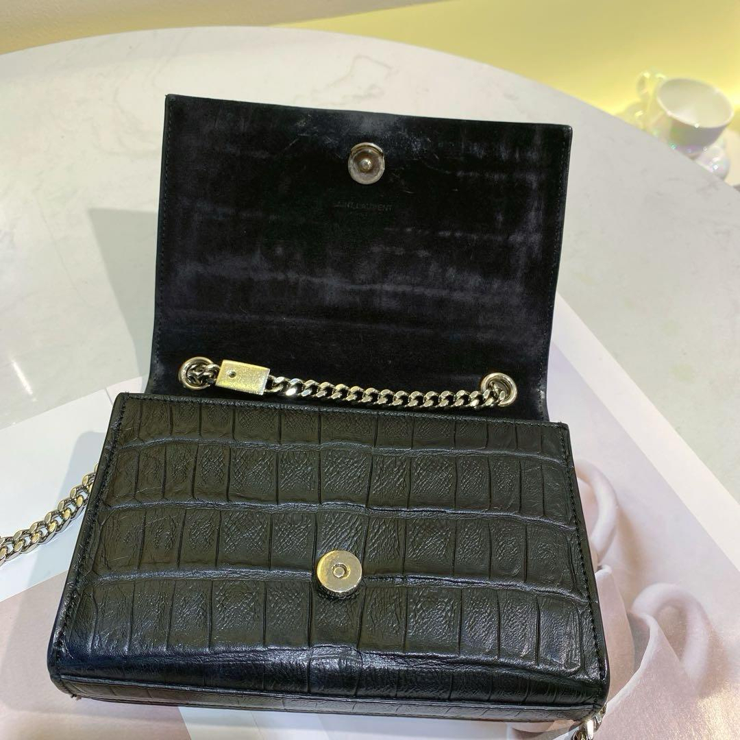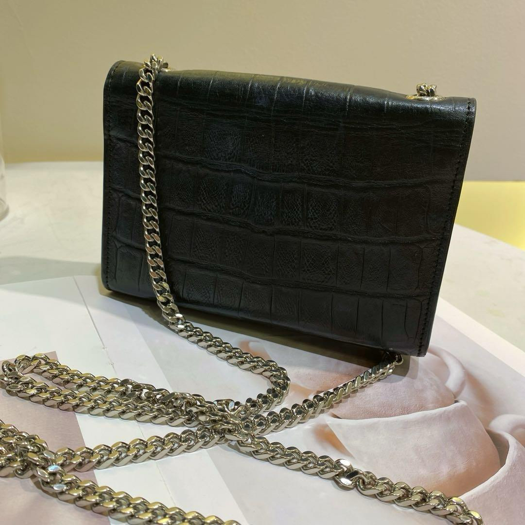 【商品詳情】正品二手 ysl mini 黑银 鳄鱼压纹 牛皮 kate 链条包🍖 93新 20*13。五金logo有轻微使用痕迹感 翻盖边角和内翻盖有正常使用摩擦感。。大女主都市摩登