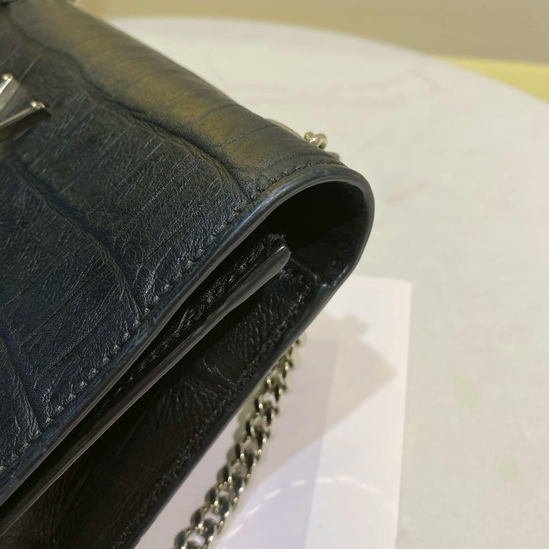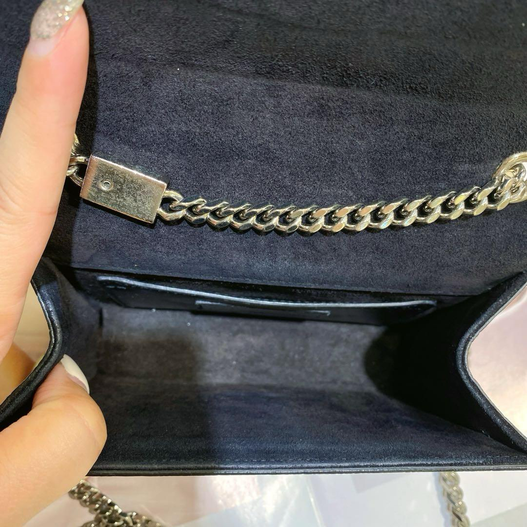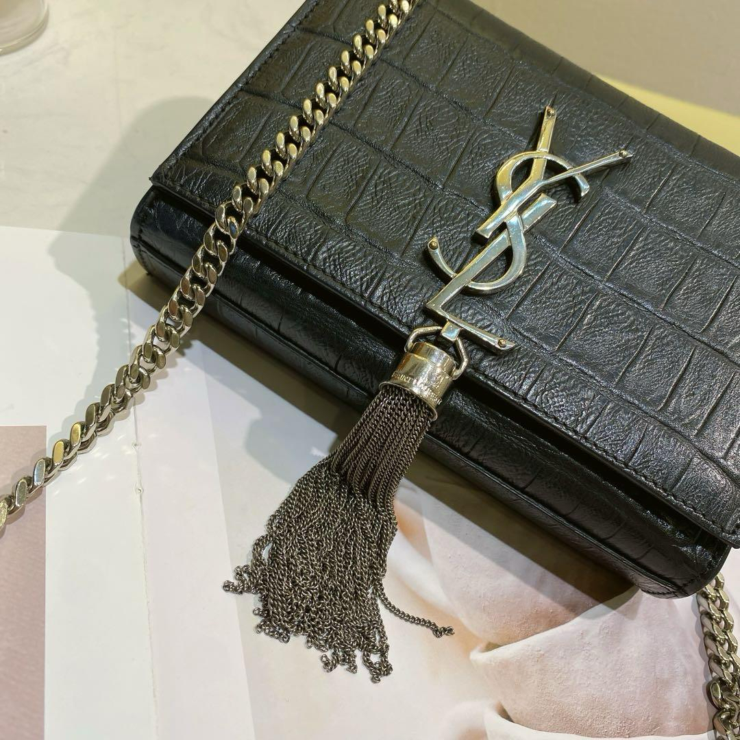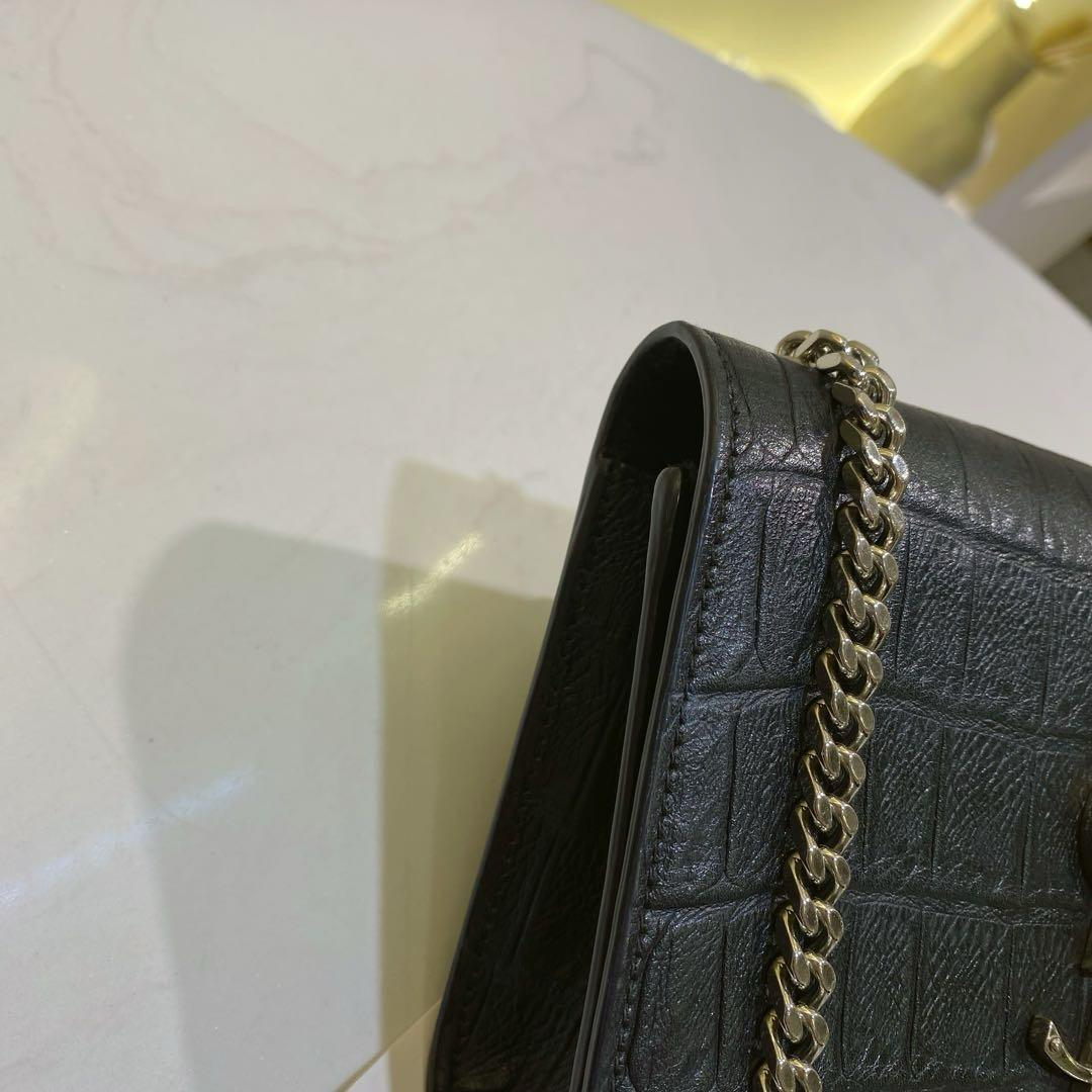 【商品詳情】正品二手 ysl mini 黑银 鳄鱼压纹 牛皮 kate 链条包🍖 93新 20*13。五金logo有轻微使用痕迹感 翻盖边角和内翻盖有正常使用摩擦感。。大女主都市摩登