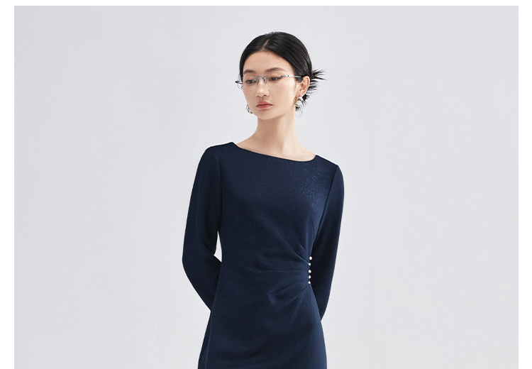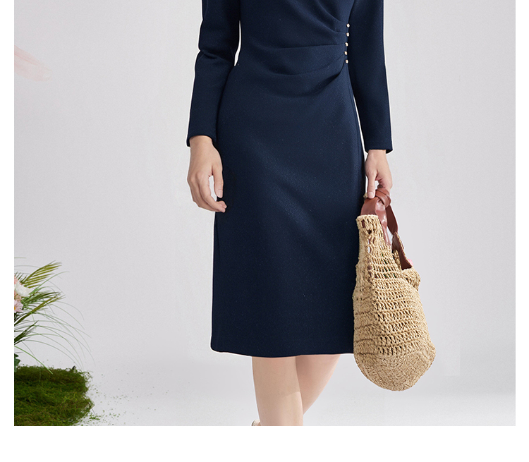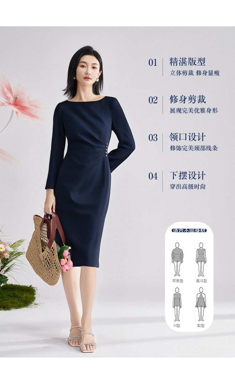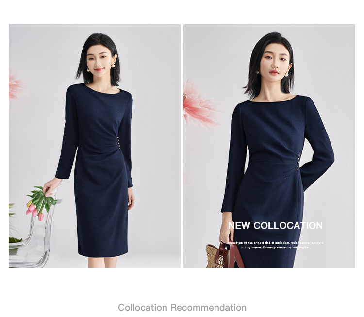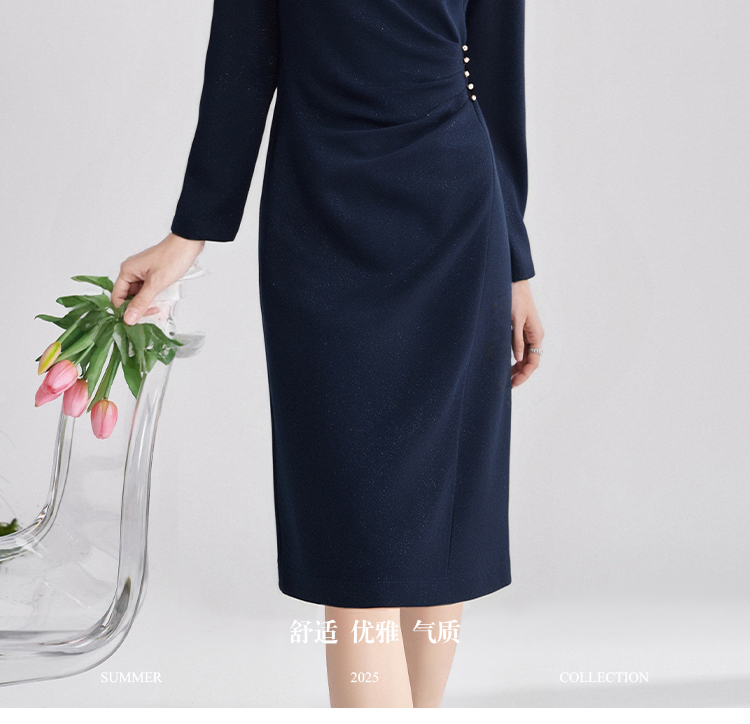 剩S/M/L/XL/XXL 米思阳2026春季新款优雅气质通勤连衣裙纯色修身显瘦中长裙子0105