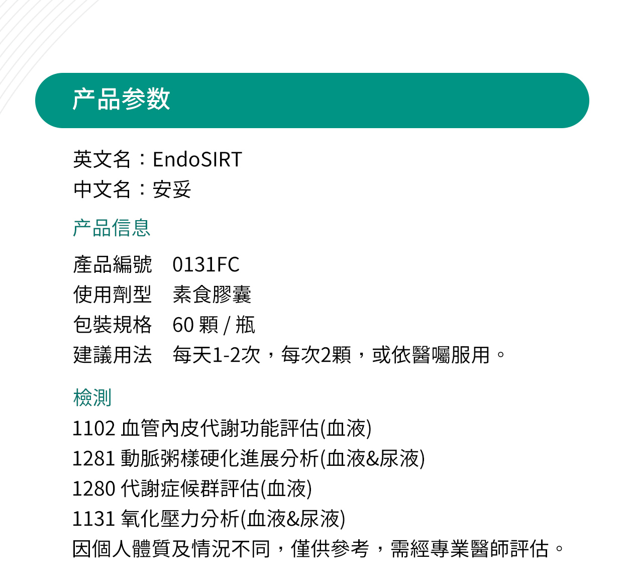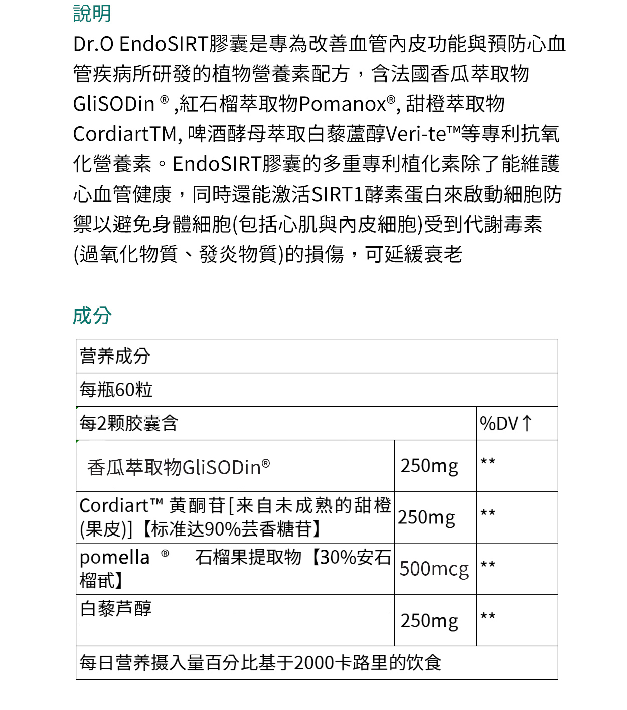 台湾瀚仕 安妥 EndoSIRT- 心血管健康 #SOD #白藜芦醇#红石榴萃取物#NO平衡 【预售】