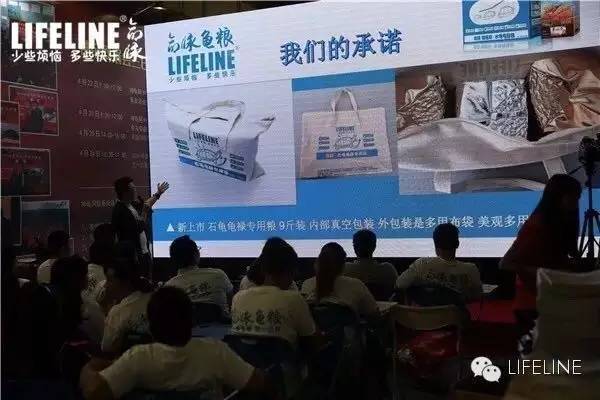 今年4月的顺德大良龟展,LIFELINE团队在经销商大会上发布了2016年的新品:命脉专用粮系列·石龟龟碌粮。