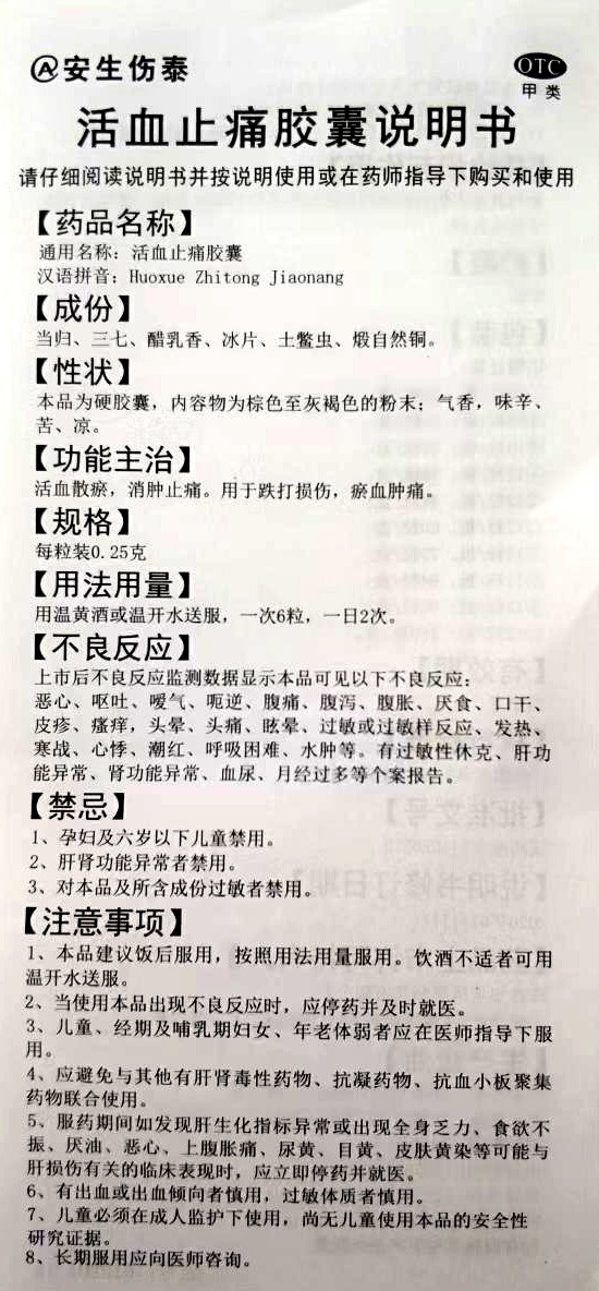 当归、三七、醋乳香、冰片、土鳖虫、煅自然铜。