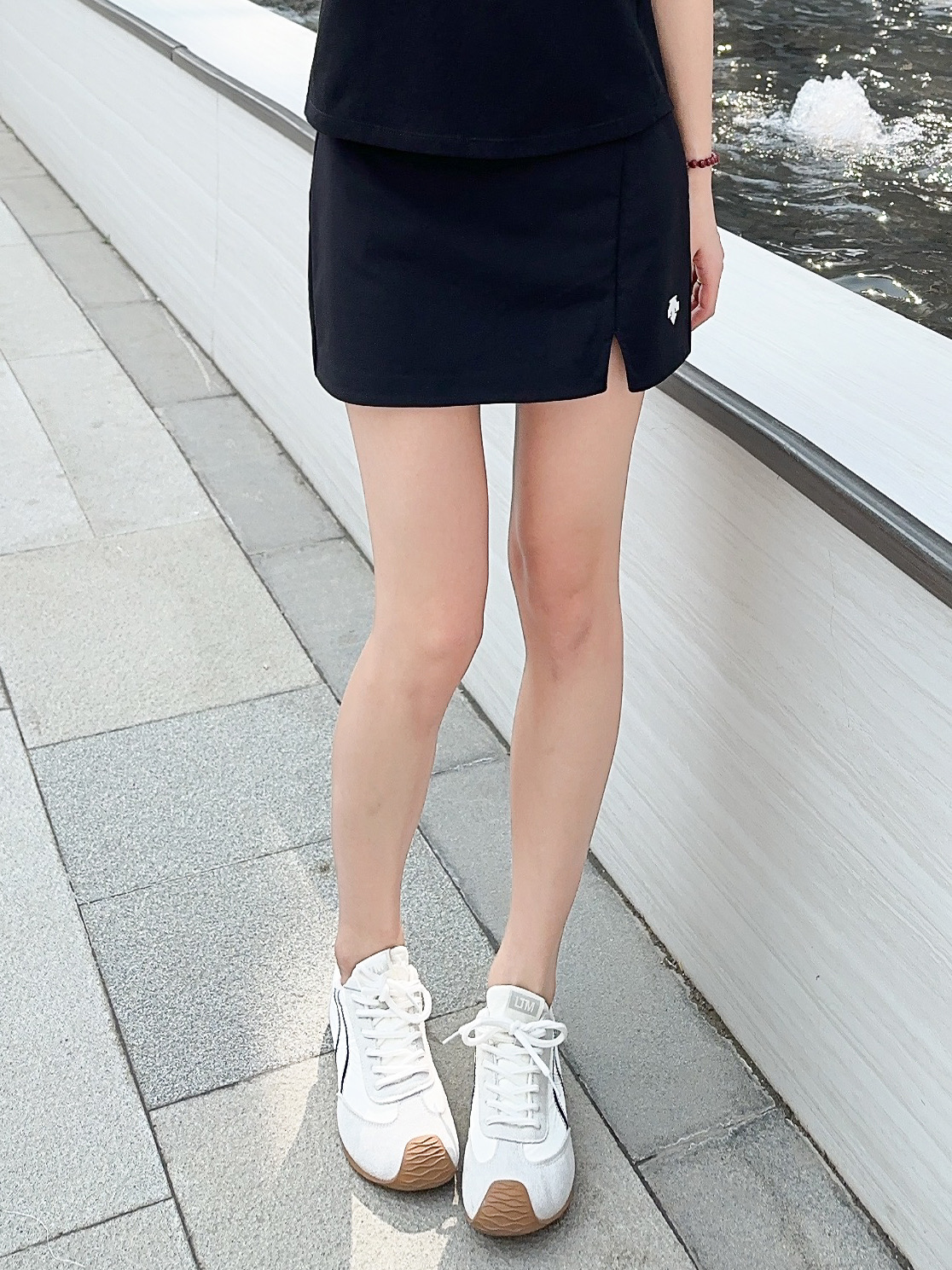 采用HYOSUNG AERO- TOP功能性纱线织造的运动短裙,面料轻量质感,弹性丰富,拉伸性强。裙面假分割切面设计,下摆搭配小开叉细节,,增强穿着延展性,橡筋腰头拼接可自如调节松紧,适穿性强。后袋功能性魔术贴设计,实用性与设计感兼备,内置防走光打底裤,提升安全穿着舒适性。