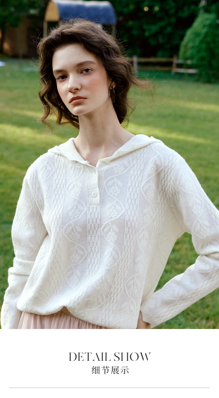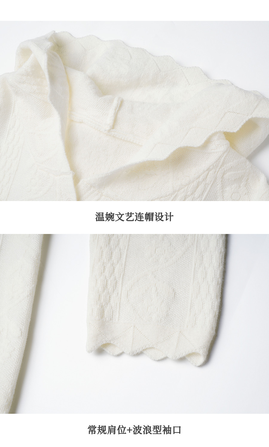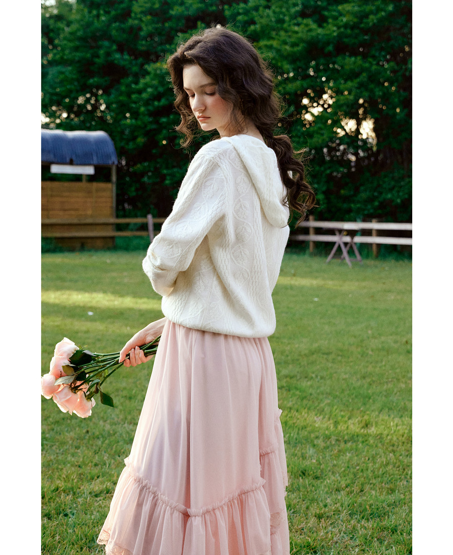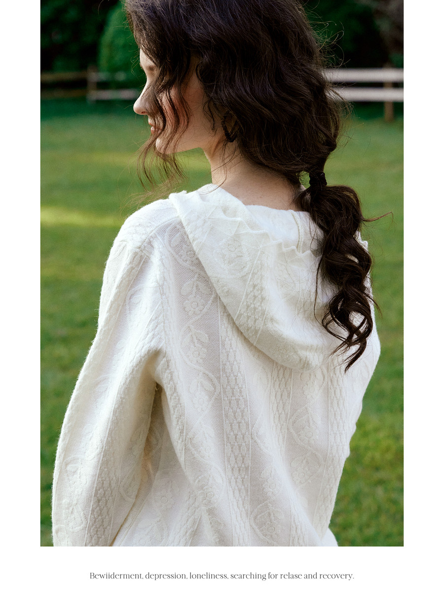 欧芮儿法式文艺连帽蕾丝花提花针织衫女冬季2025新款宽松长袖上衣