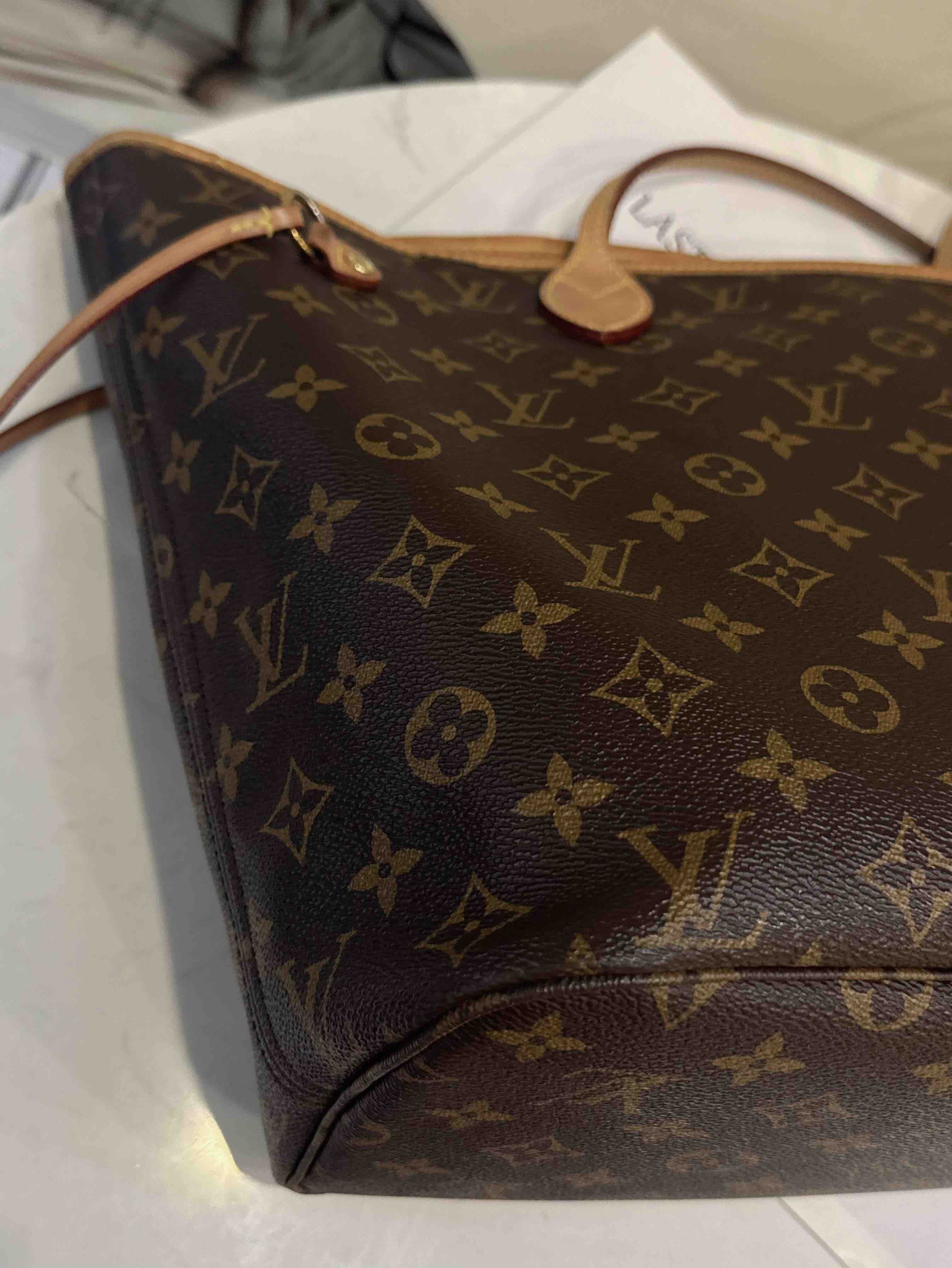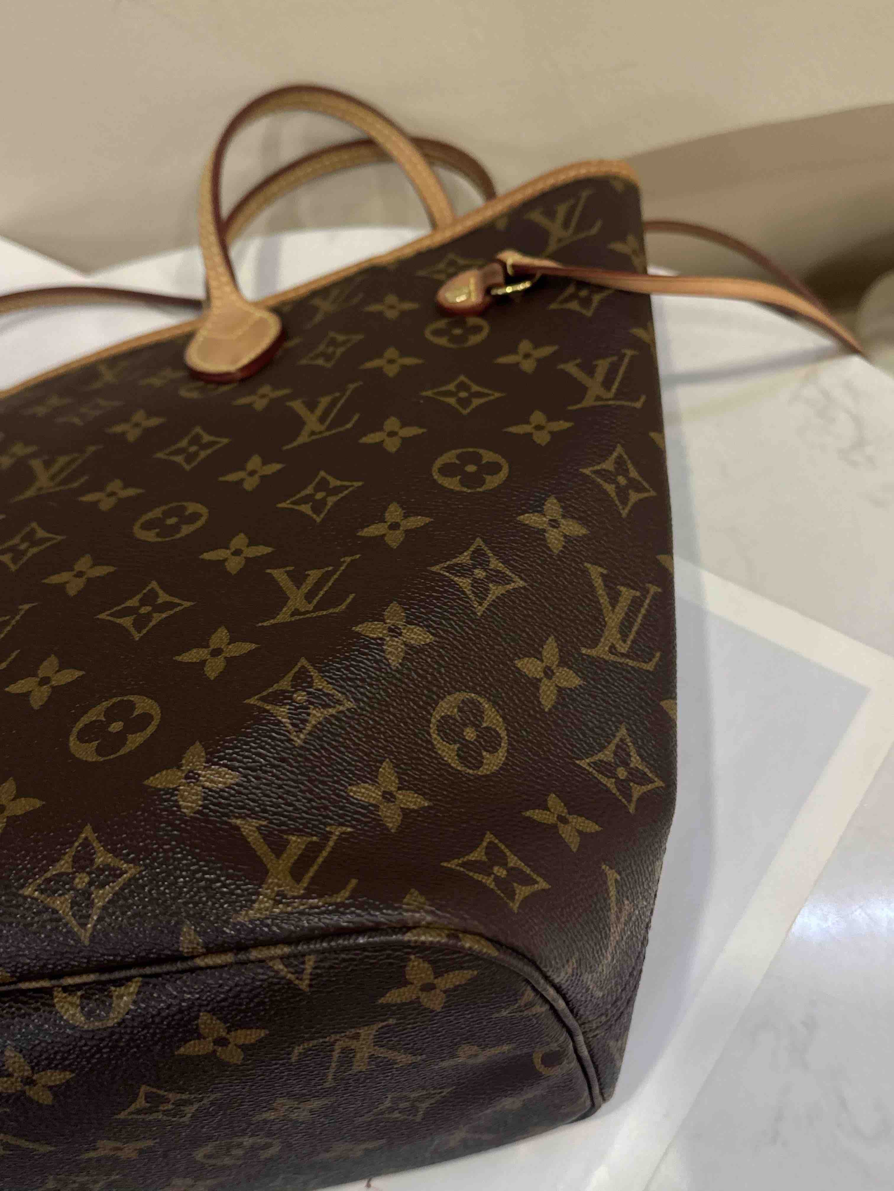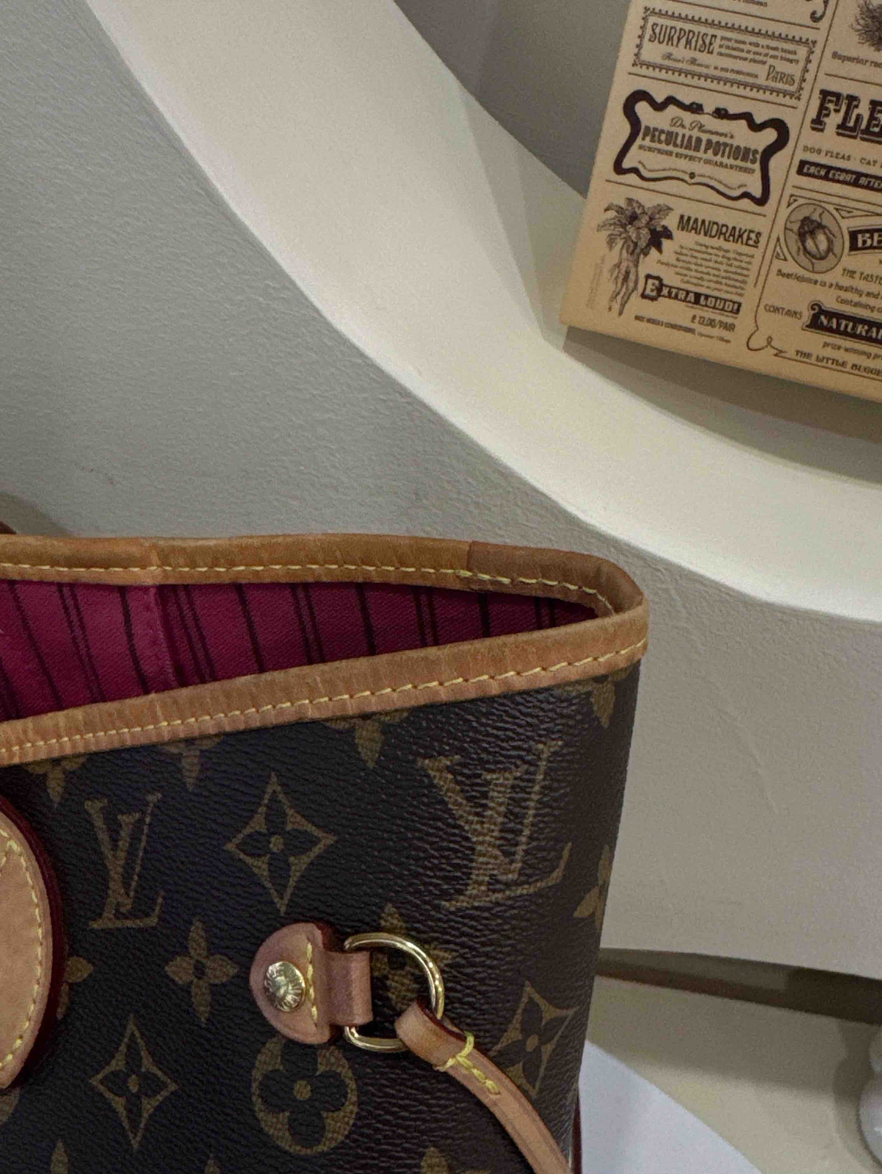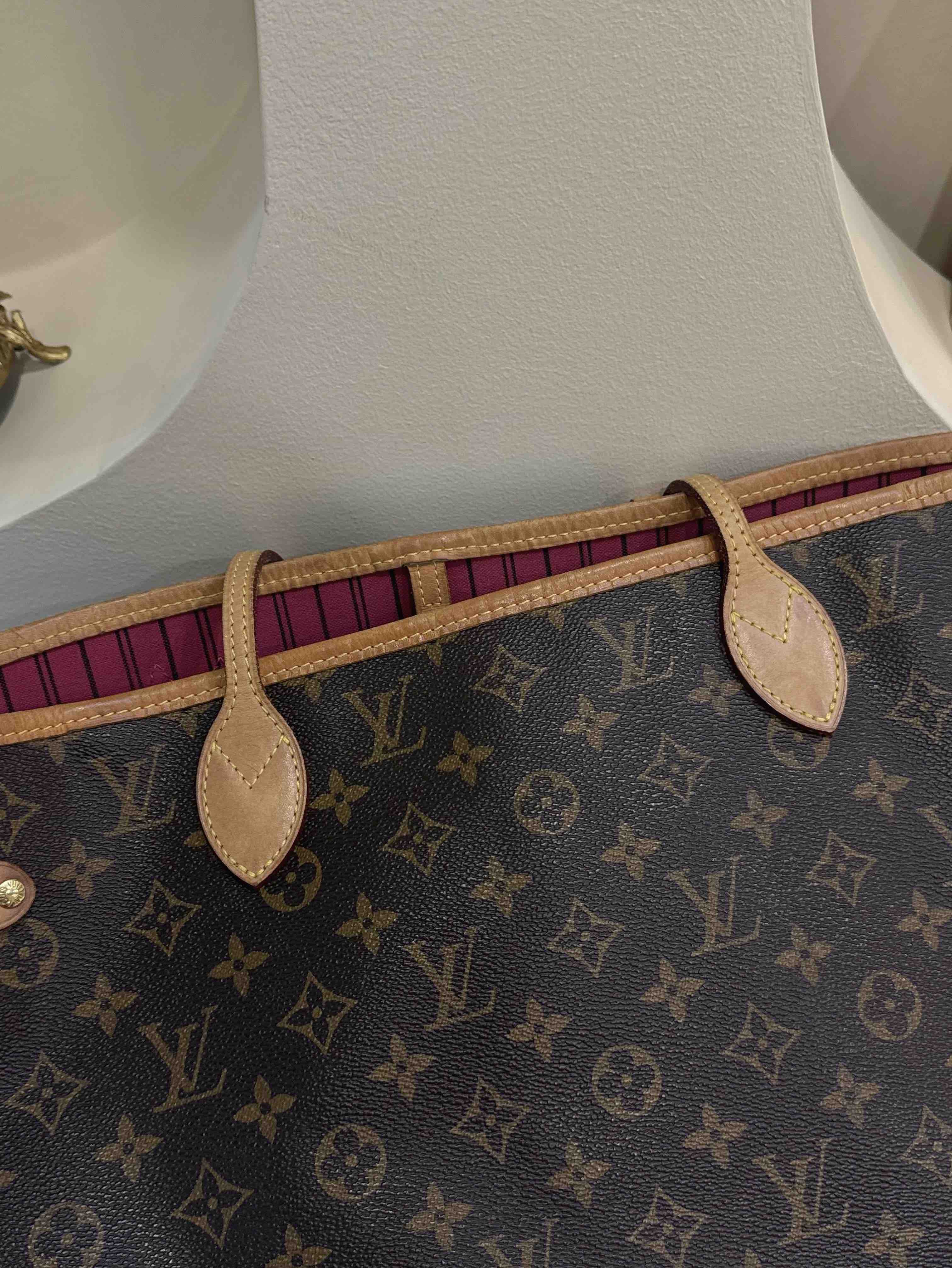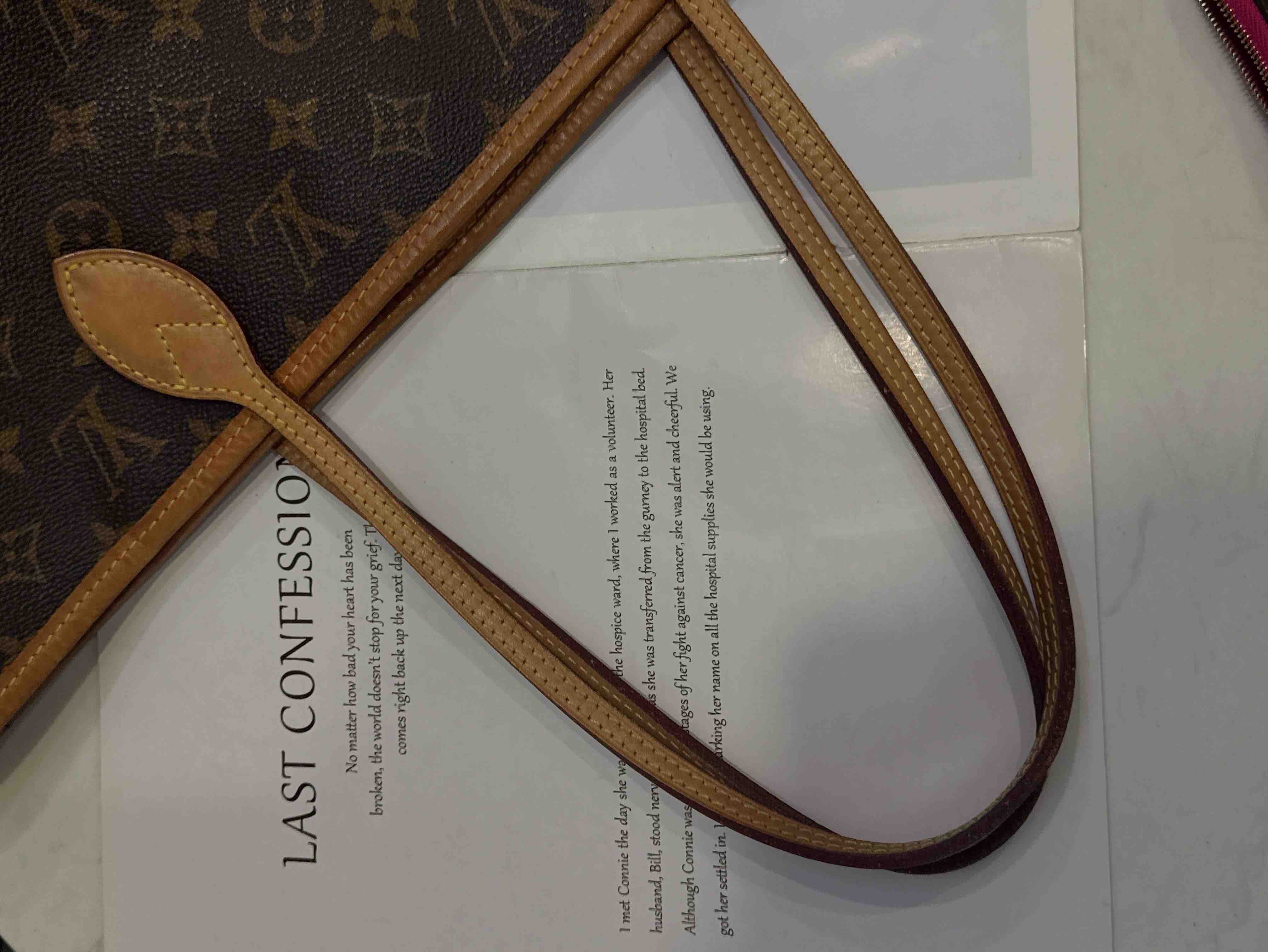 【商品詳情】正品二手 LV neverfull 中号 老花 粉条纹内衬 单肩包😎 93新 32*19 配件:子袋。植鞣革和一处边角正常使用感。装得下全世界