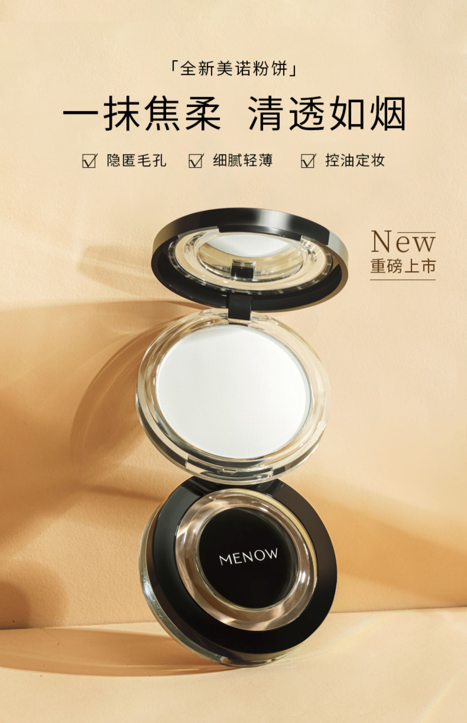 【59.9元任选3件】MENOW美诺粉饼经典款控油定妆粉干皮持久新版散粉防水防汗大白饼