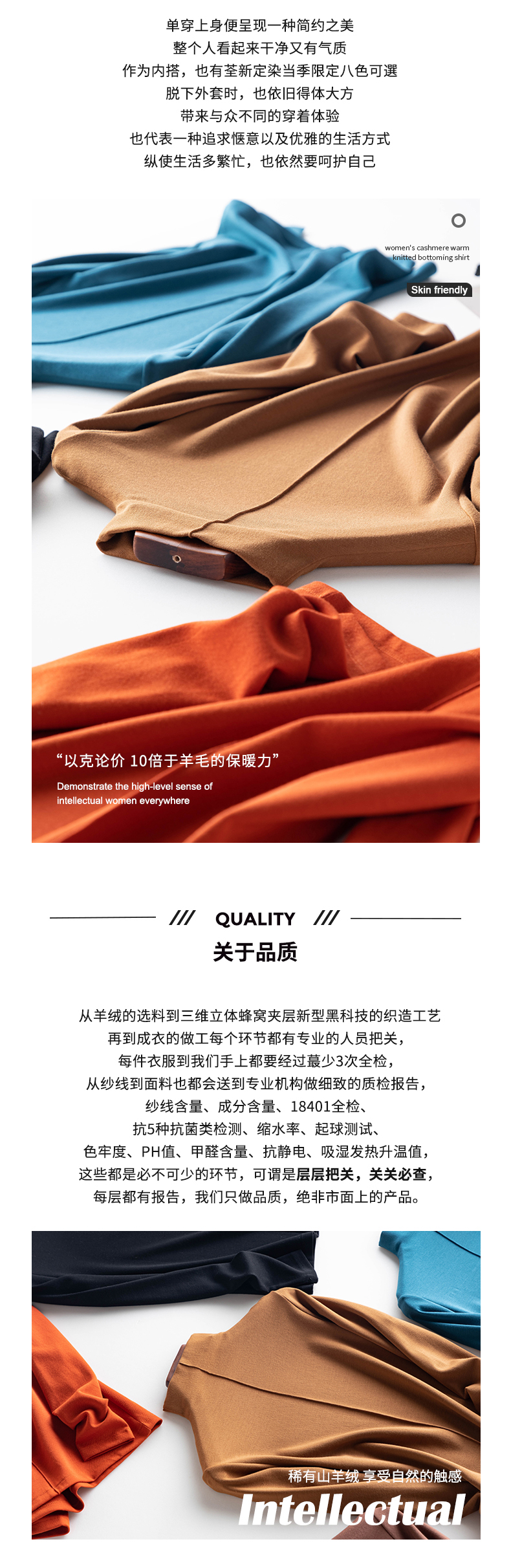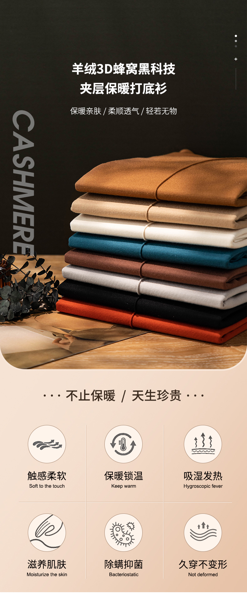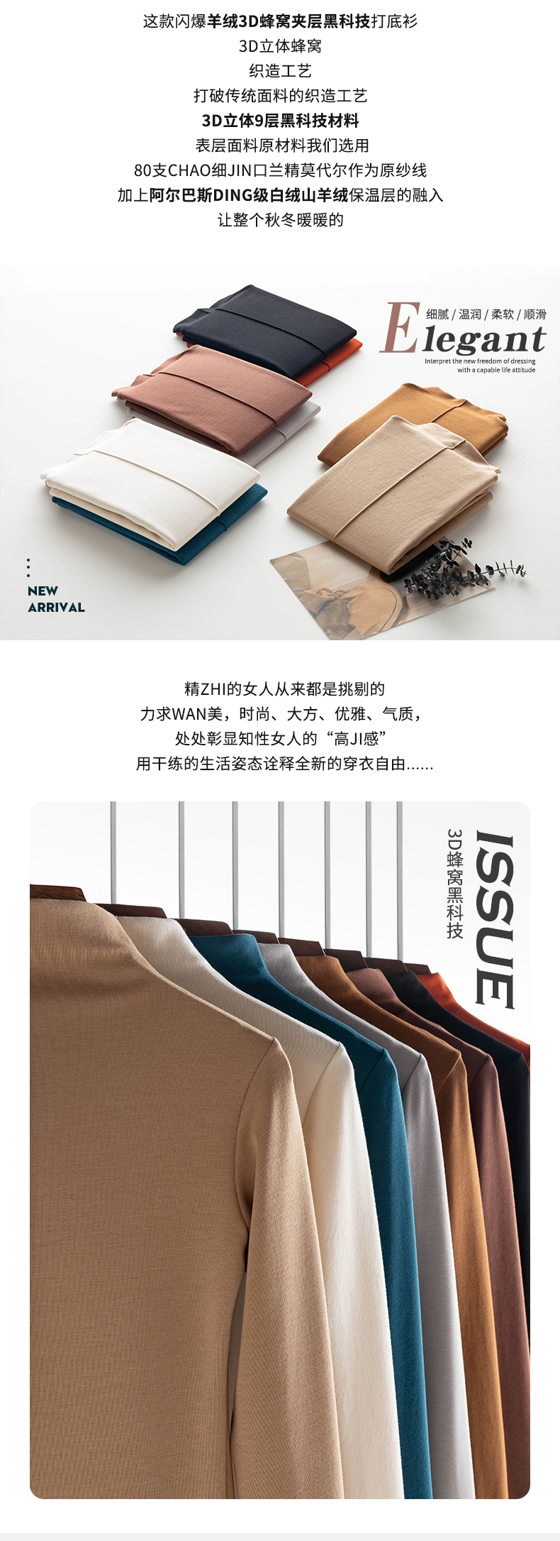【羊绒3D蜂窝黑科技】阿菁娜闪爆羊绒3D蜂窝黑科技夹层莫代尔定染针织女打底衫F30D301017
