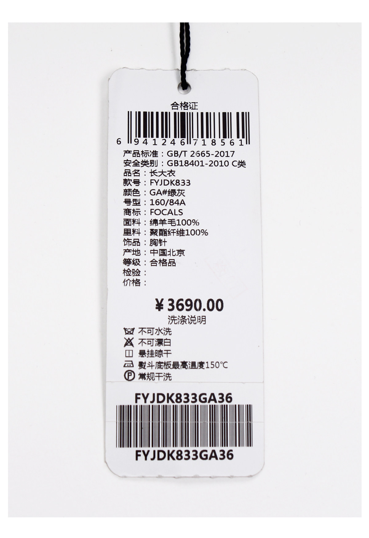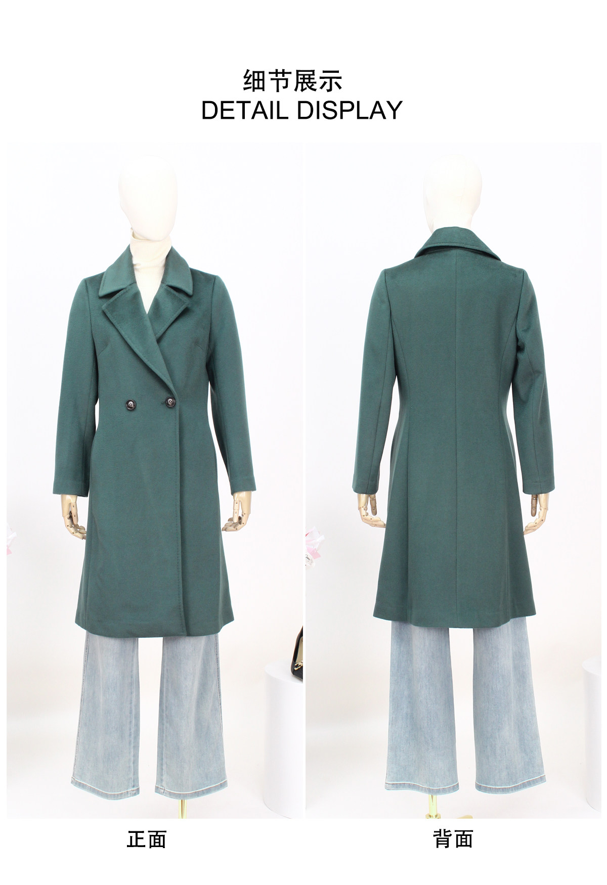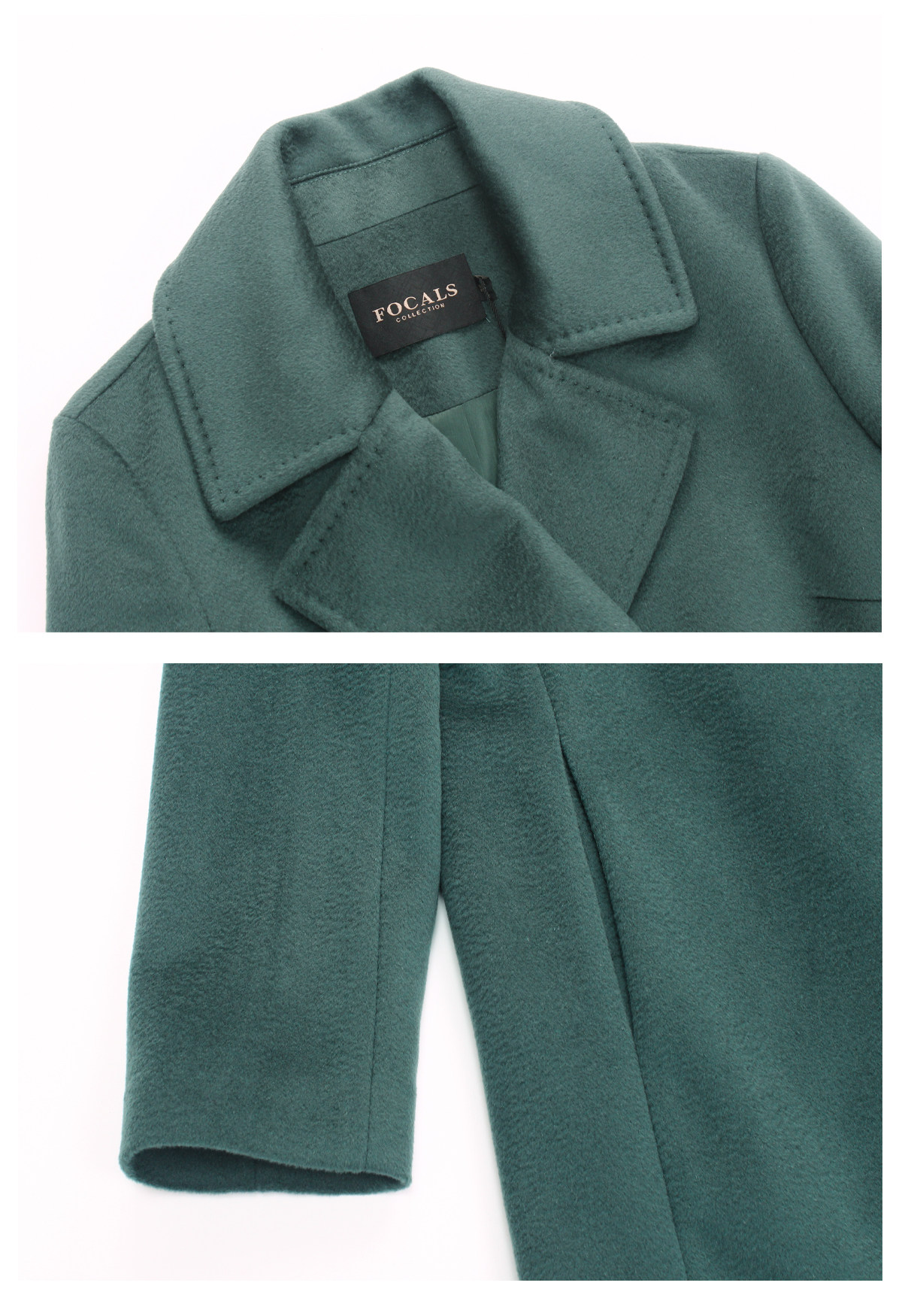 FOCALS新款西装领水波纹中长款双排扣羊毛大衣外套FYJDK833GA