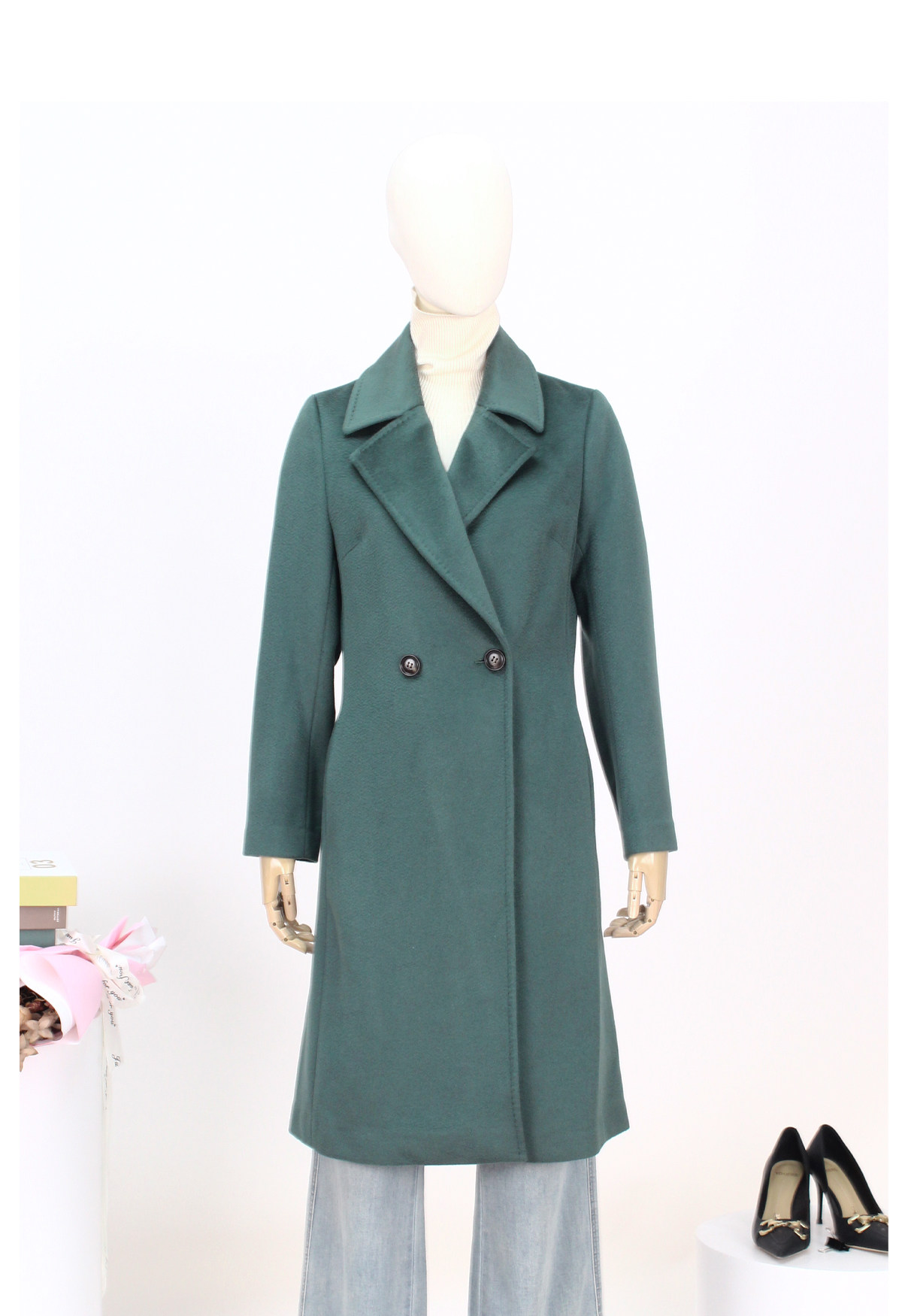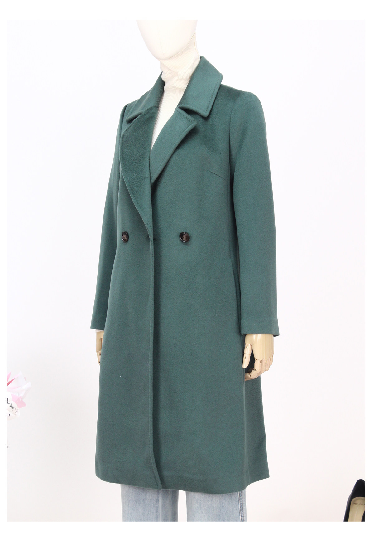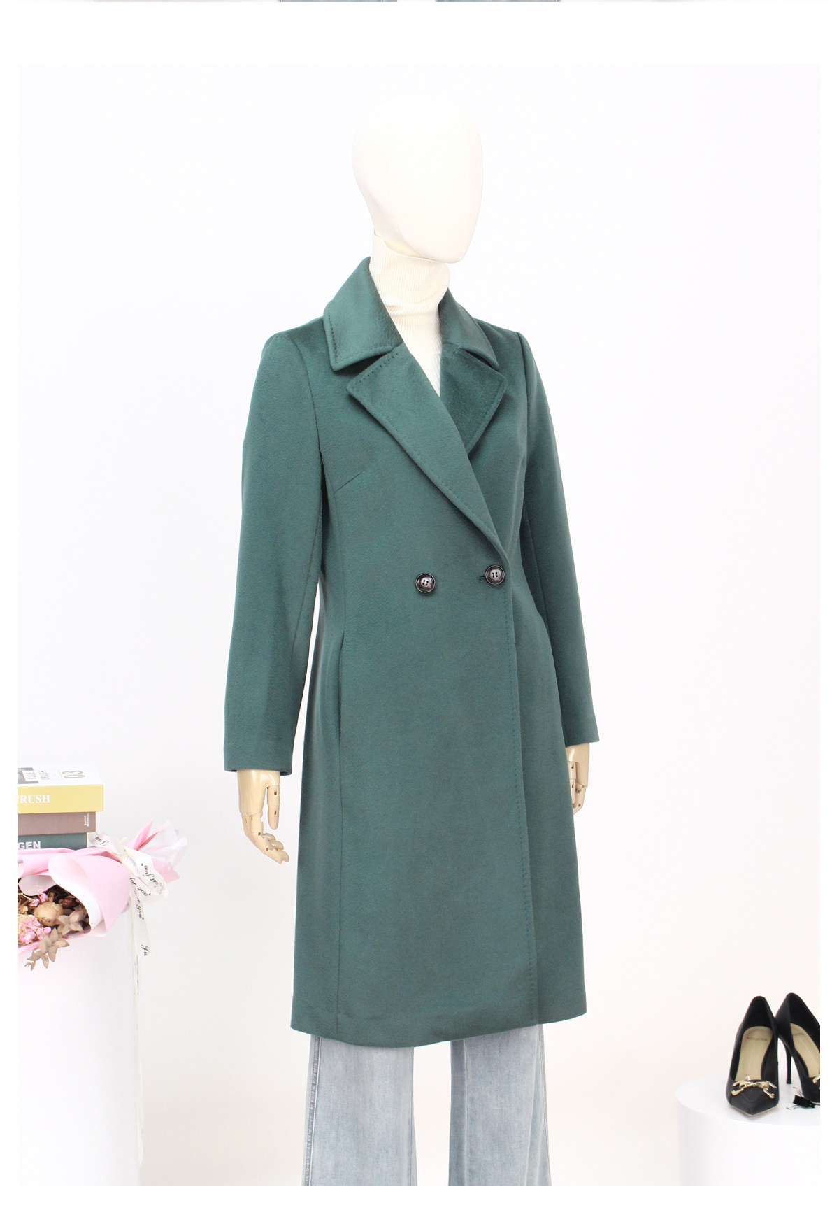 FOCALS新款西装领水波纹中长款双排扣羊毛大衣外套FYJDK833GA