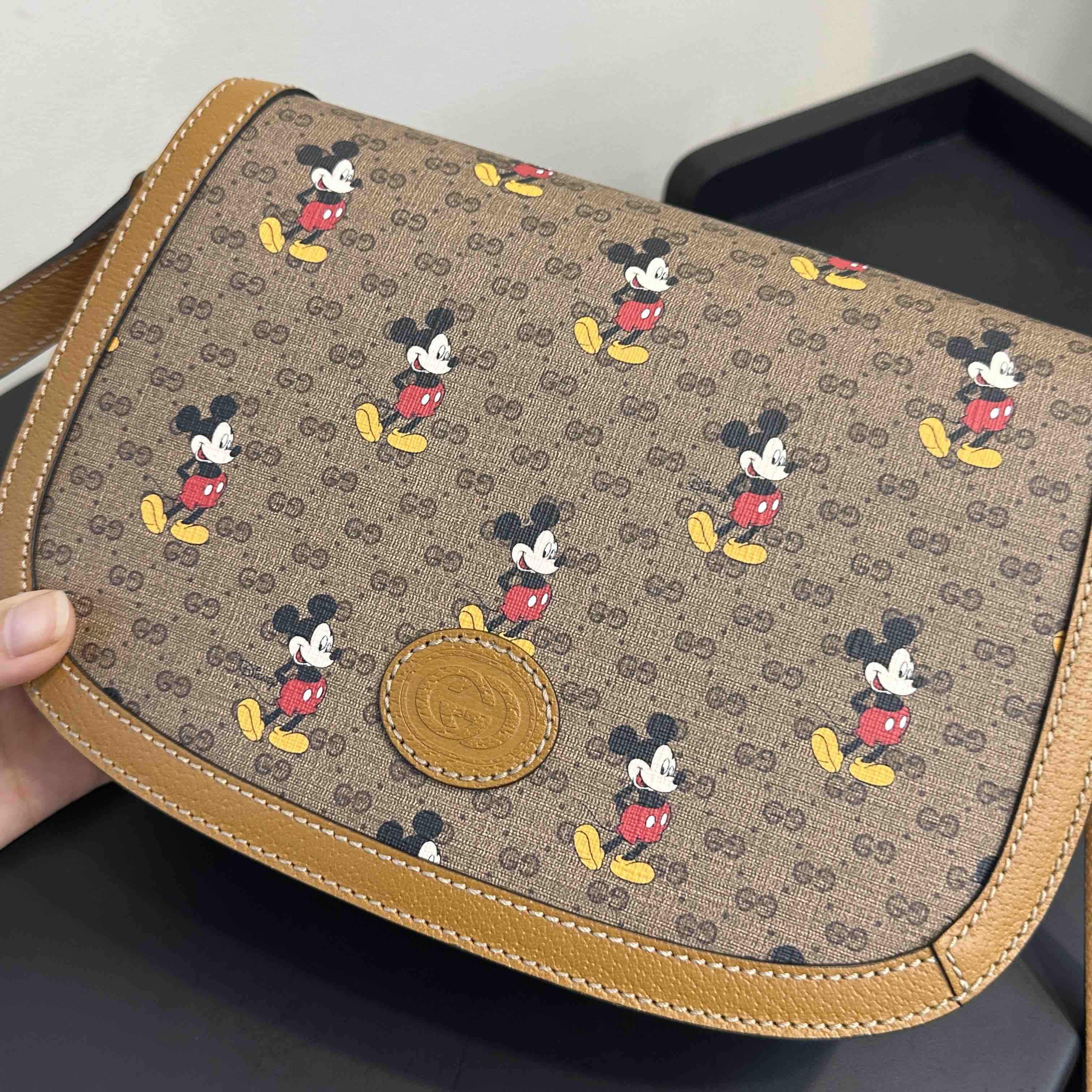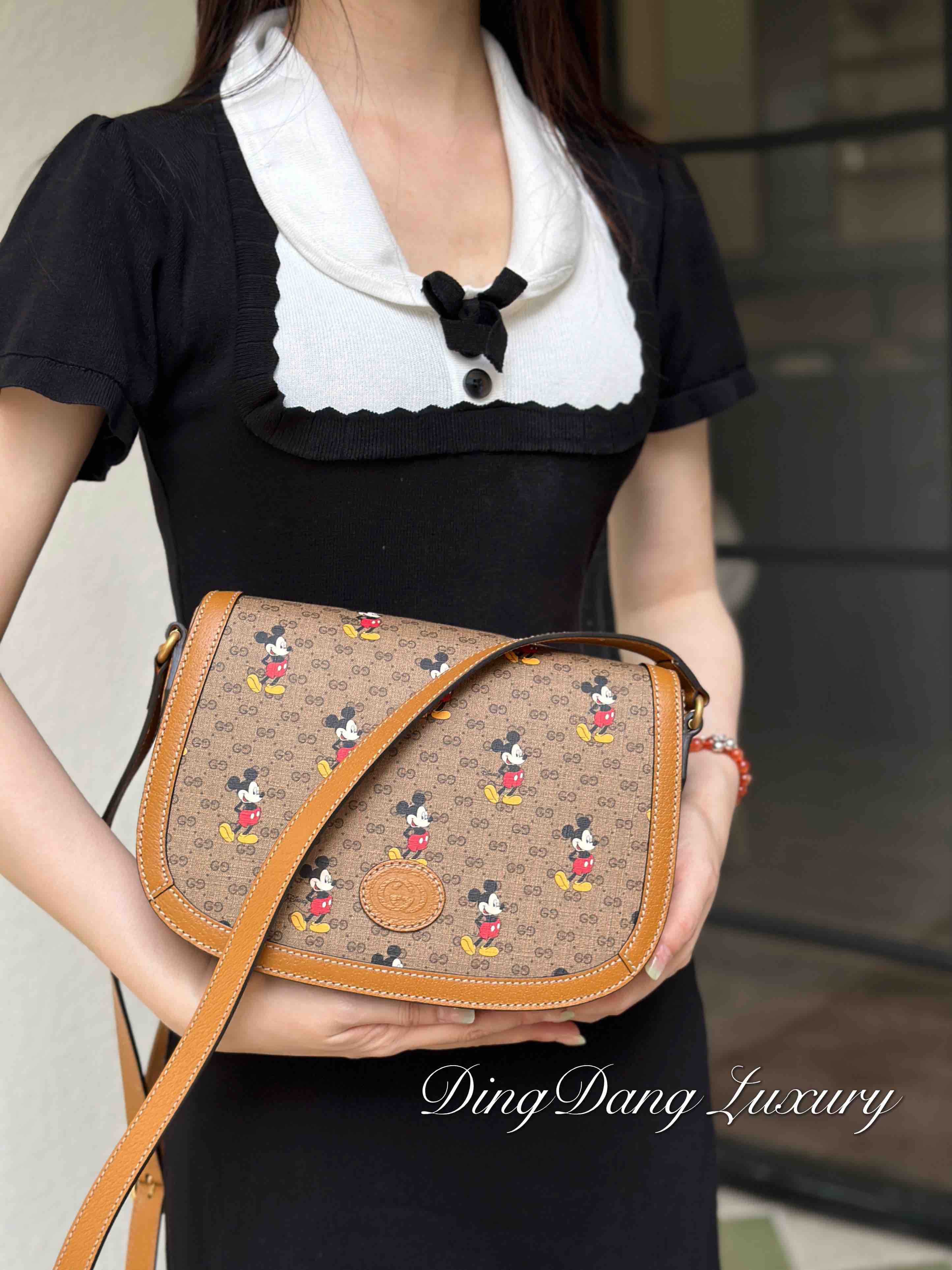 【商品描述】正品二手 Gucci 迪士尼联名 米奇 棕色 老花 马鞍包👜 98新 26x16配件:说明书x4 防尘袋卡片。整体保存较好