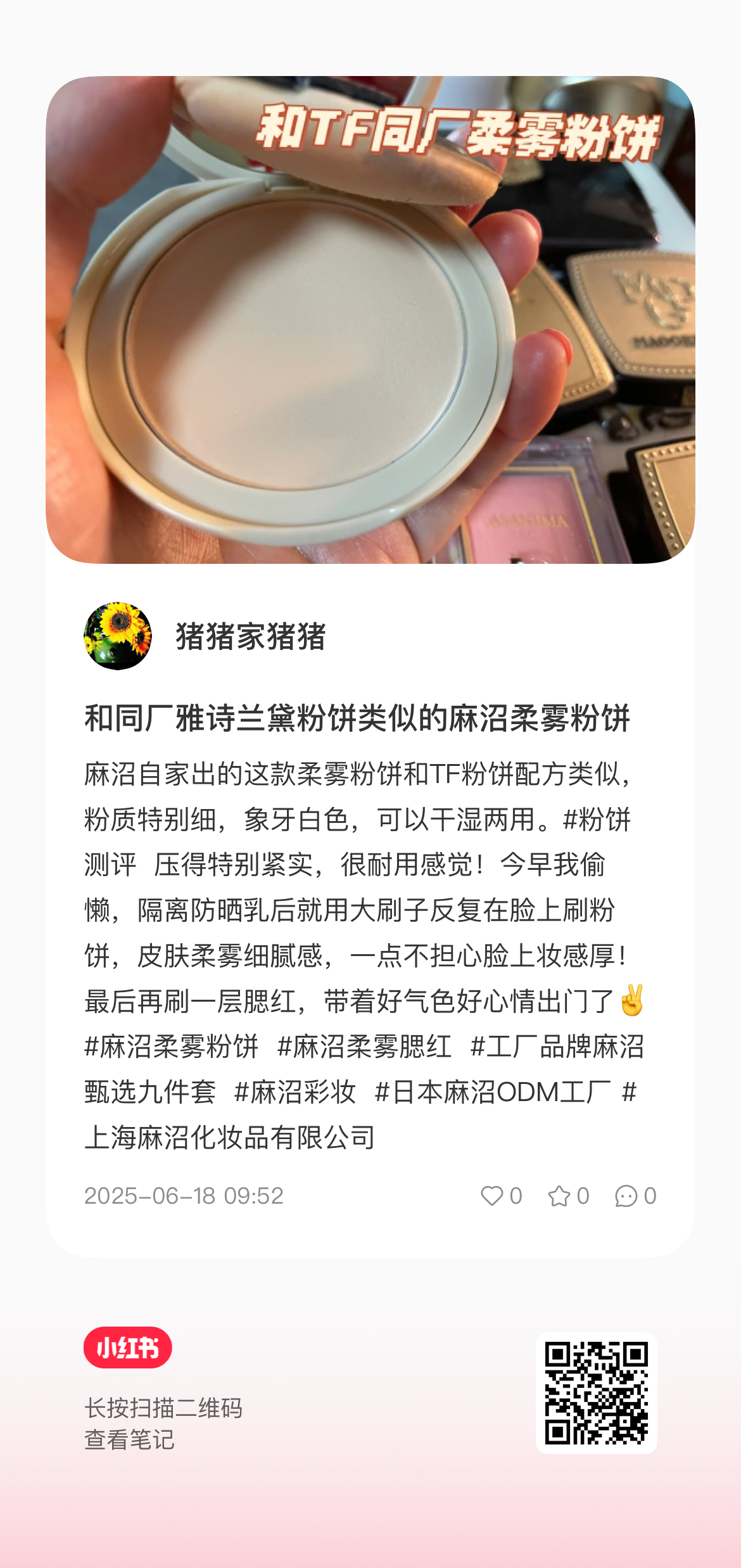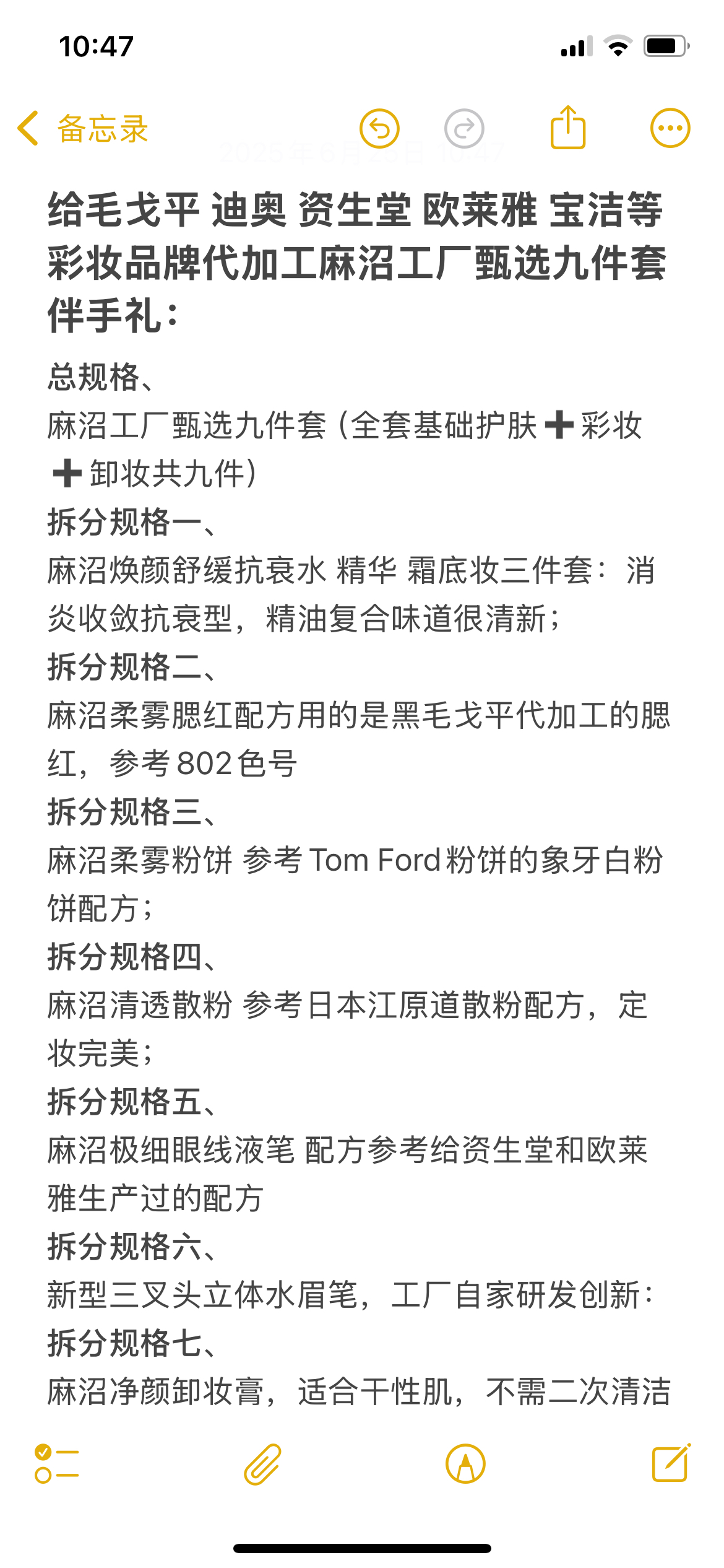 此后一直关注麻沼,麻沼工厂出的毛戈平眼线笔橘朵的粉饼等都在用。2025年5月麻沼工厂也放大到26亩,也出了自己工厂品牌的甄选九件套!