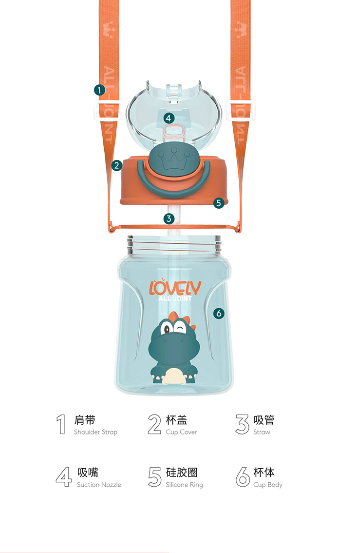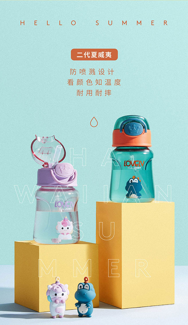 alljoint夏威夷系列吸管杯380ml Tritan材质 不含PBA 婴幼儿可用,不漏水不呛水,可拆卸大口径,好清洁