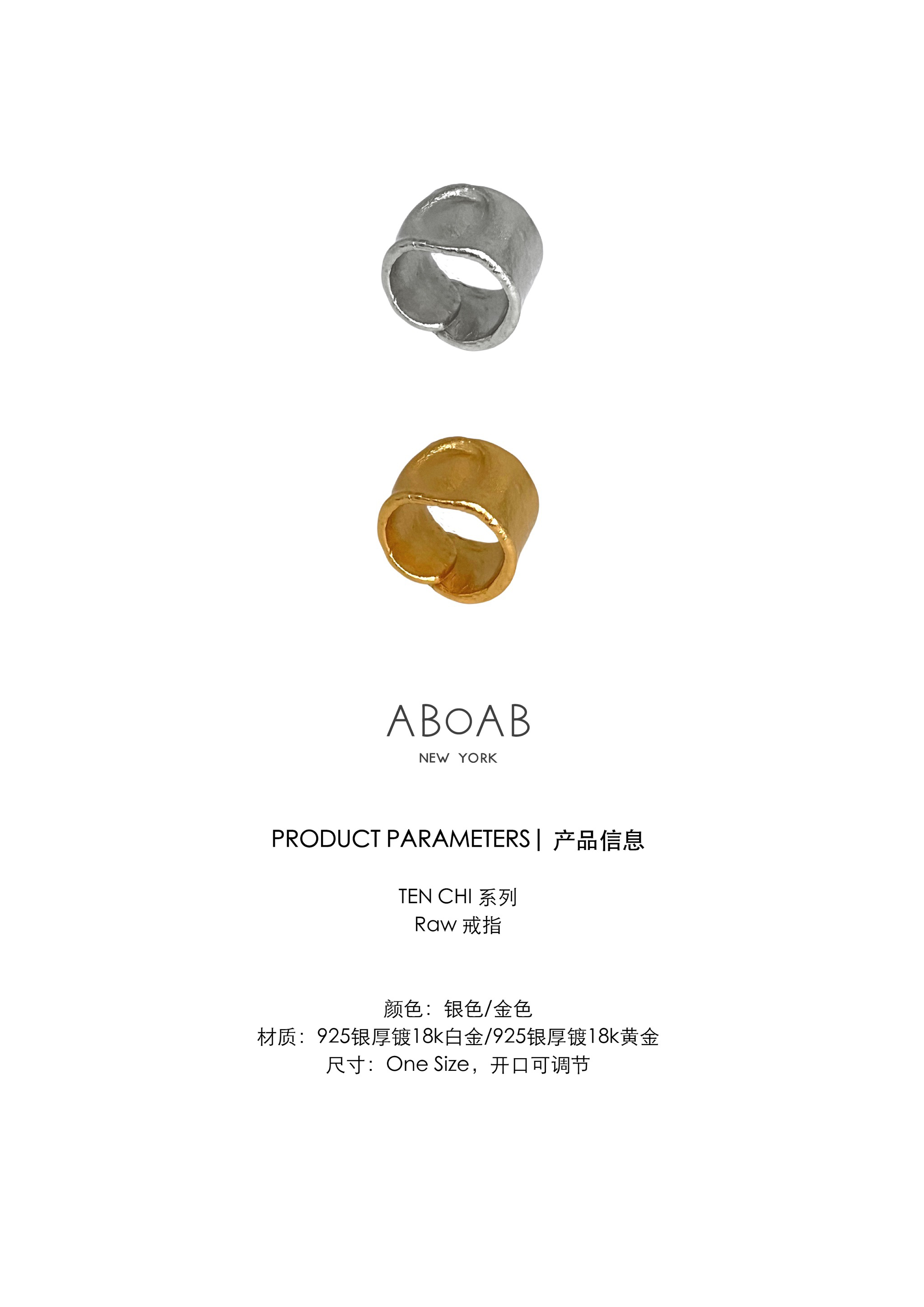 ABOAB|RAW Ring [ 开口戒指 金 / 银 ]【TEN CHI】