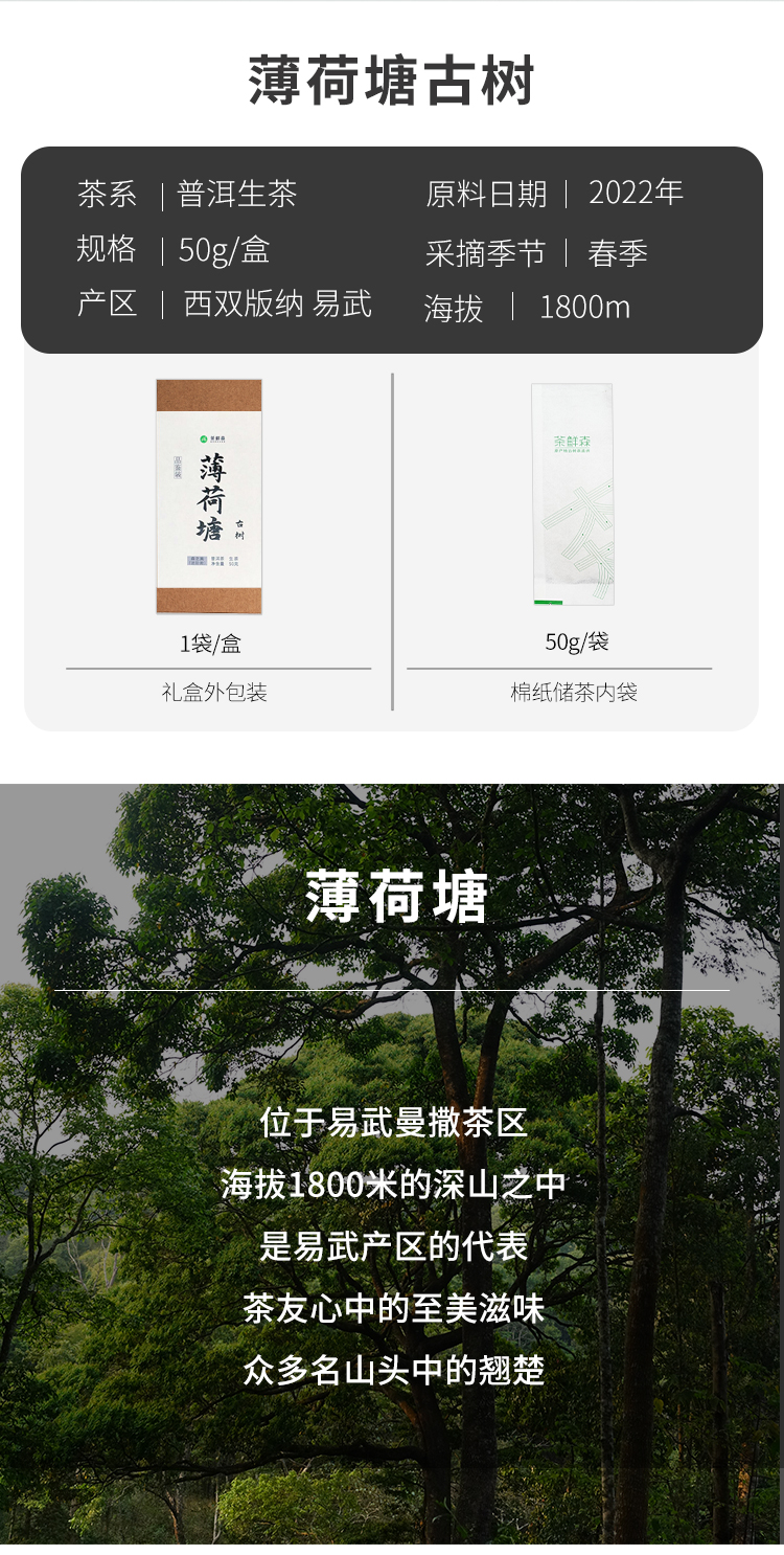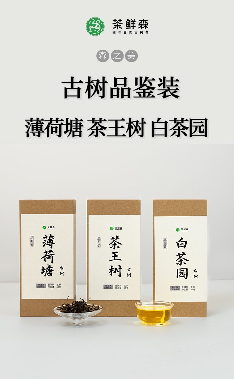 薄荷塘、白茶园、茶王树 散茶品鉴装 拍5发6 普洱 生茶 50g 散茶【森之美】