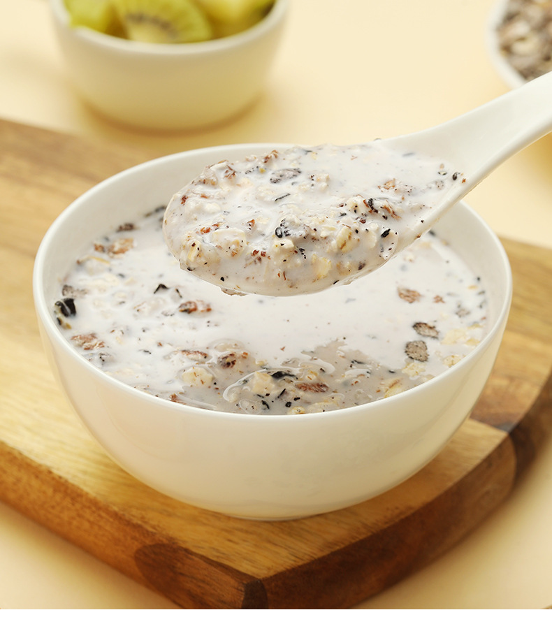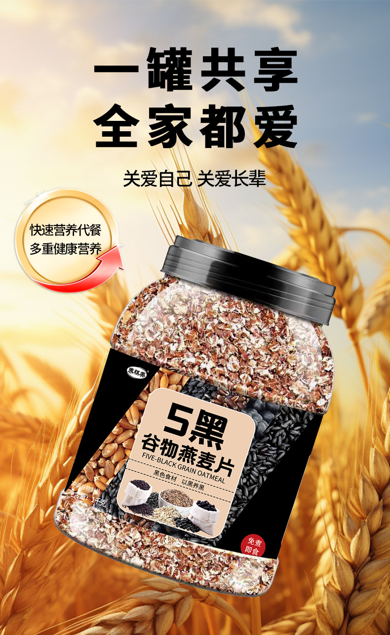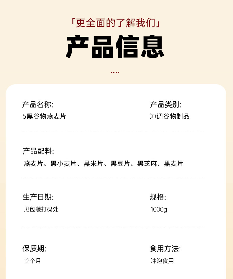 配料:燕麦片、黑小麦片、黑米片、黑豆片、黑芝麻、黑麦片