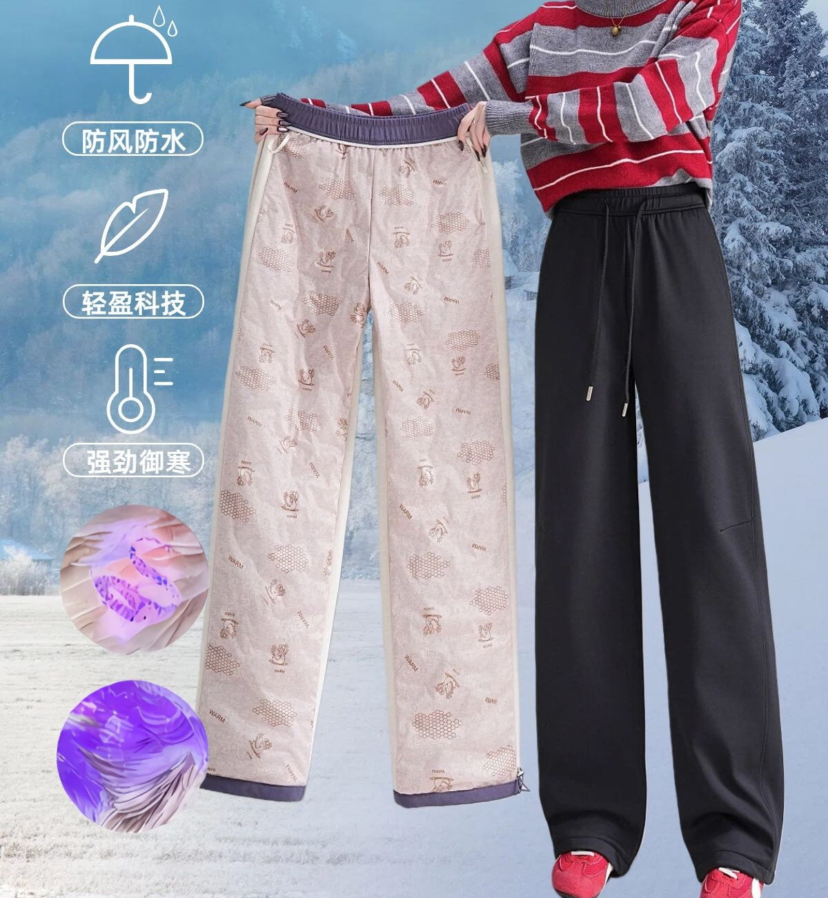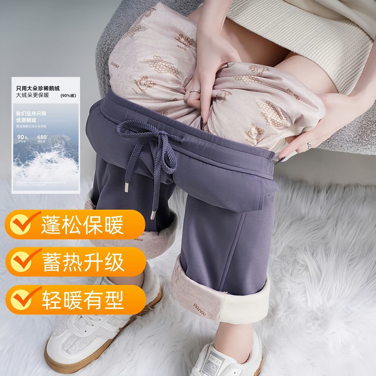 松植屋软壳情侣鹅绒阔腿裤