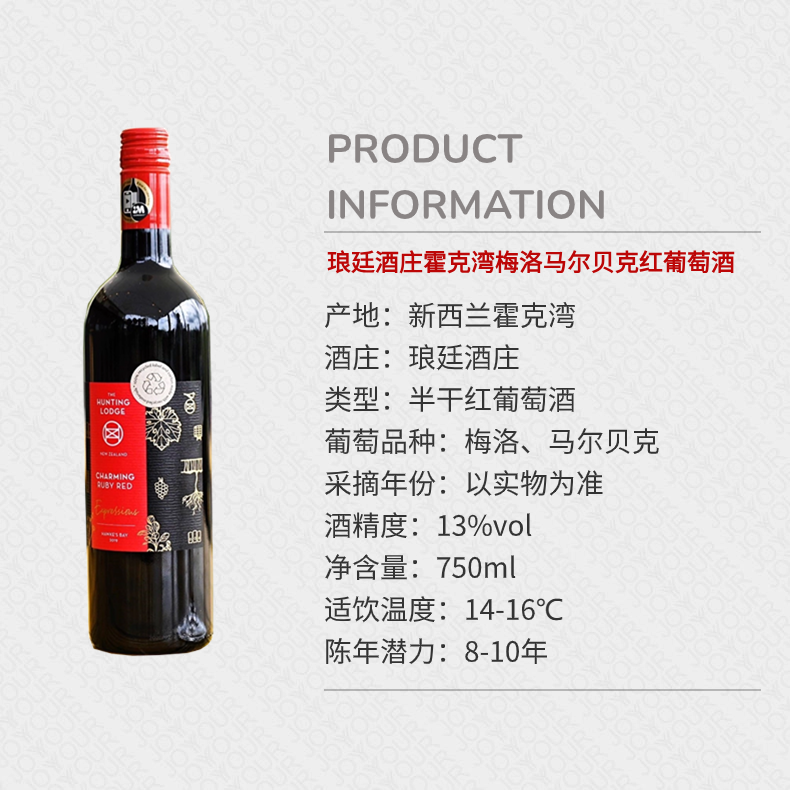 琅廷酒庄霍克湾梅洛马尔贝克半干红葡萄酒(750ml/375ml)