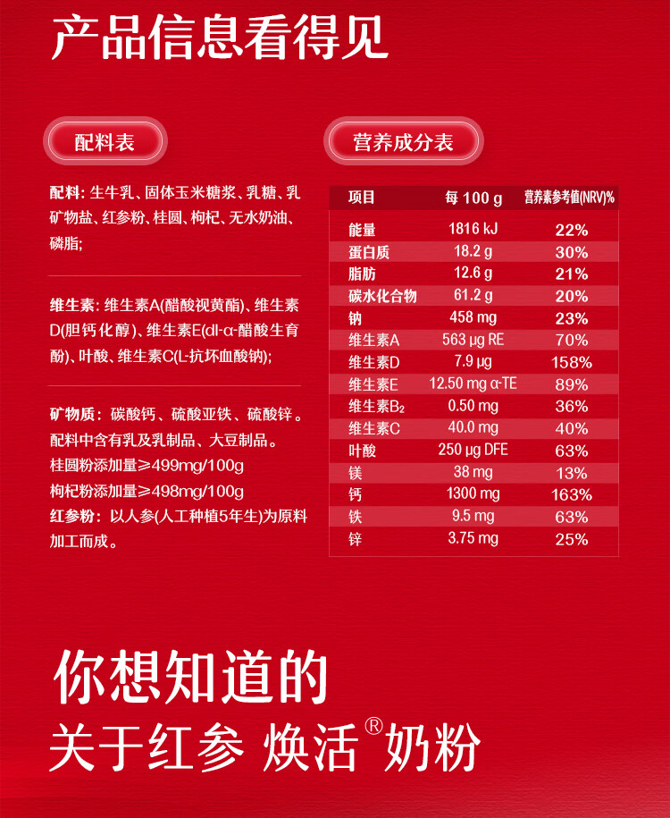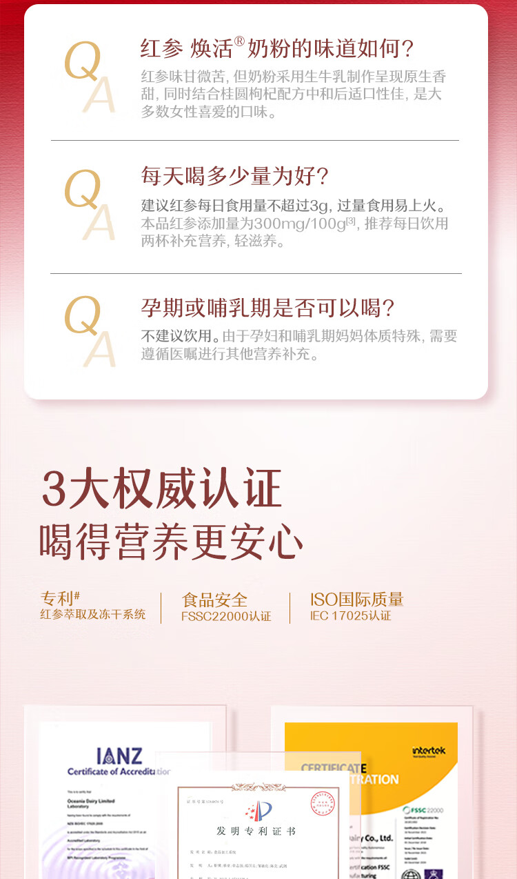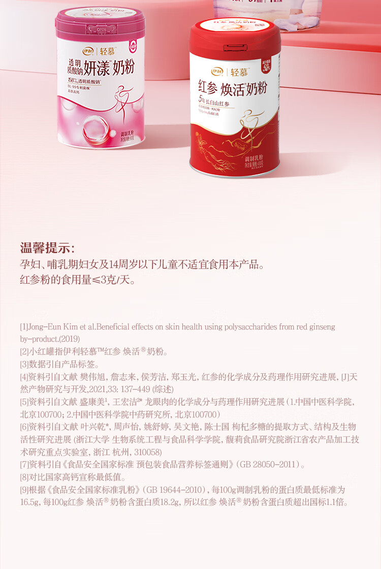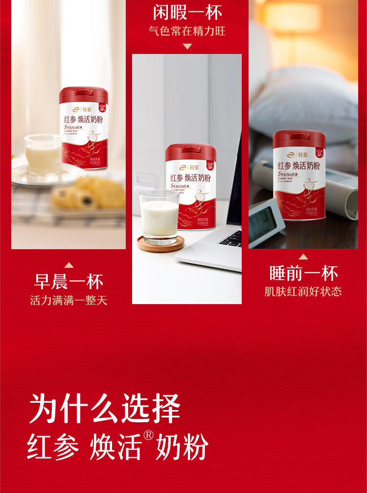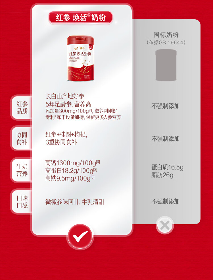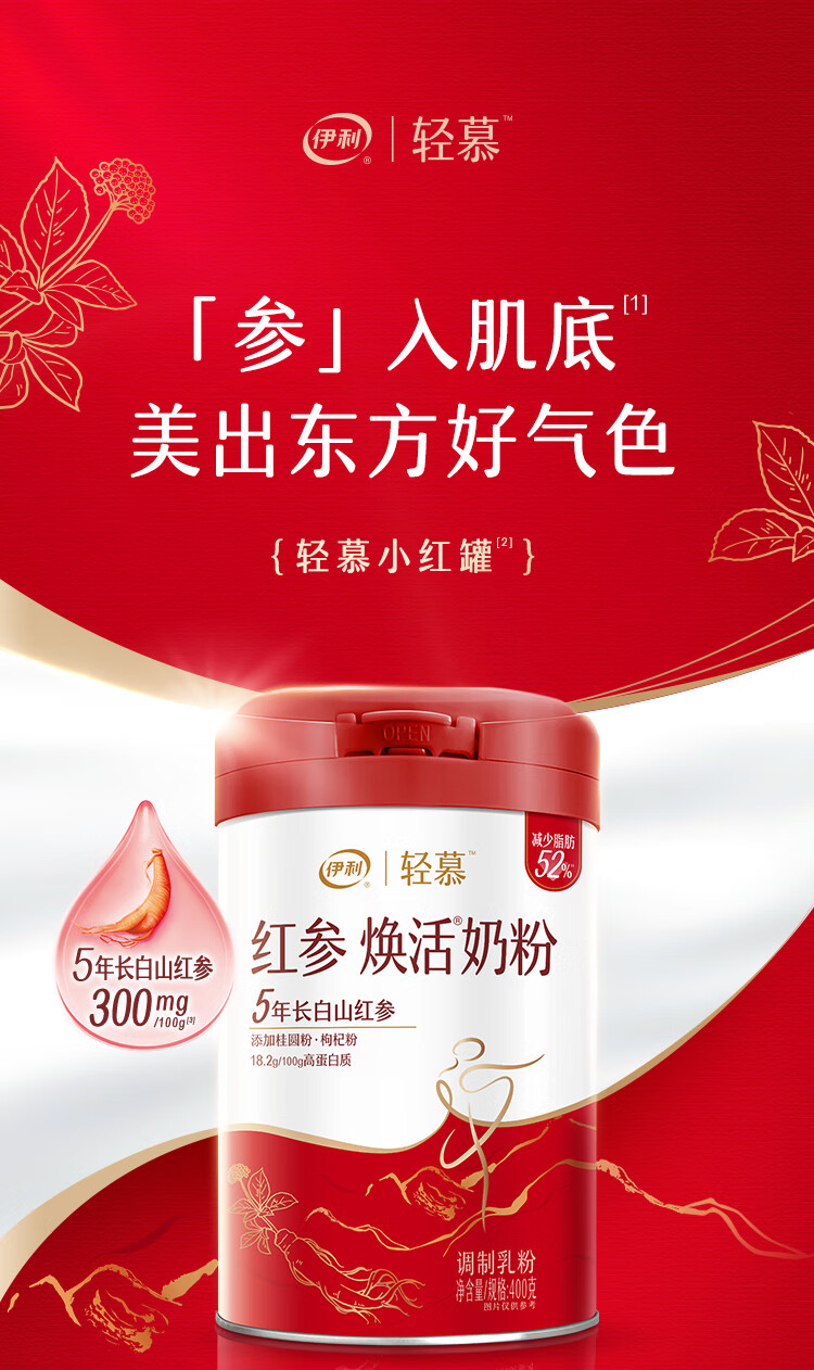 伊利轻慕【侯明昊推荐】红参焕活奶粉400g 富含铁 桂圆枸杞 中秋送礼