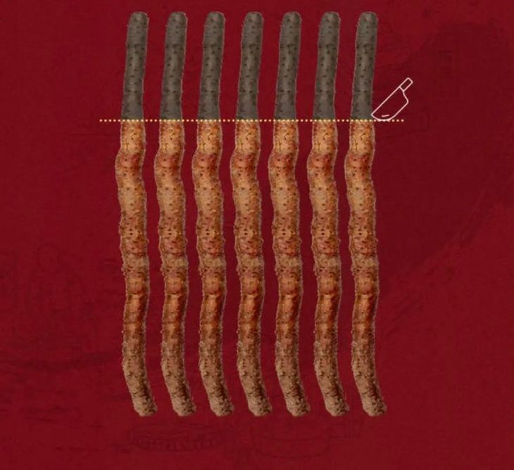 较其他品牌,张宝山多截2厘米,保留有交攵根茎长度超45厘米,有交攵根茎直径2厘米左右。