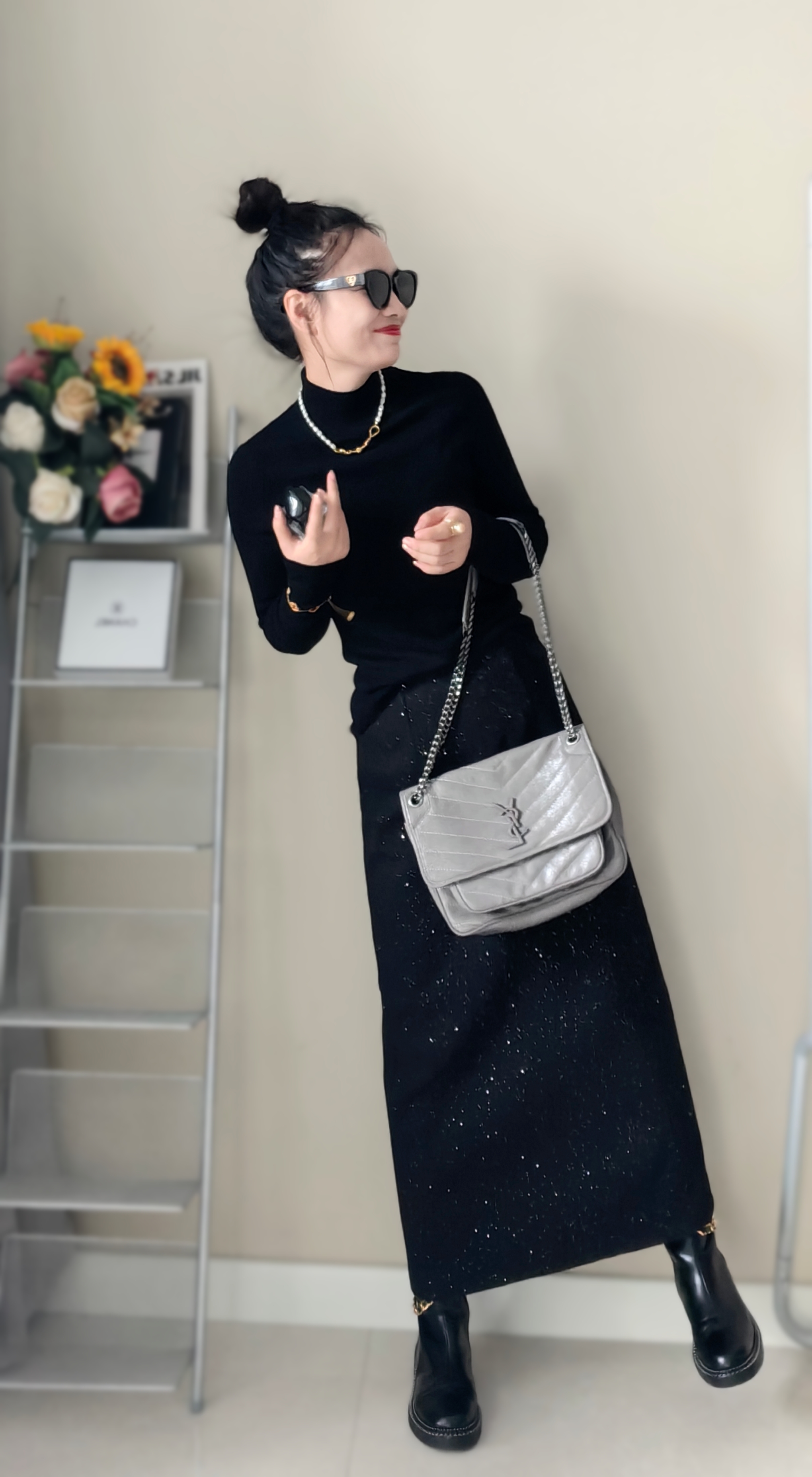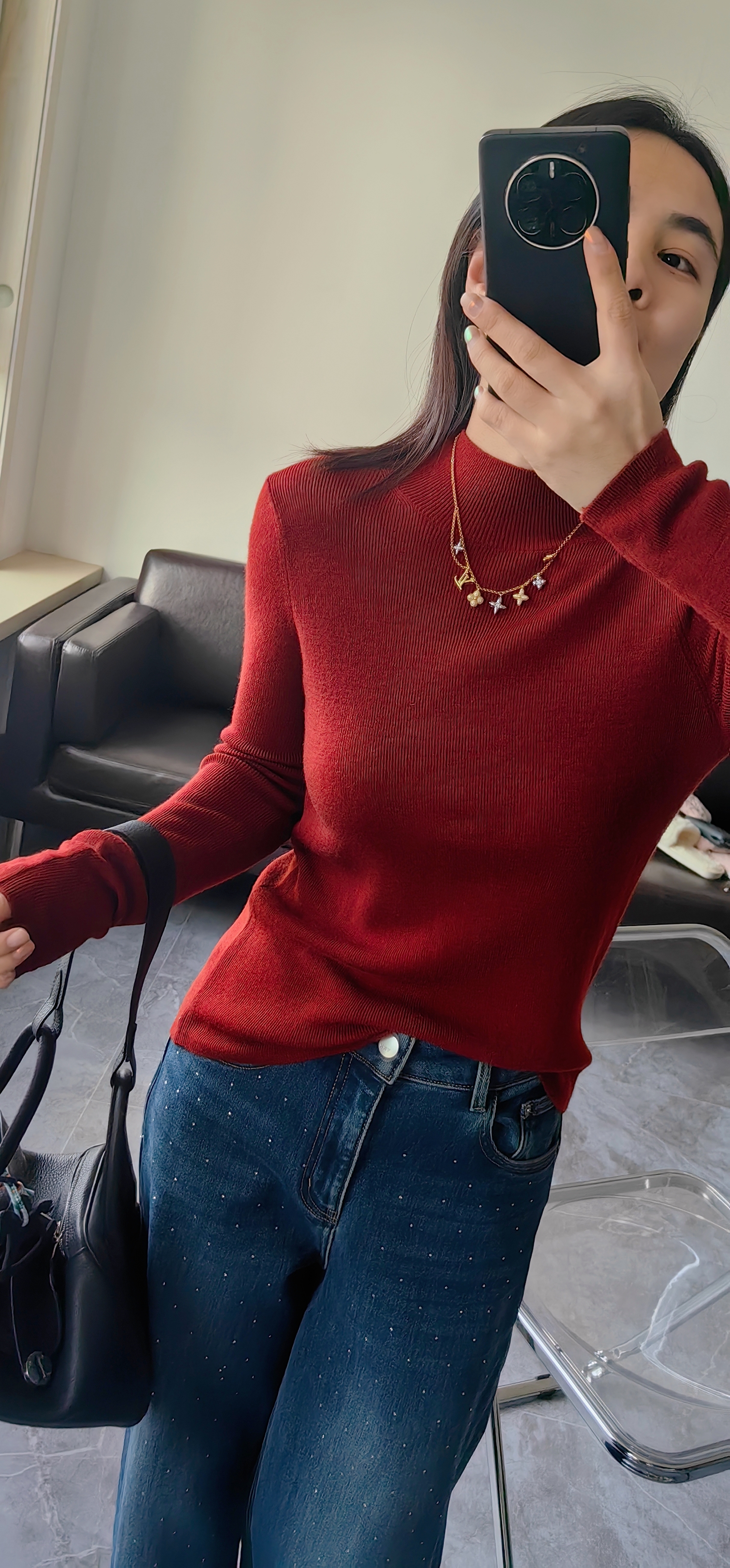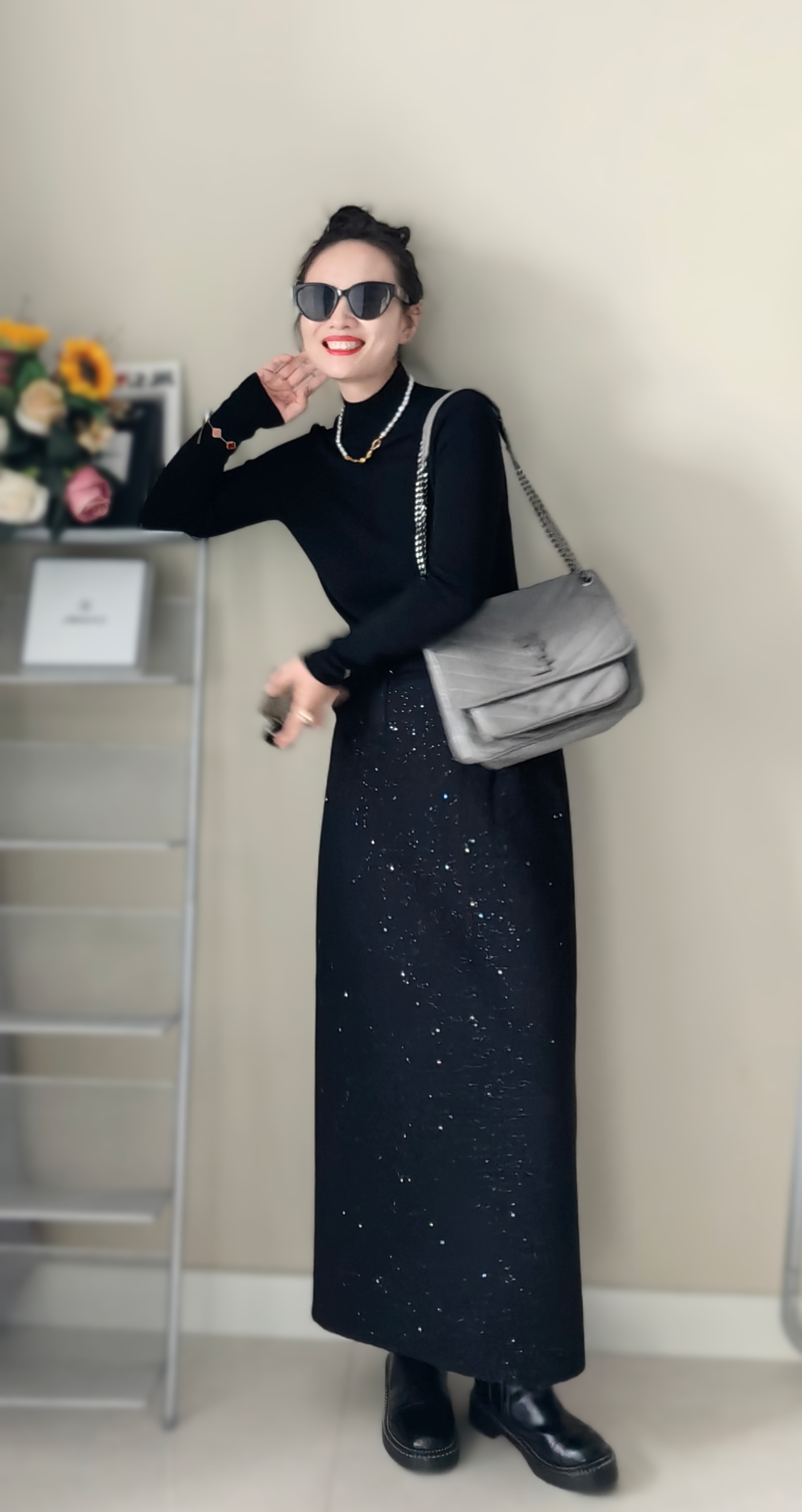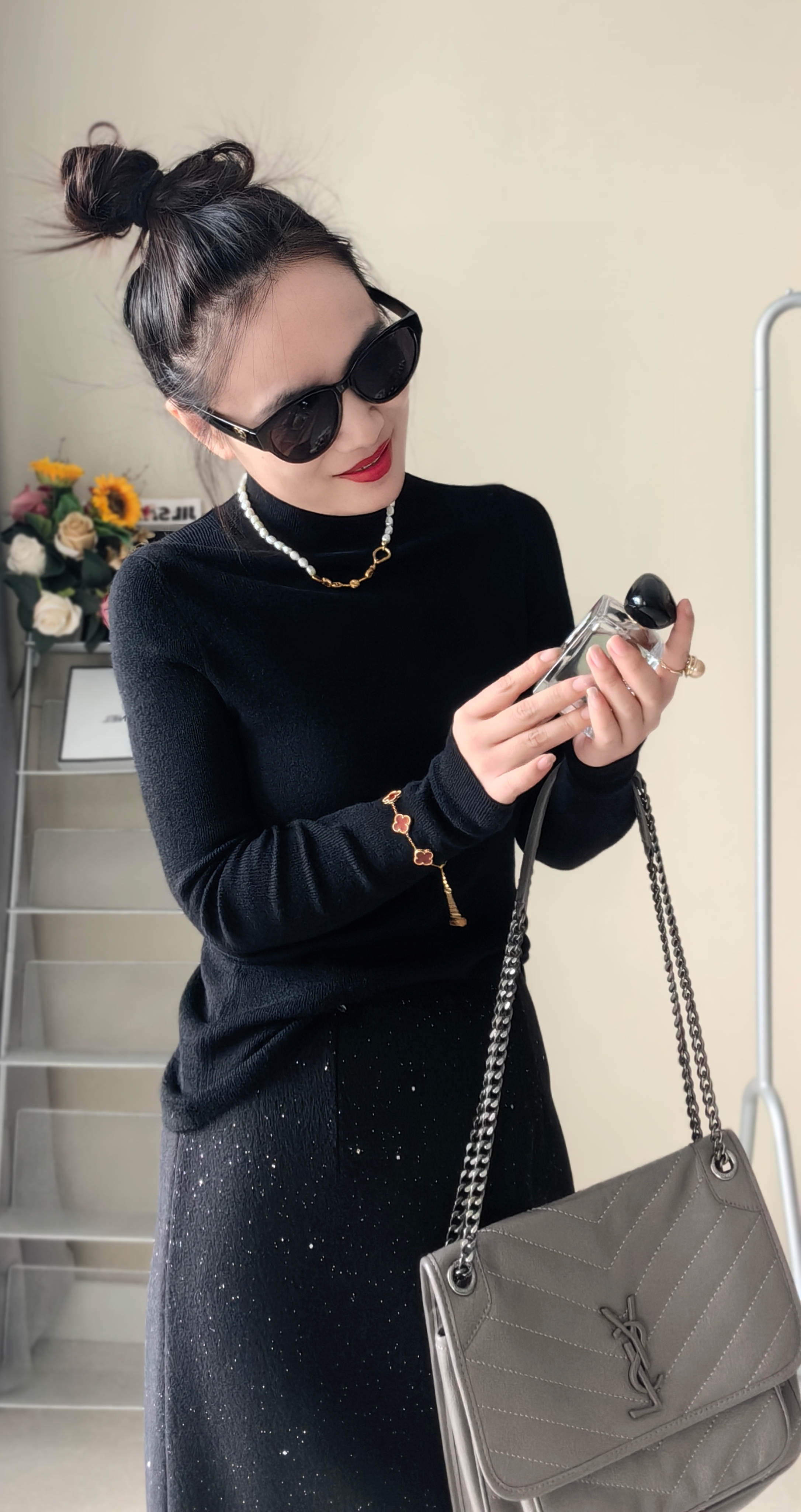 黑色羊毛衫是衣橱常青款,很喜欢半高领的高度